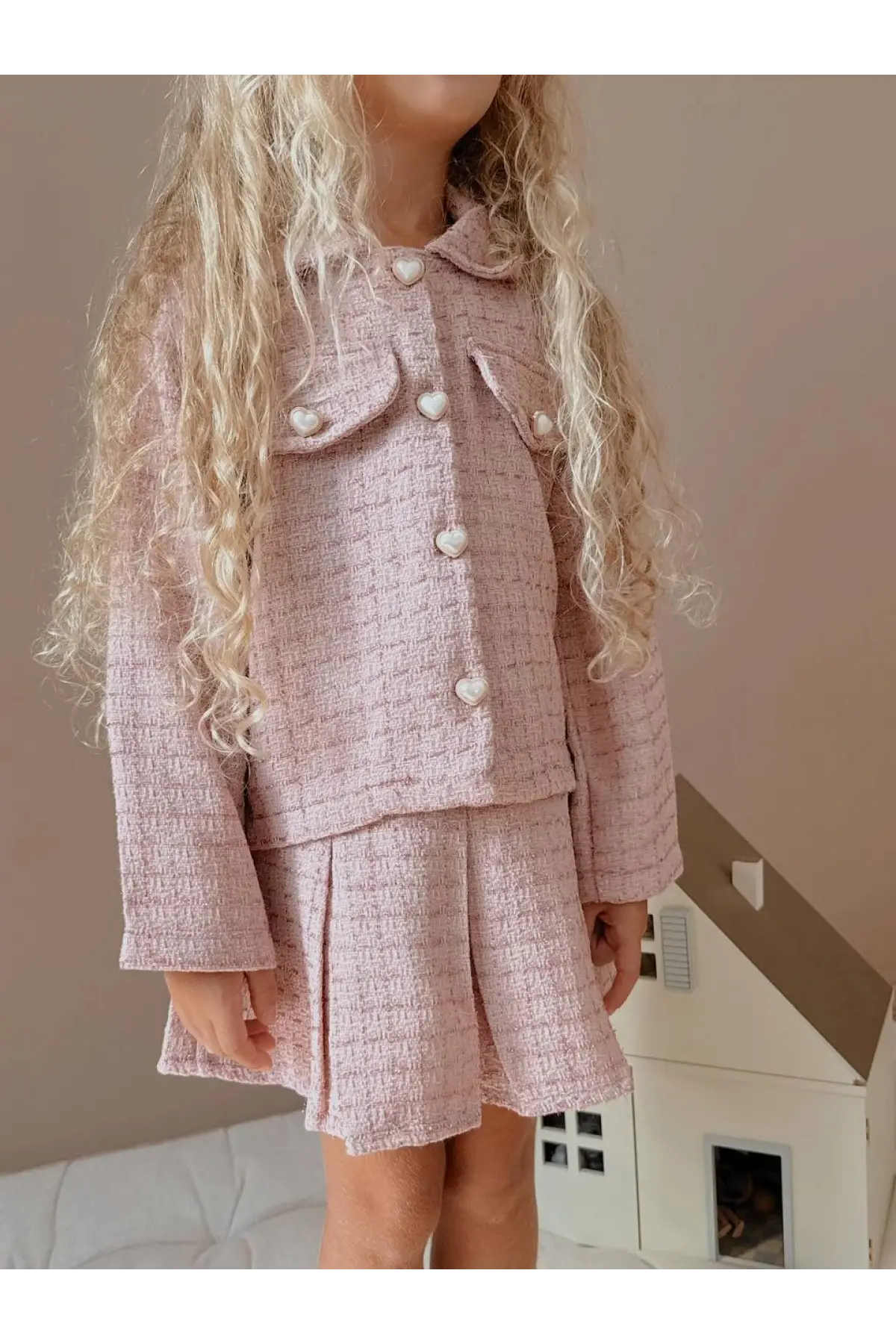 Kız Çocuk Pembe Ceket Etek Alt-Üst Takım