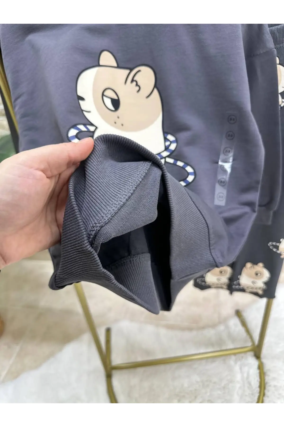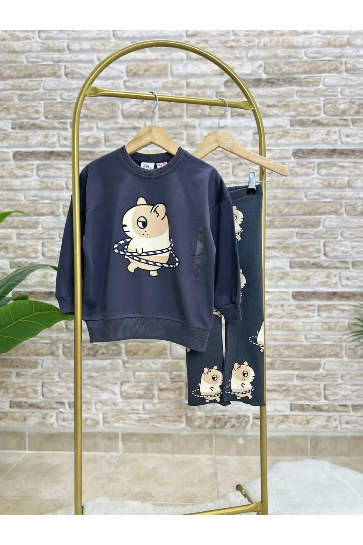 Kız Çocuk Sincap Baskılı Taytlı Alt-Üst Takım