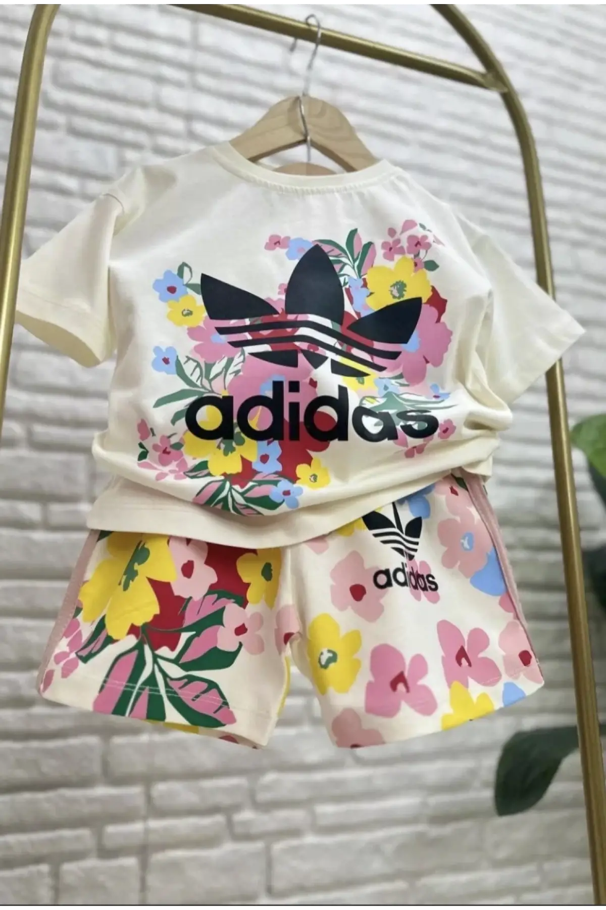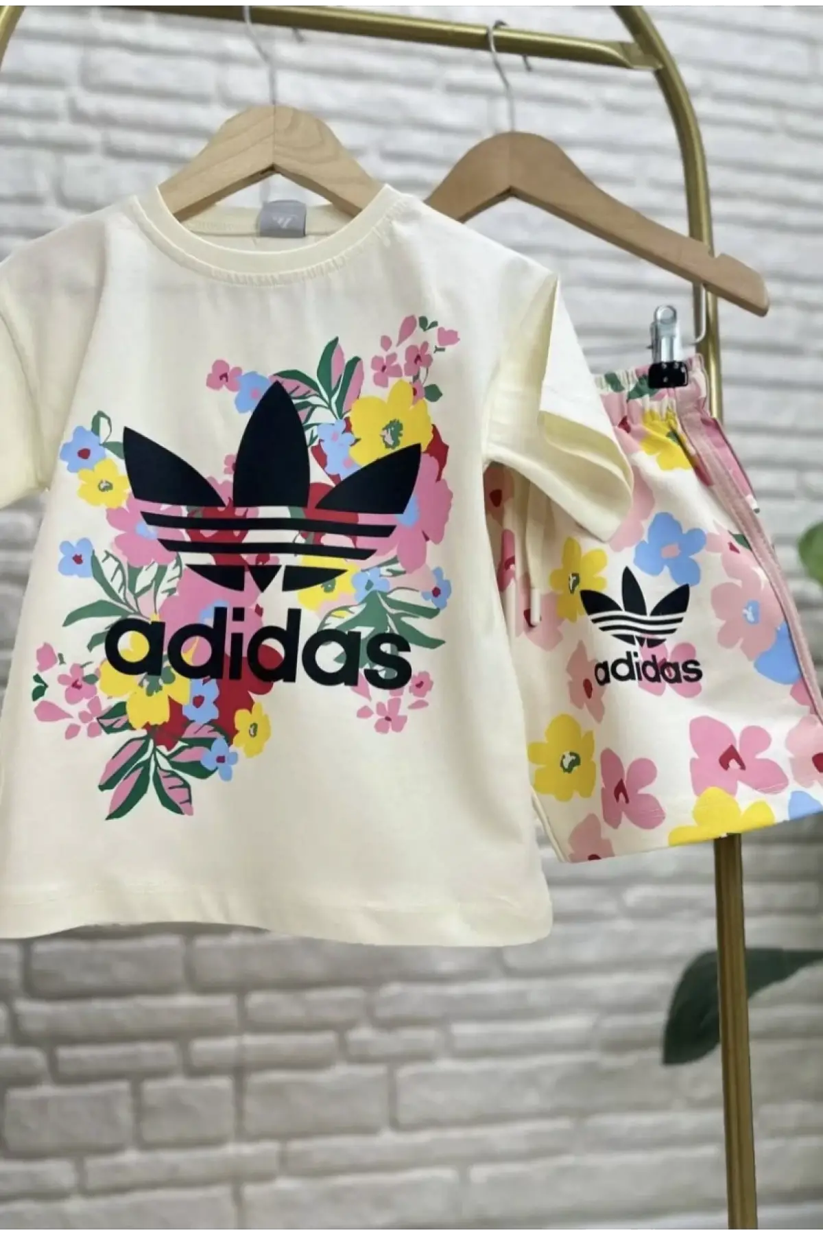 Kız Çocuk Çiçek Baskılı %100 Pamuk Yazlık Takım