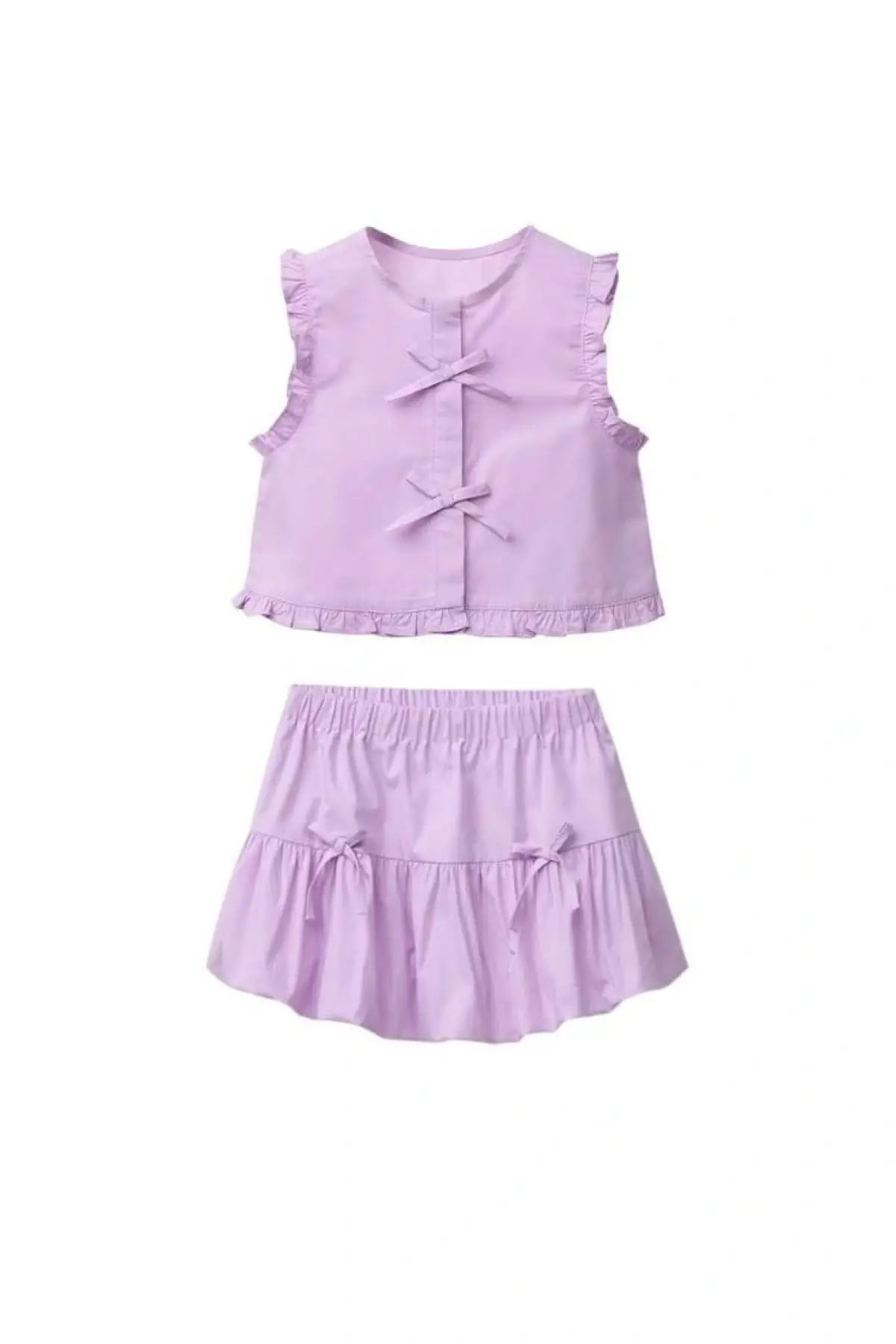 Kız Çocuk Kurdele Detaylı Lila Paraşüt Etek Takım