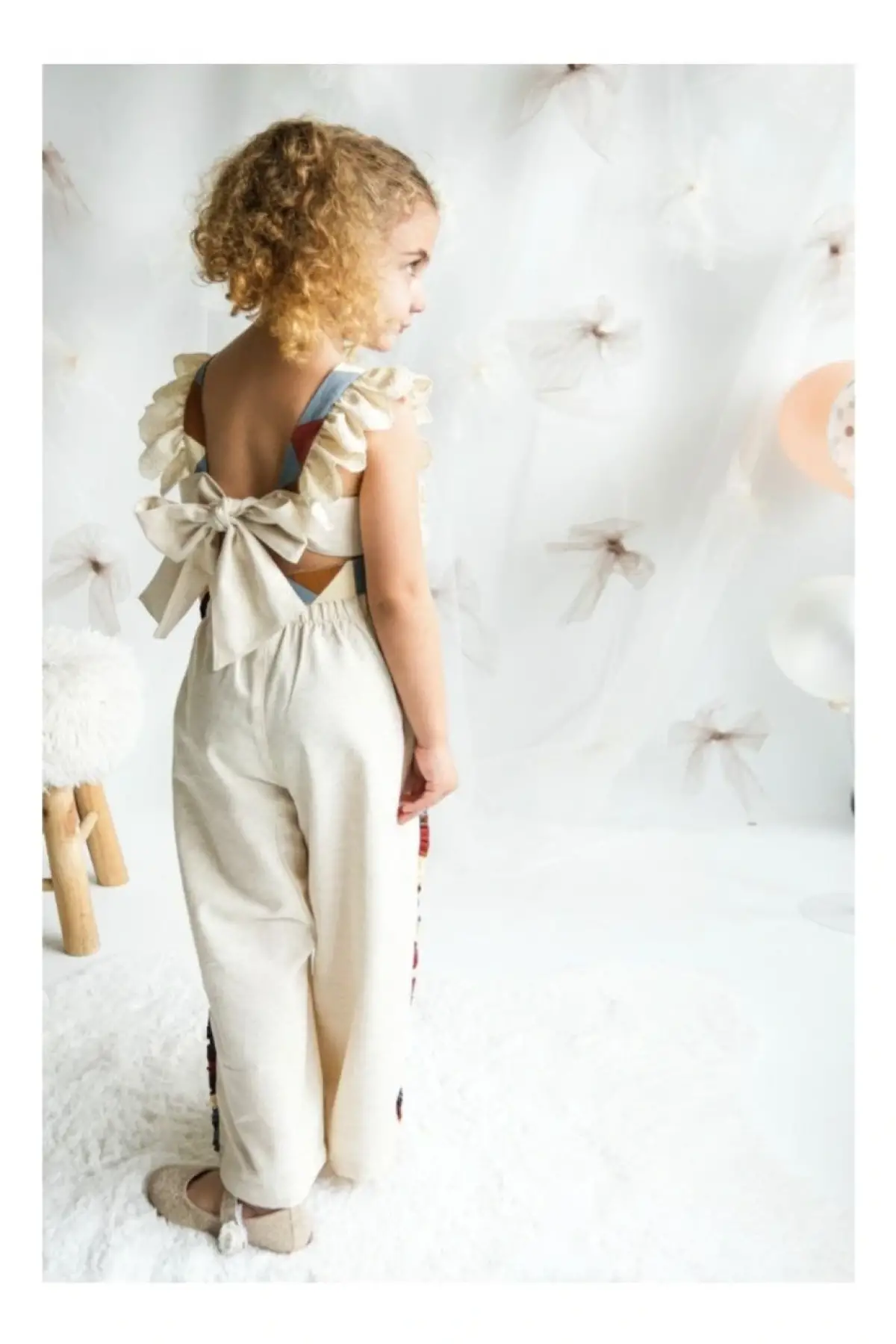 Kız Çocuk Keten Fiyonk Bağlamalı Tulum