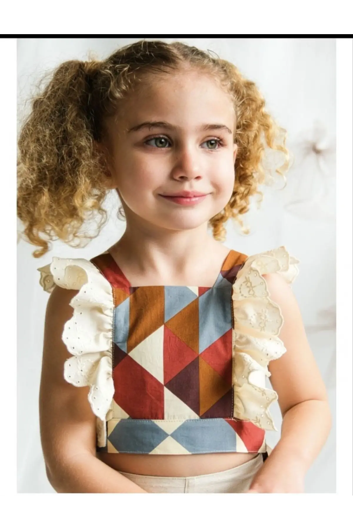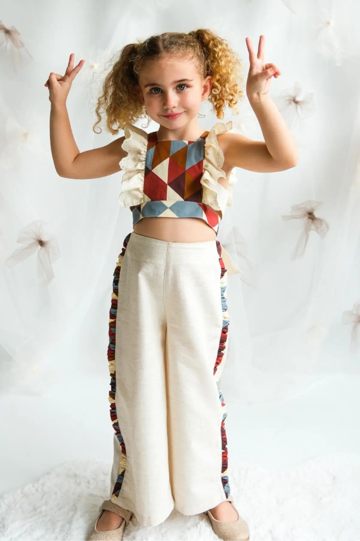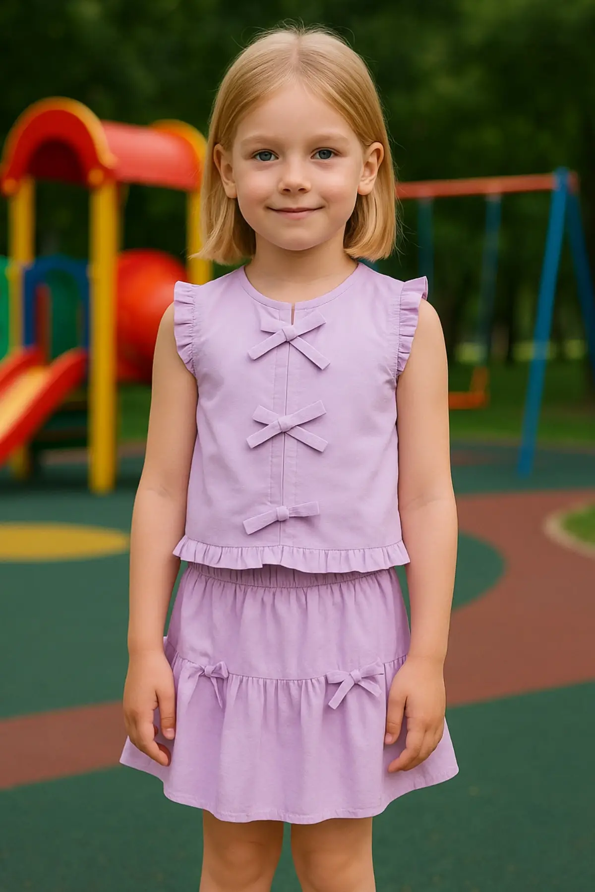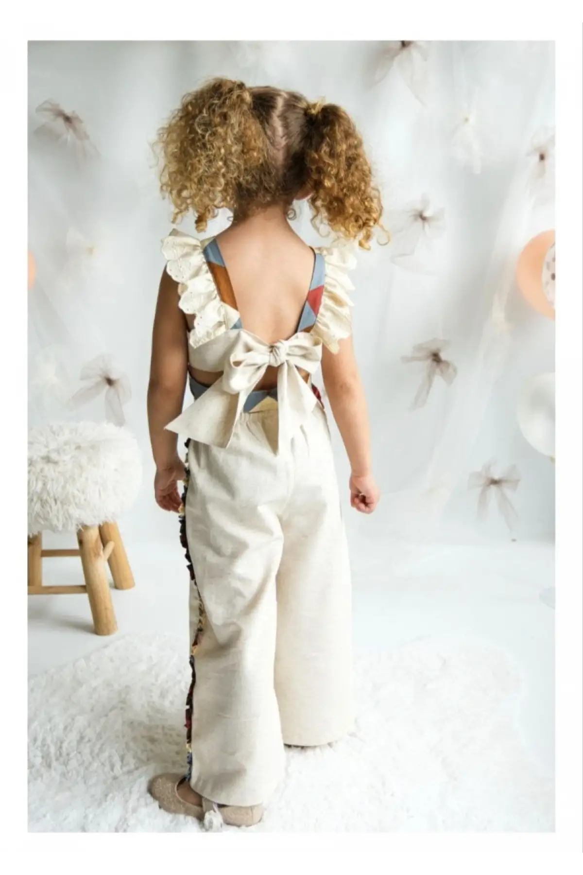 Kız Çocuk Keten Fiyonk Bağlamalı Takım