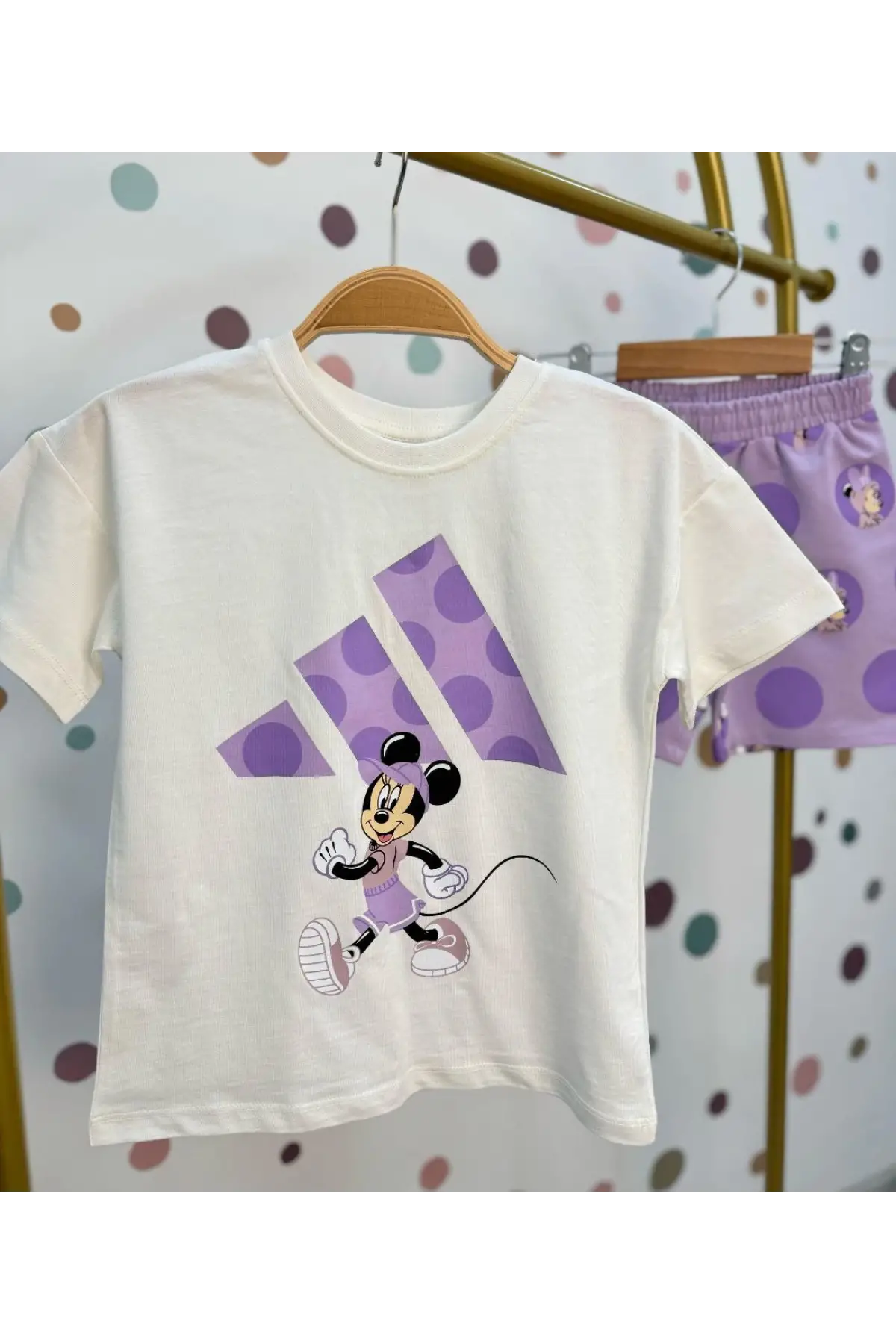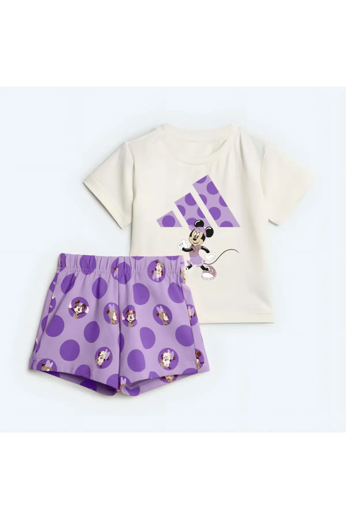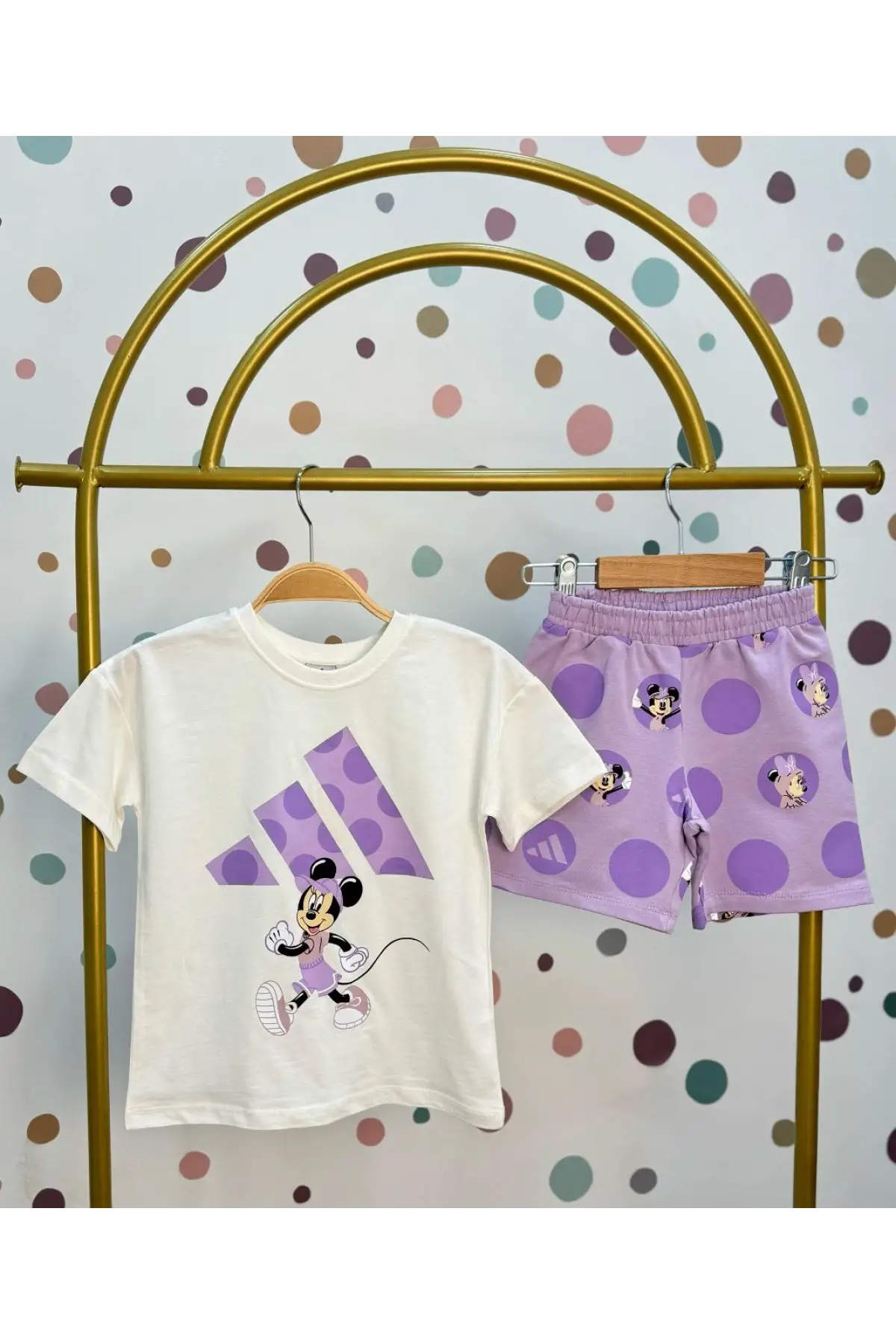 Kız Çocuk Minnie Puantiyeli Lila Yazlık Takım