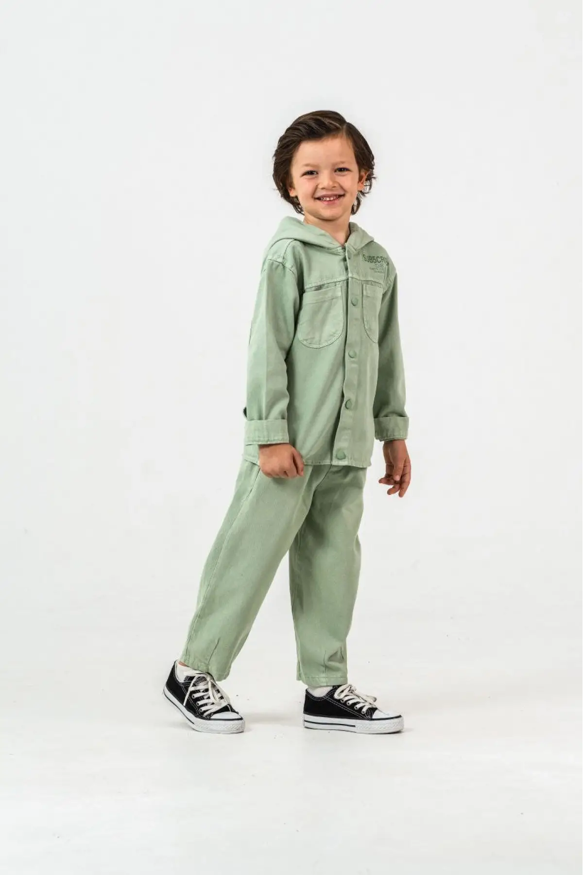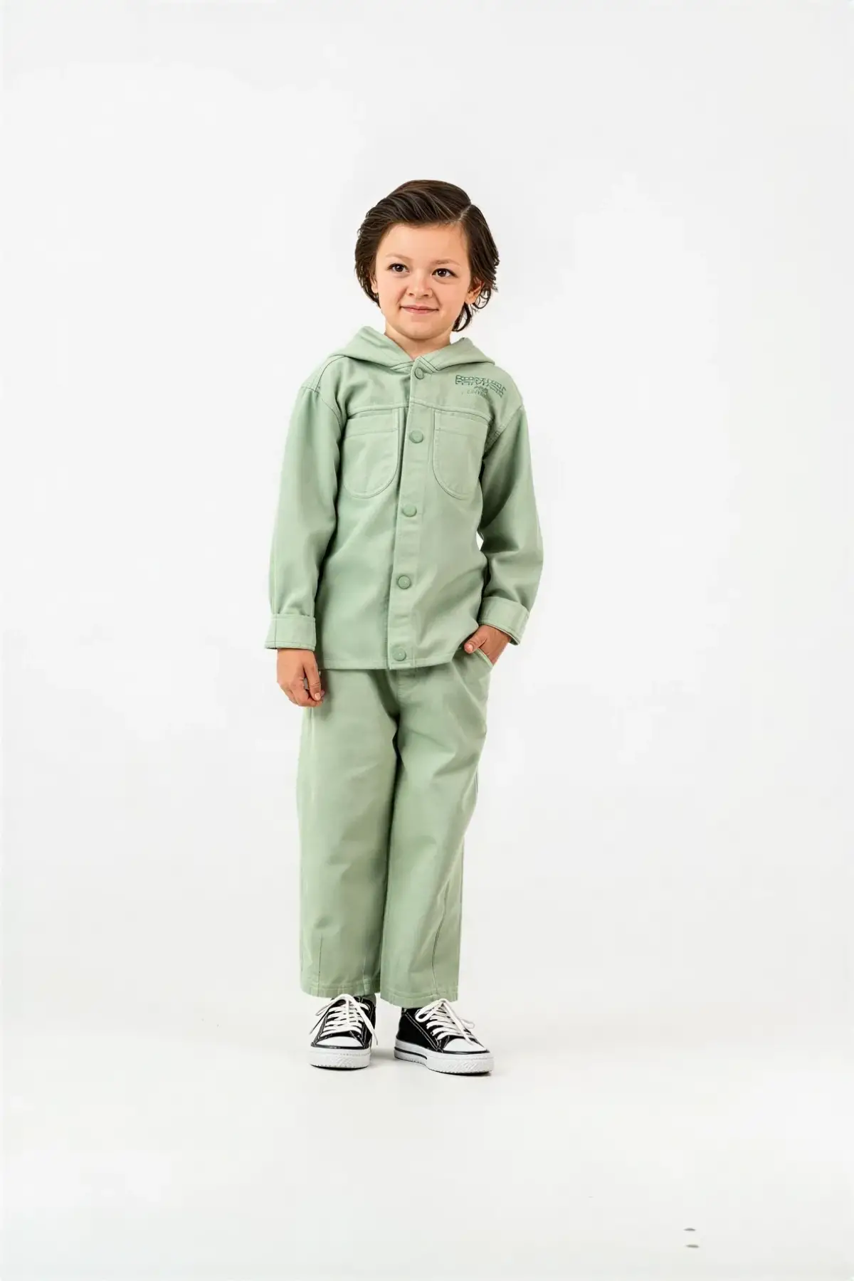 Erkek Çocuk Kapüşonlu Dokuma Yeşil Takım