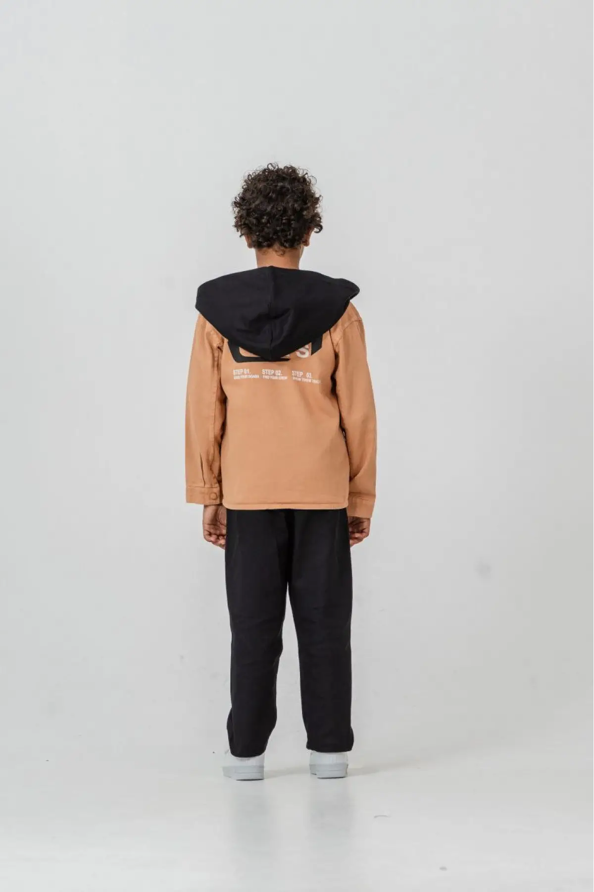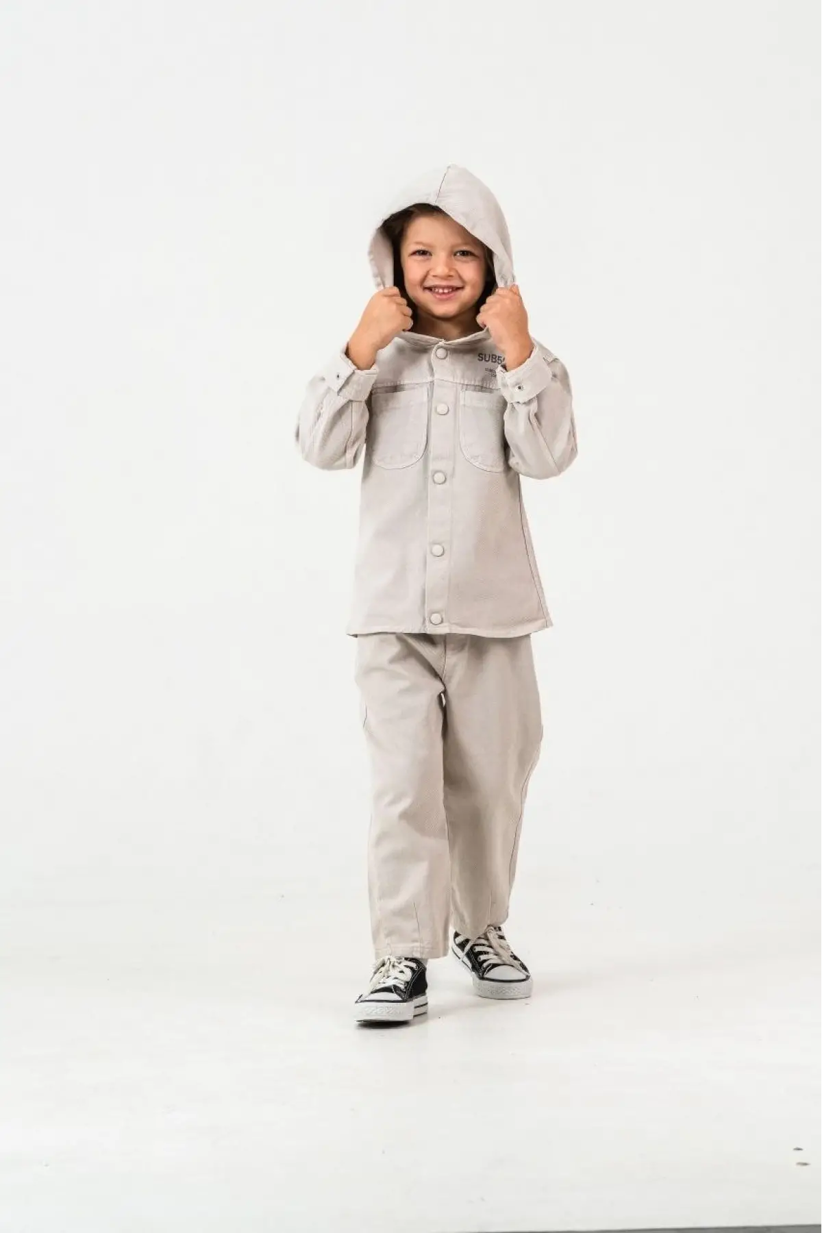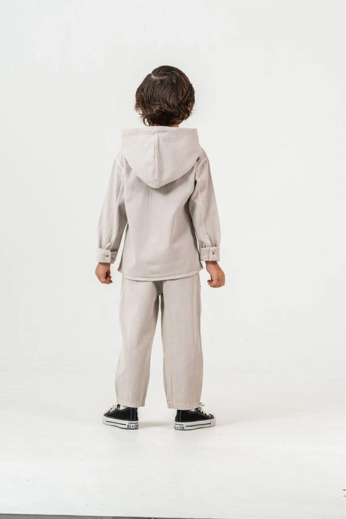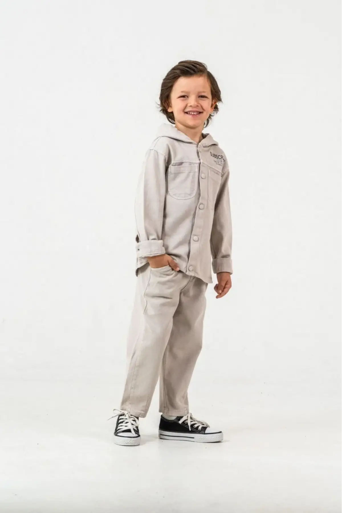 Erkek Çocuk Kapüşonlu Dokuma Bej Takım