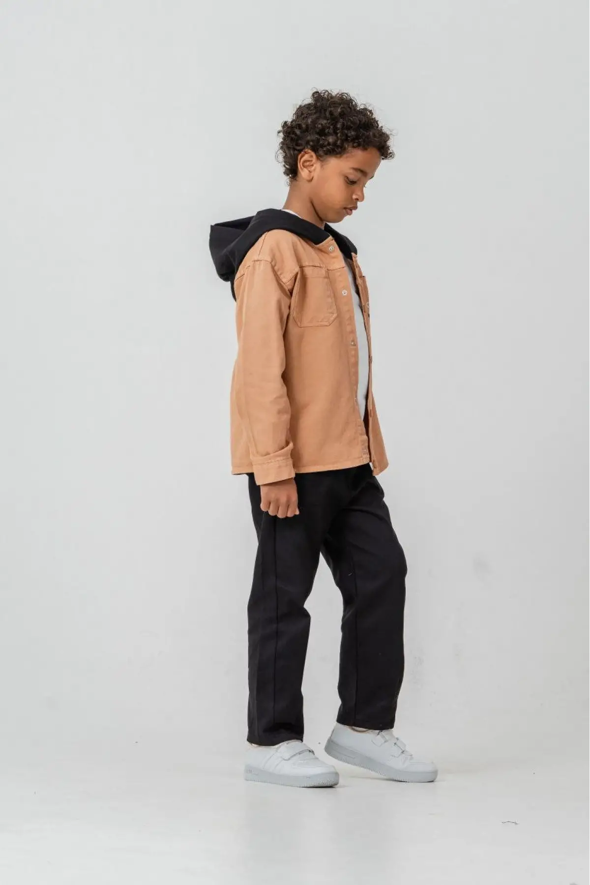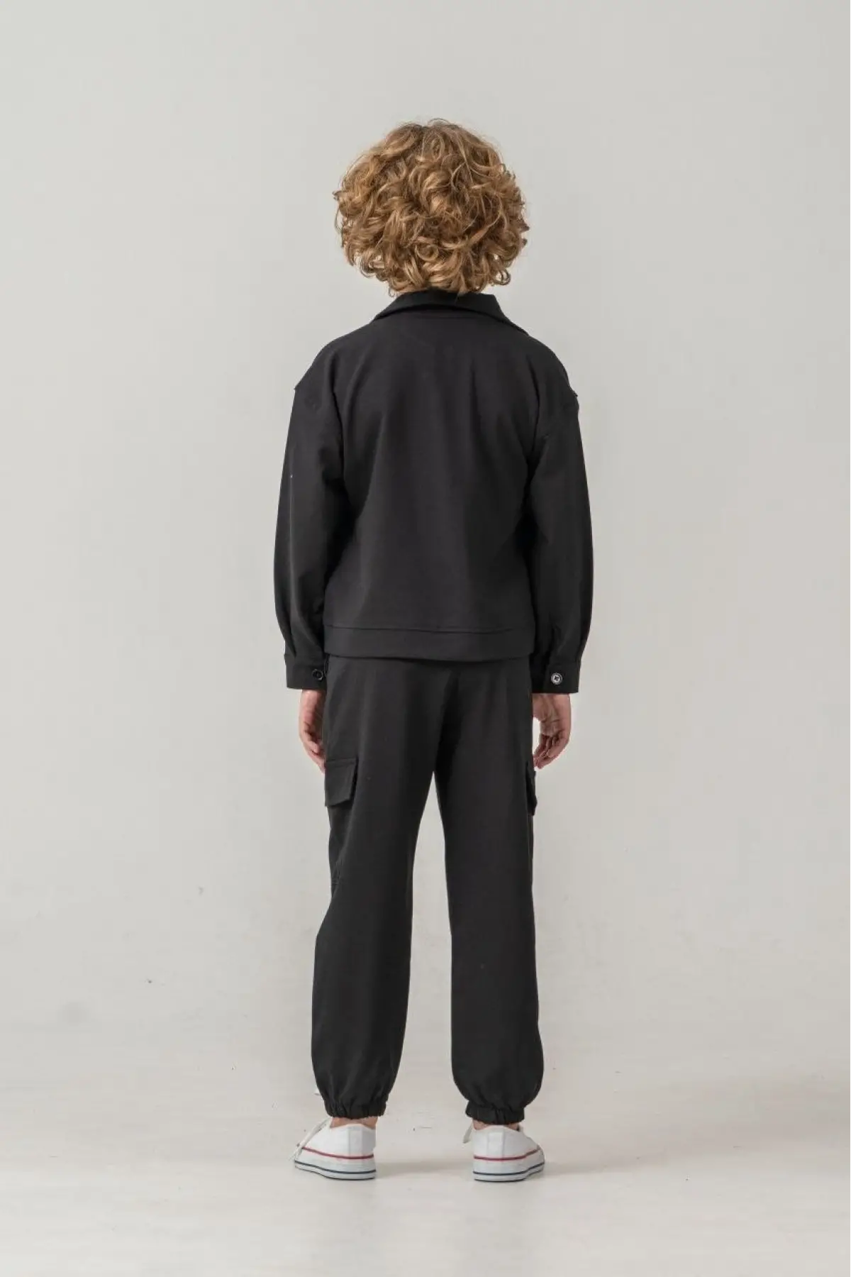 Erkek Çocuk Keten Gömlek Siyah Alt-Üst Takım