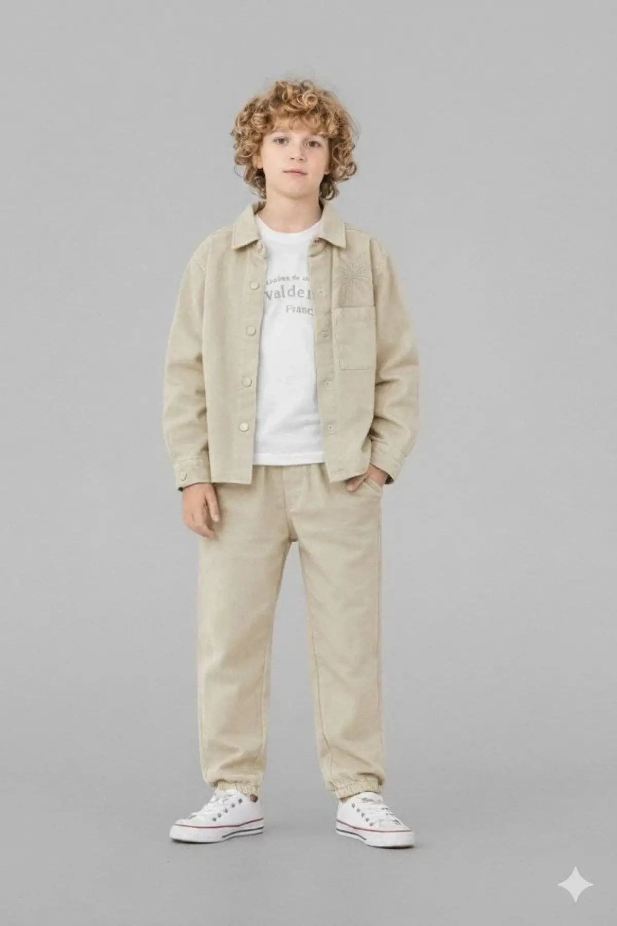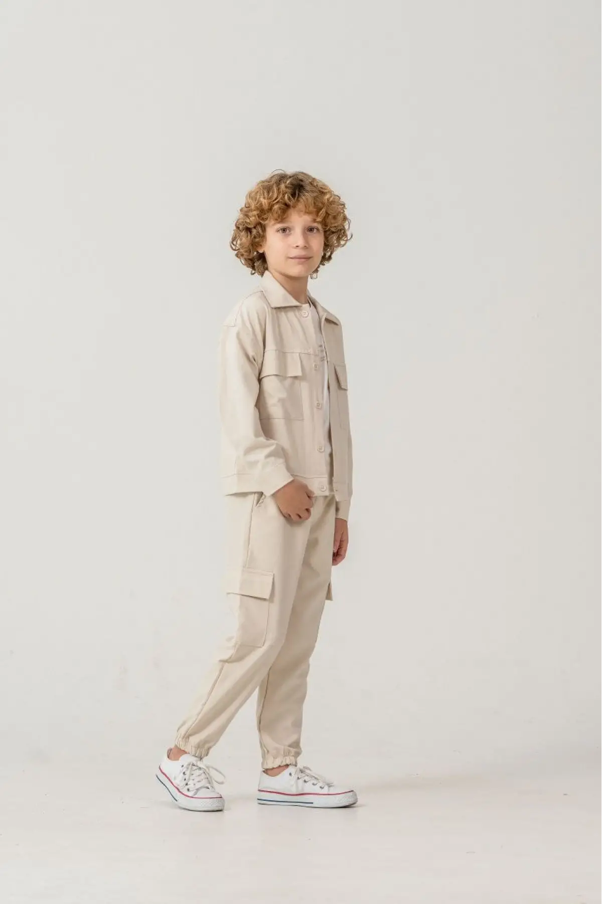 Erkek Çocuk Keten Gömlek Bej Alt-Üst Takım
