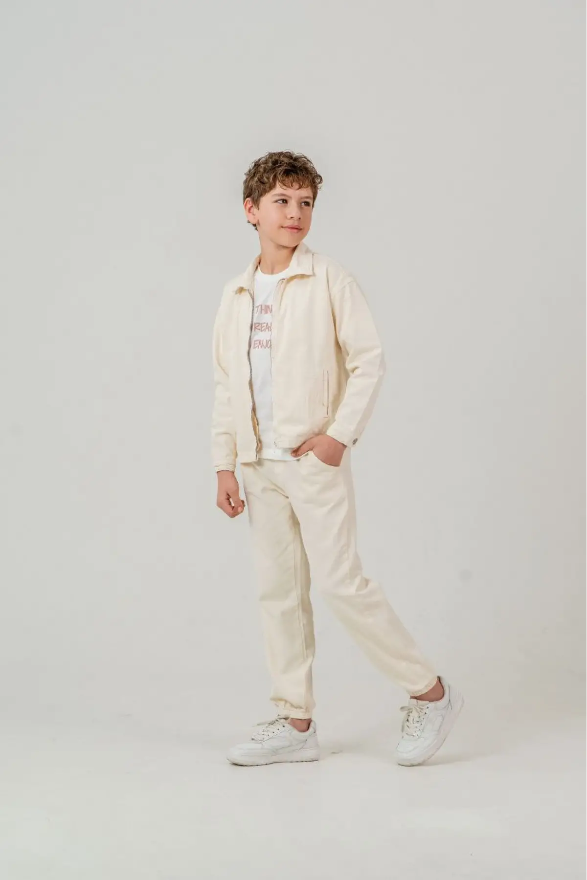 Erkek Çocuk Nakış Detaylı Krem 3'lü Takım