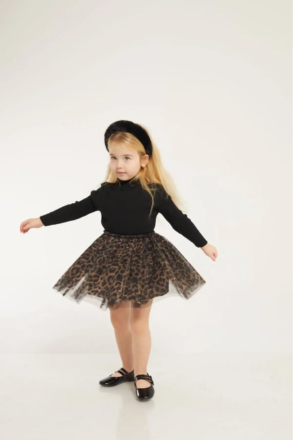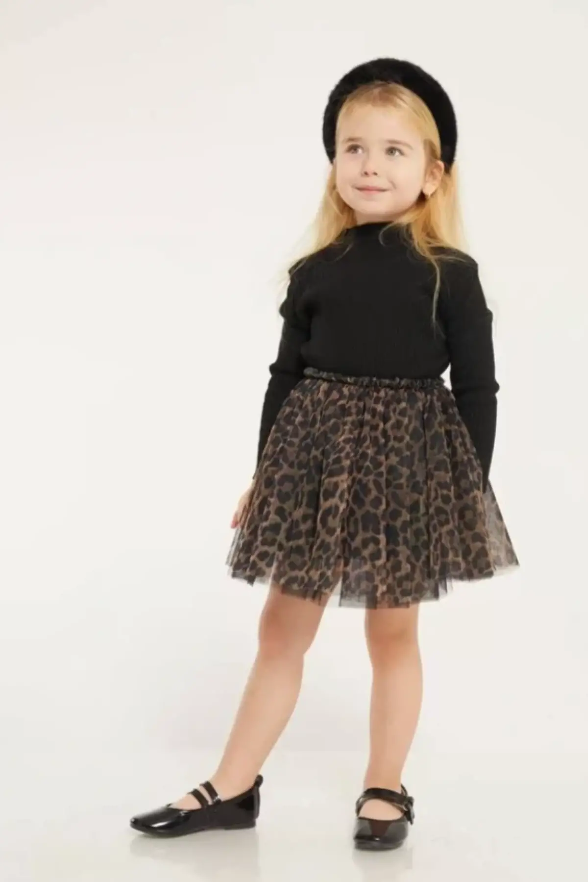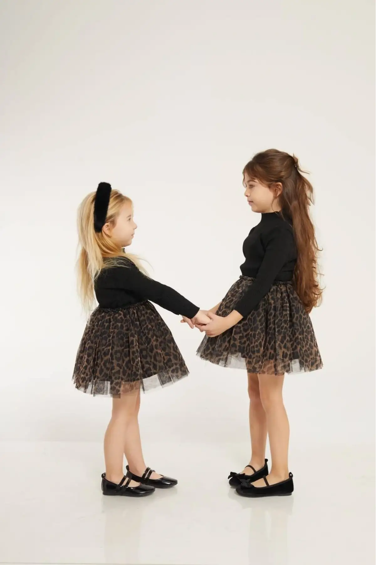 Kız Çocuk Kalp Detaylı Leopar Takım