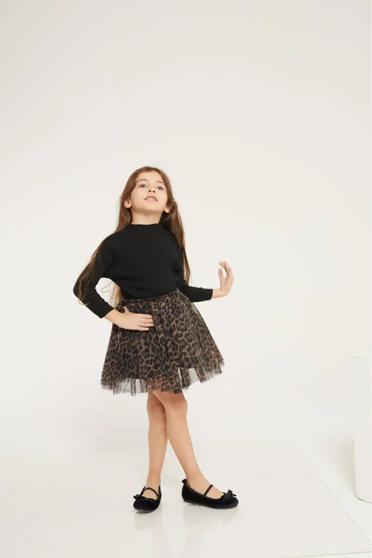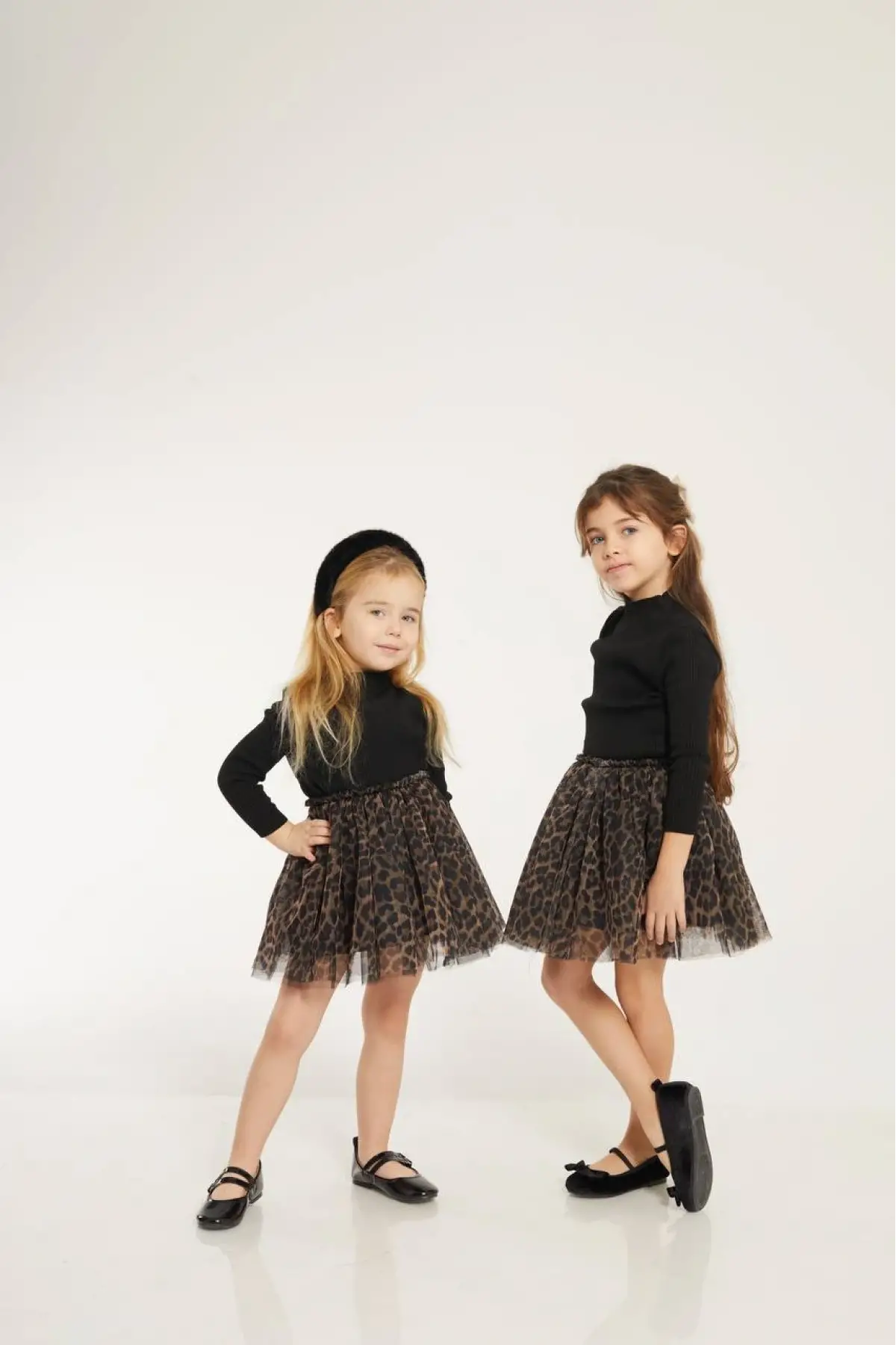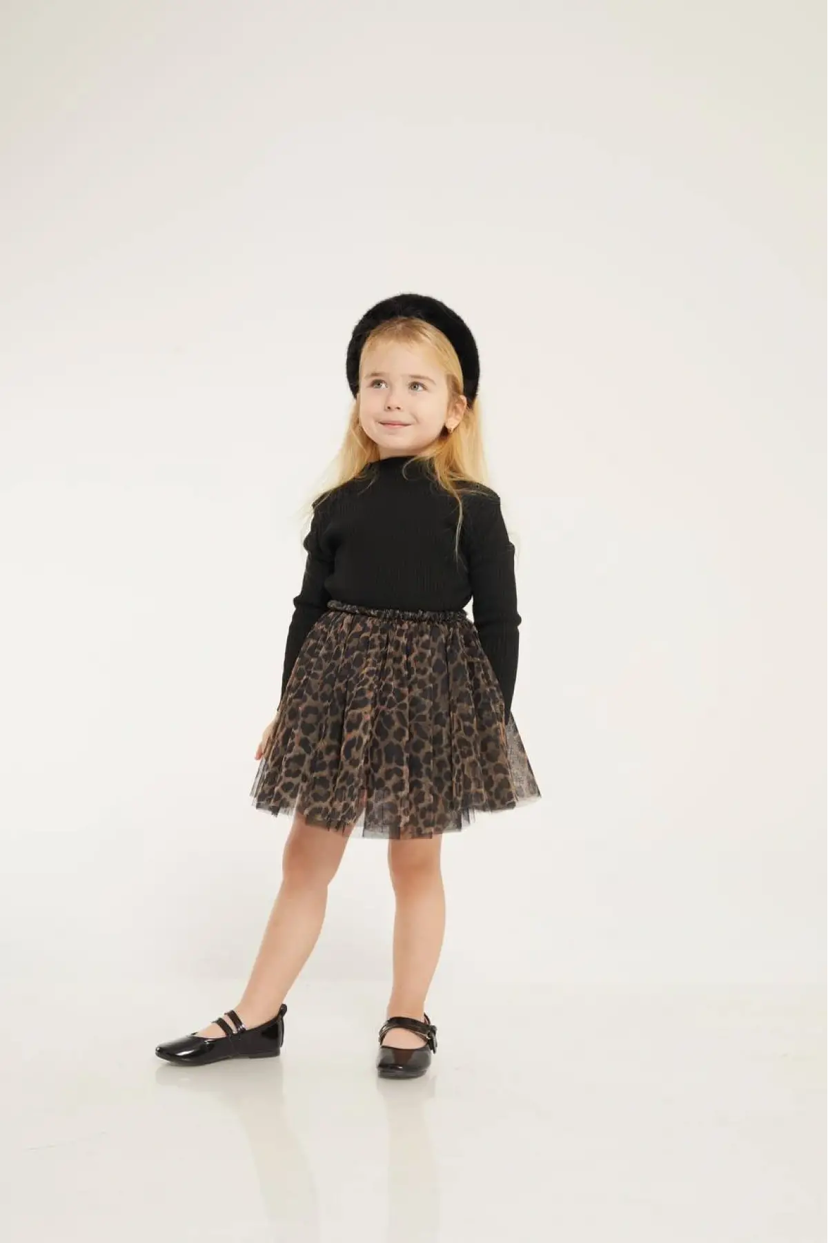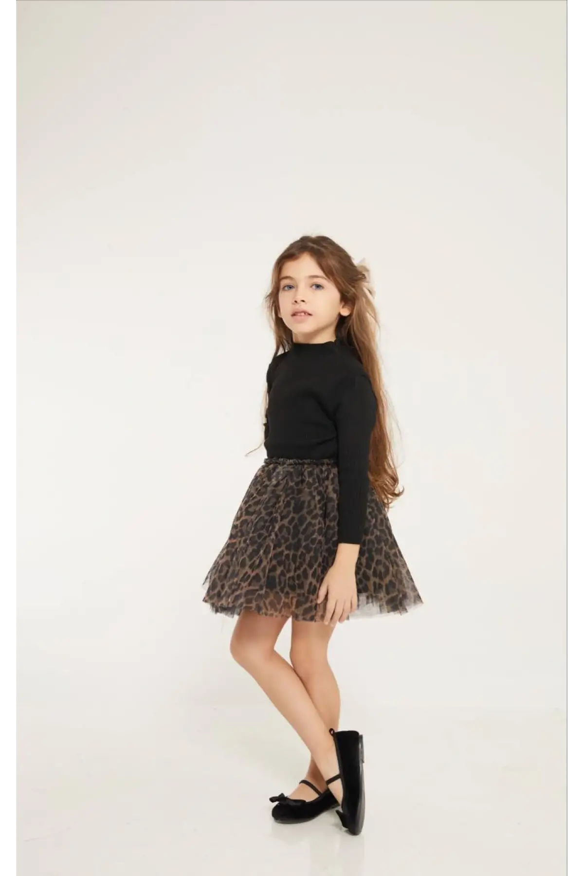 Kız Çocuk Kalp Detaylı Leopar Takım