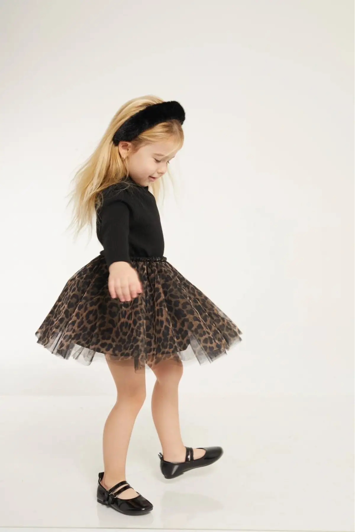 Kız Çocuk Leopar Fiyonk Elbise Ceket Takım