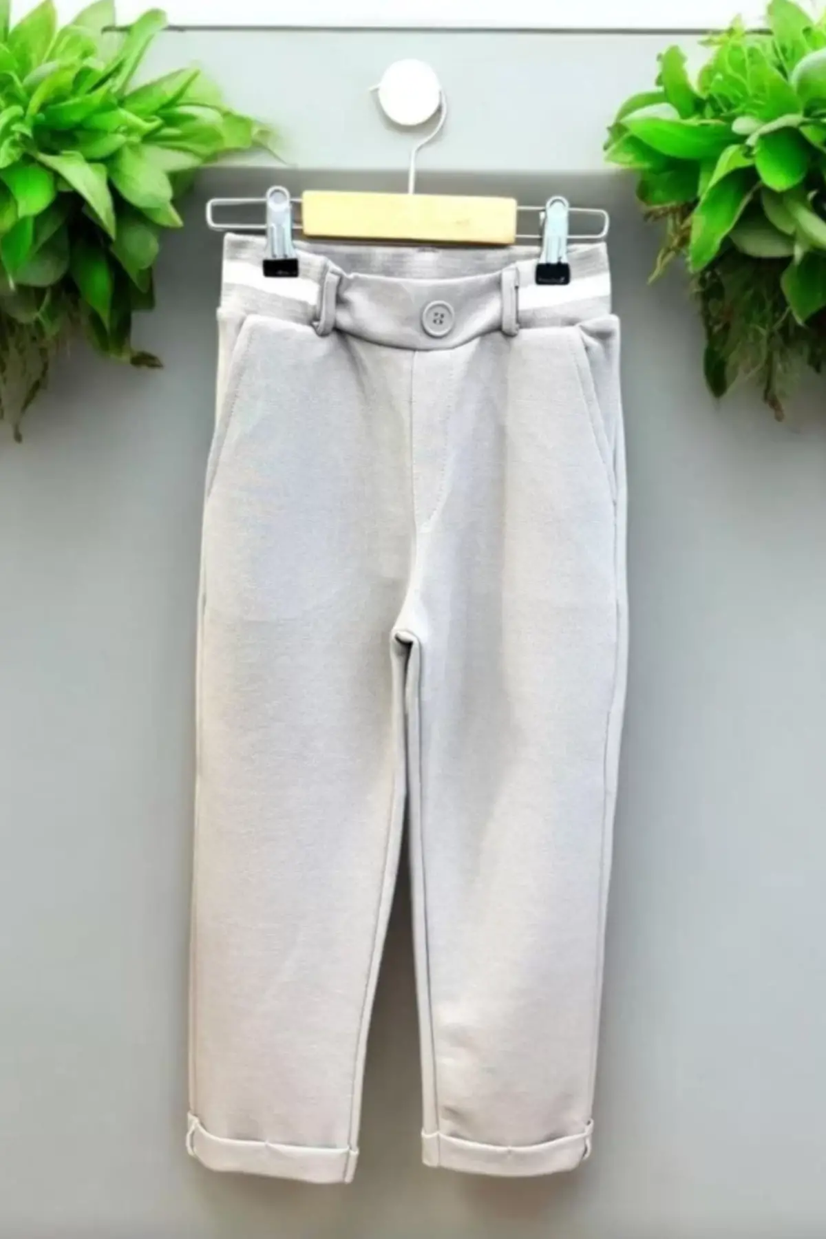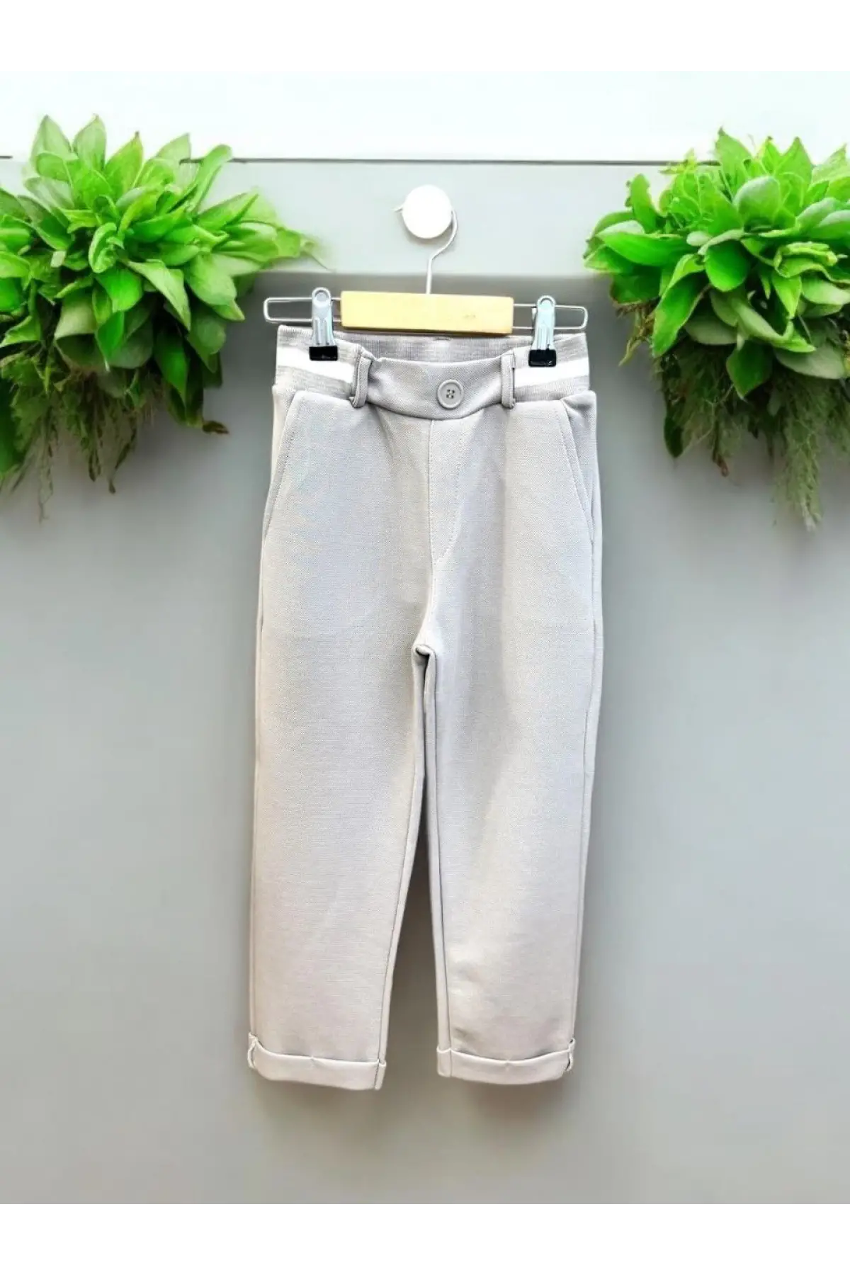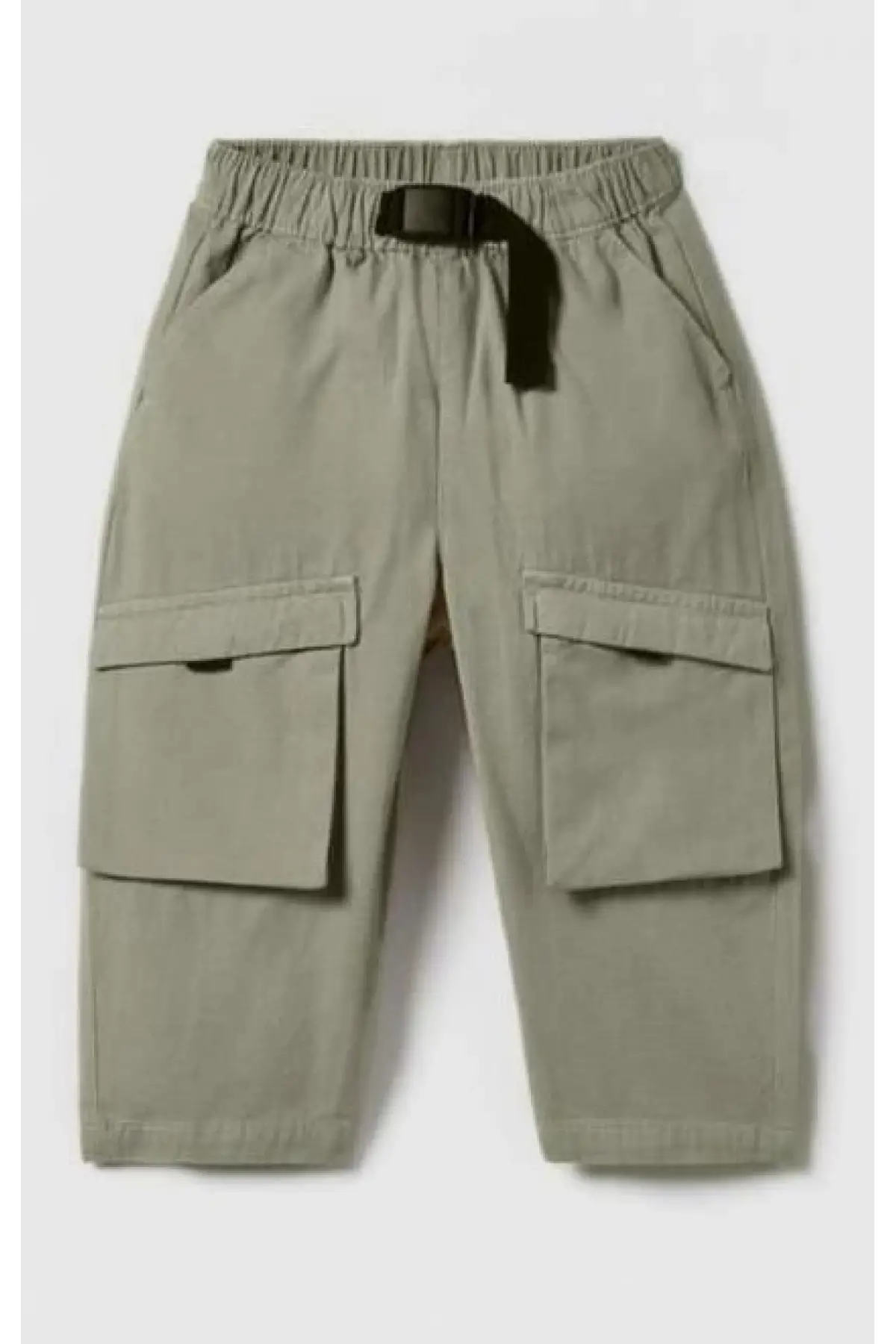 Çocuk Kemer Detaylı Gofre Kumaş Gri Pantolon