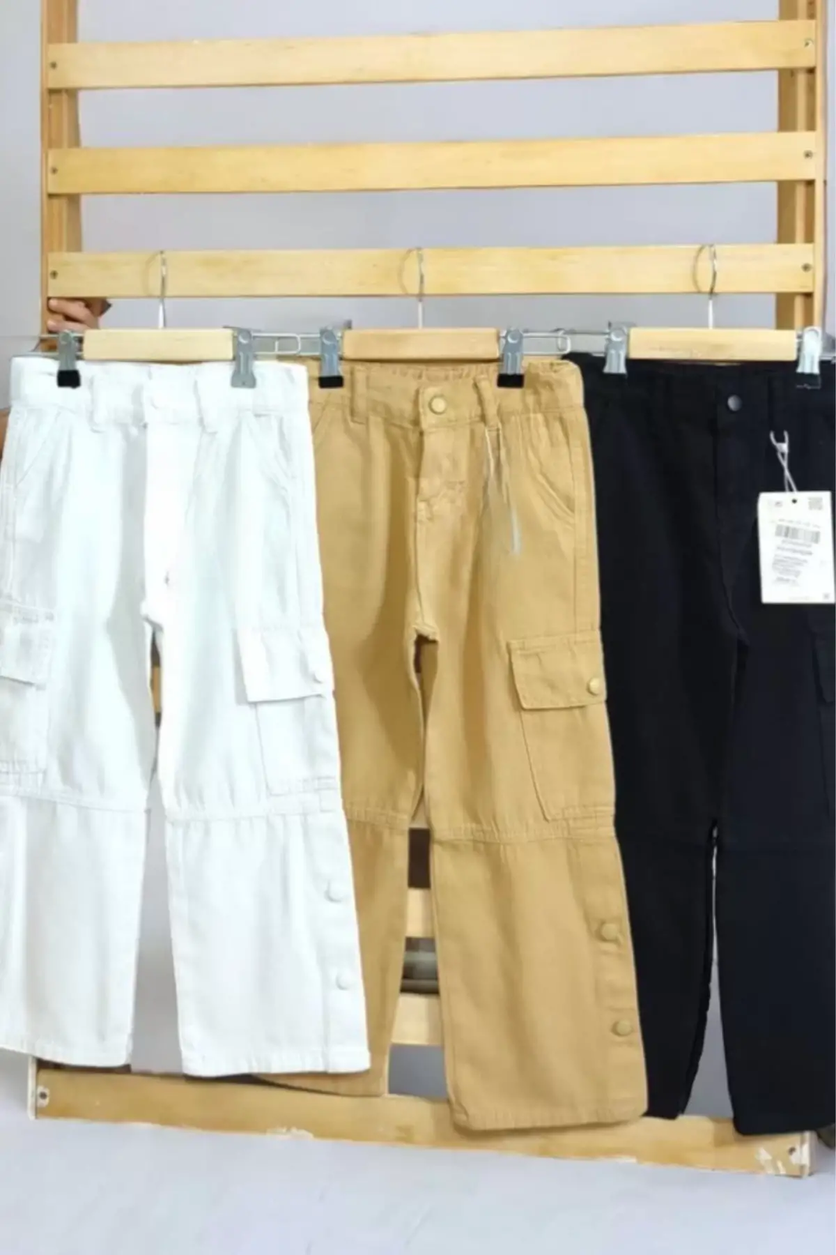 Unisex Kargo Cep Siyah Gabardin Pantolon