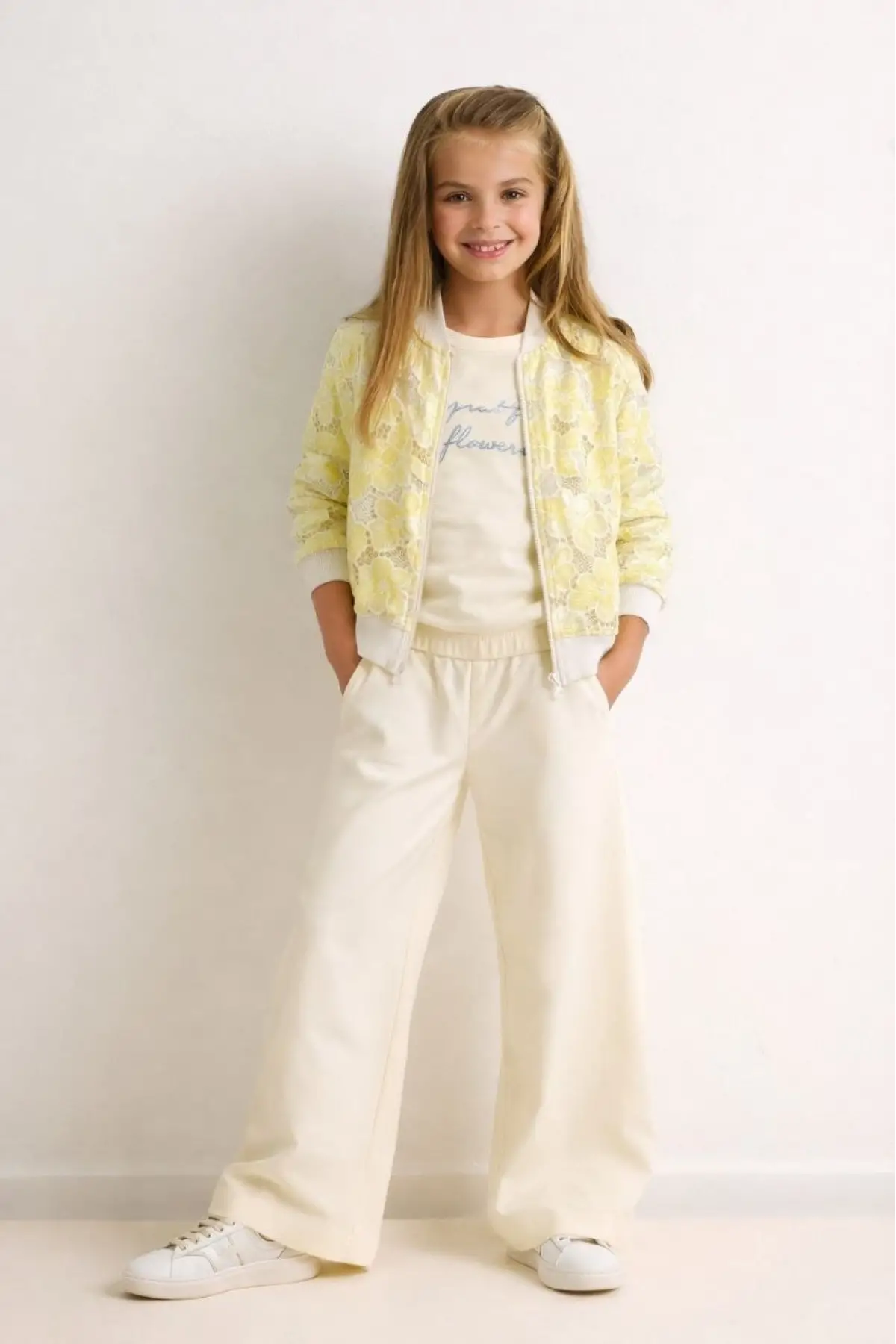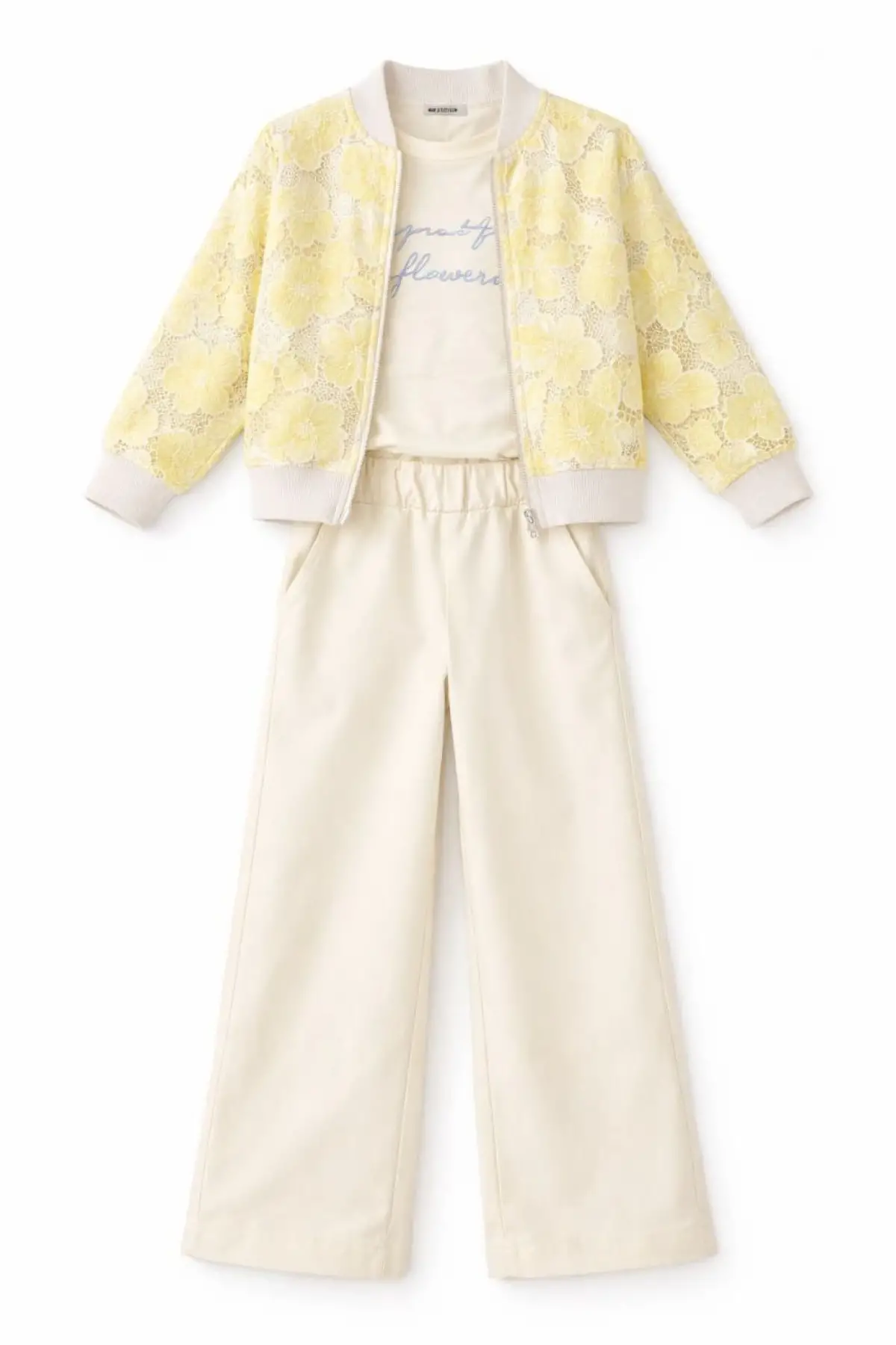 Kız Çocuk Ceket Gabardin Pantolon Sarı 3'lü Takım
