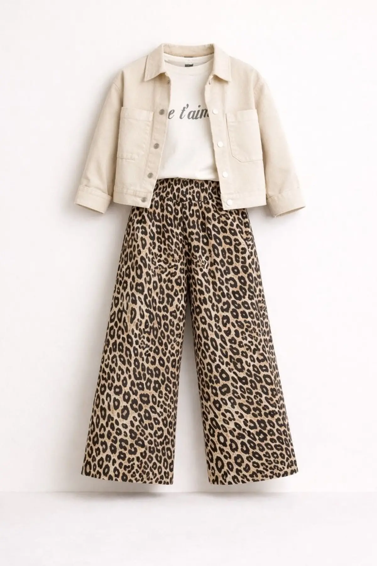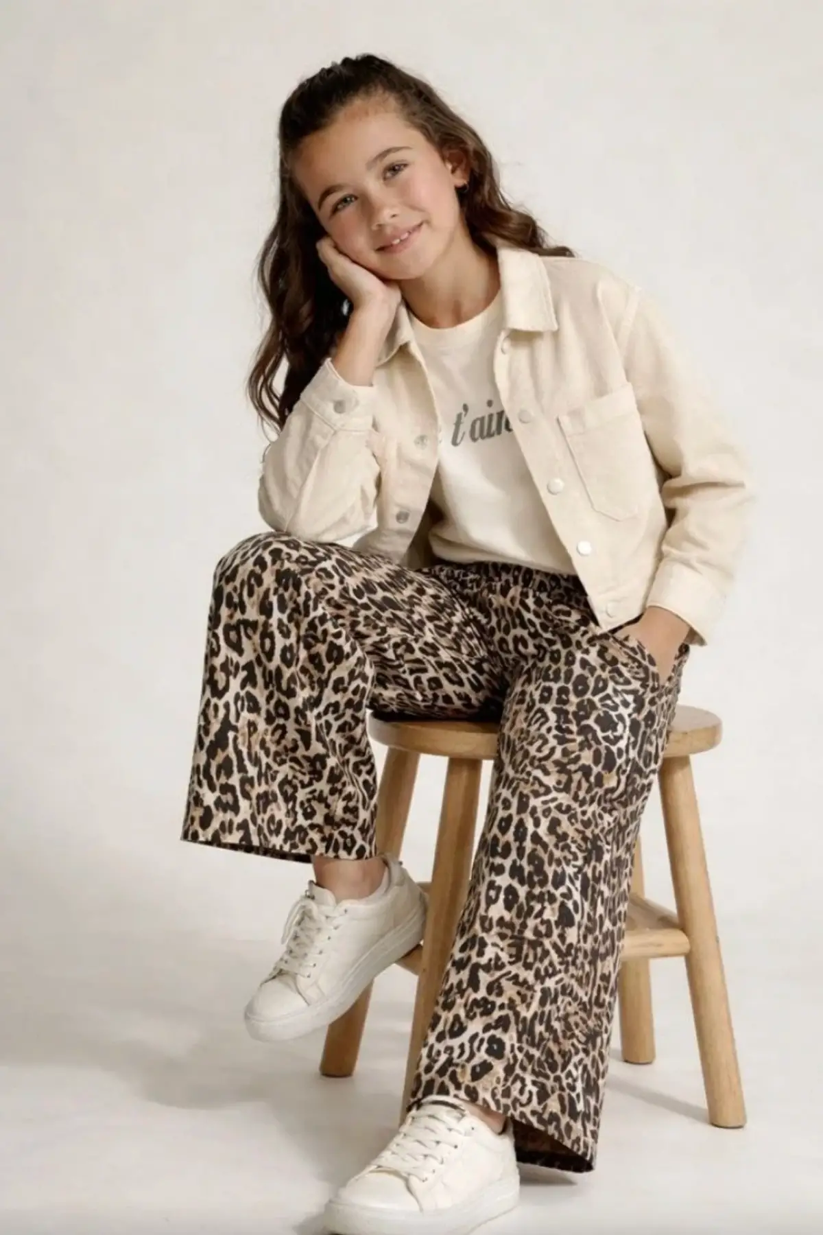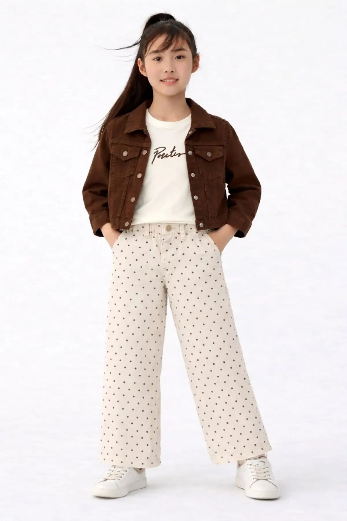 Kız Çocuk Ceketli Bol Paça Pantolon Kahverengi Takım