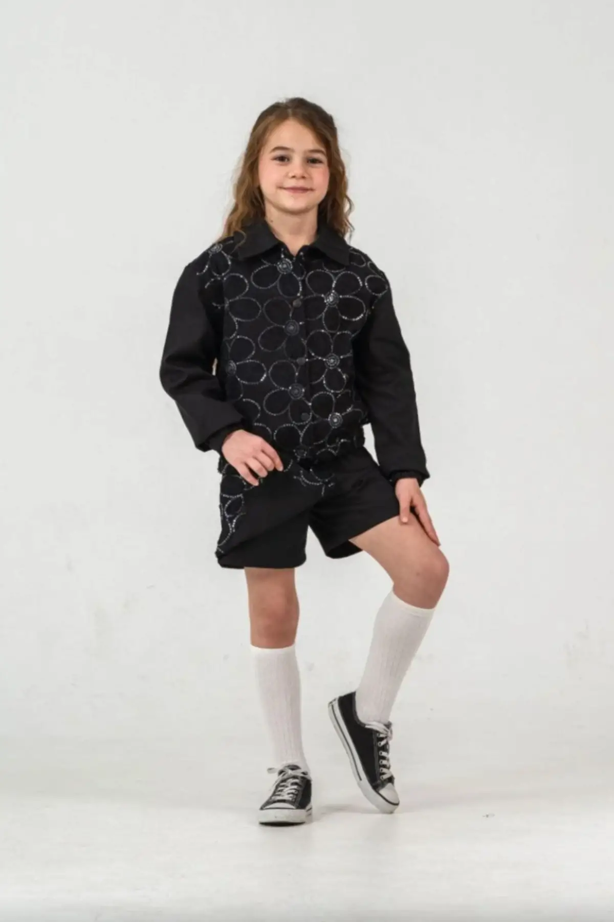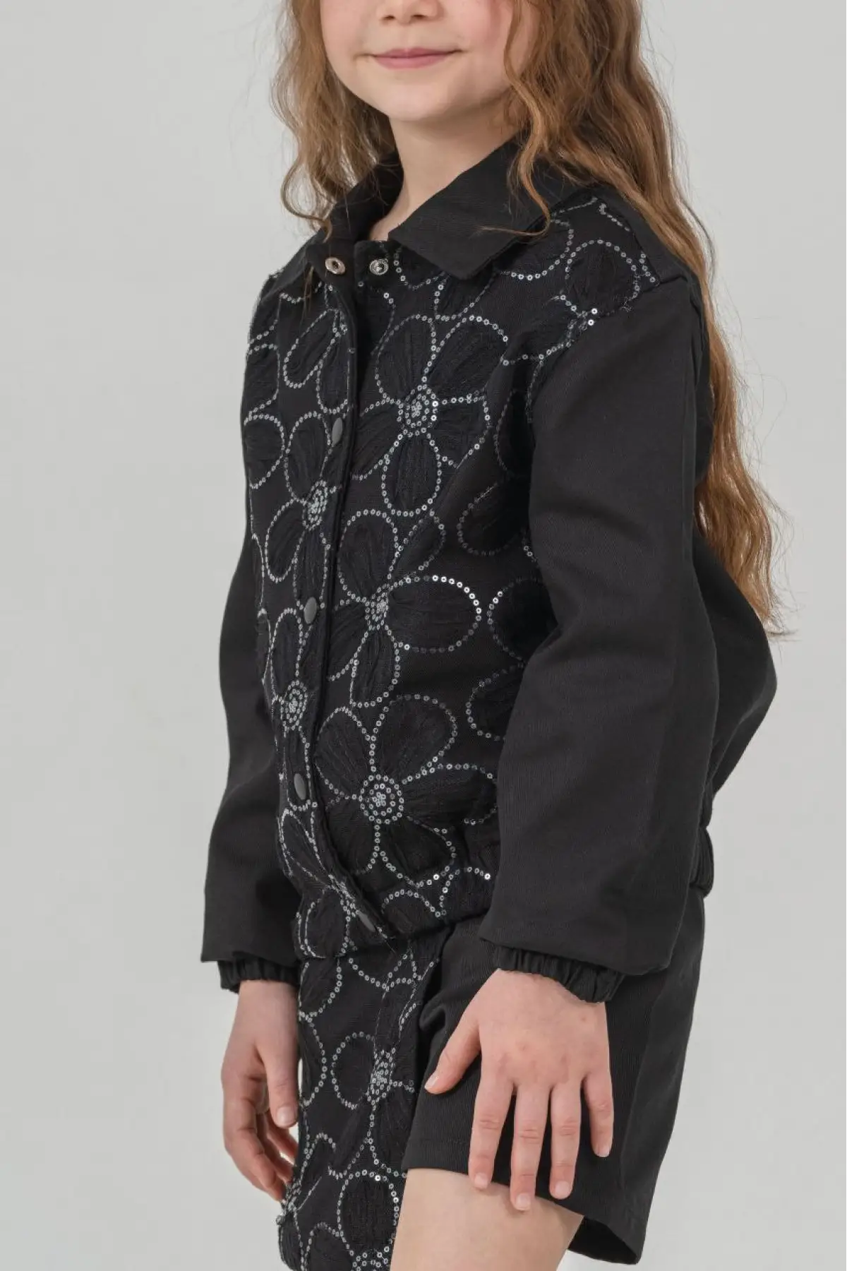 Kız Çocuk Payet İşlemeli Şort Etek Siyah Takım