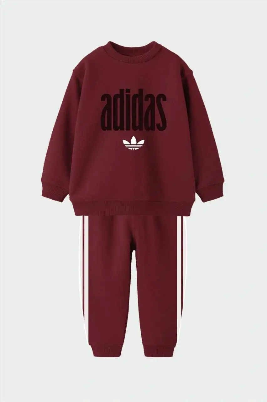 Unisex Çizgili Marka Baskılı Pamuk %100 Pamuk Bordo Takım