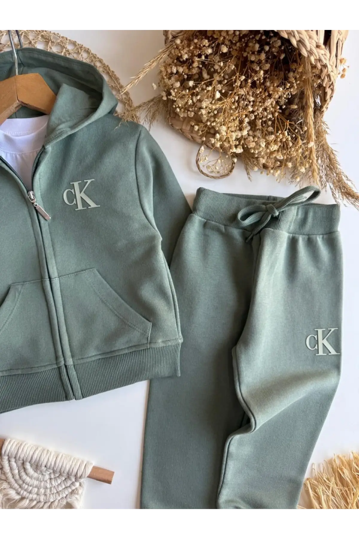 Unisex Fermuarlı % 100 Pamuk Vizon Takım