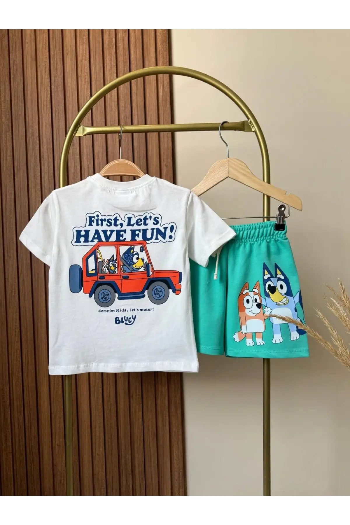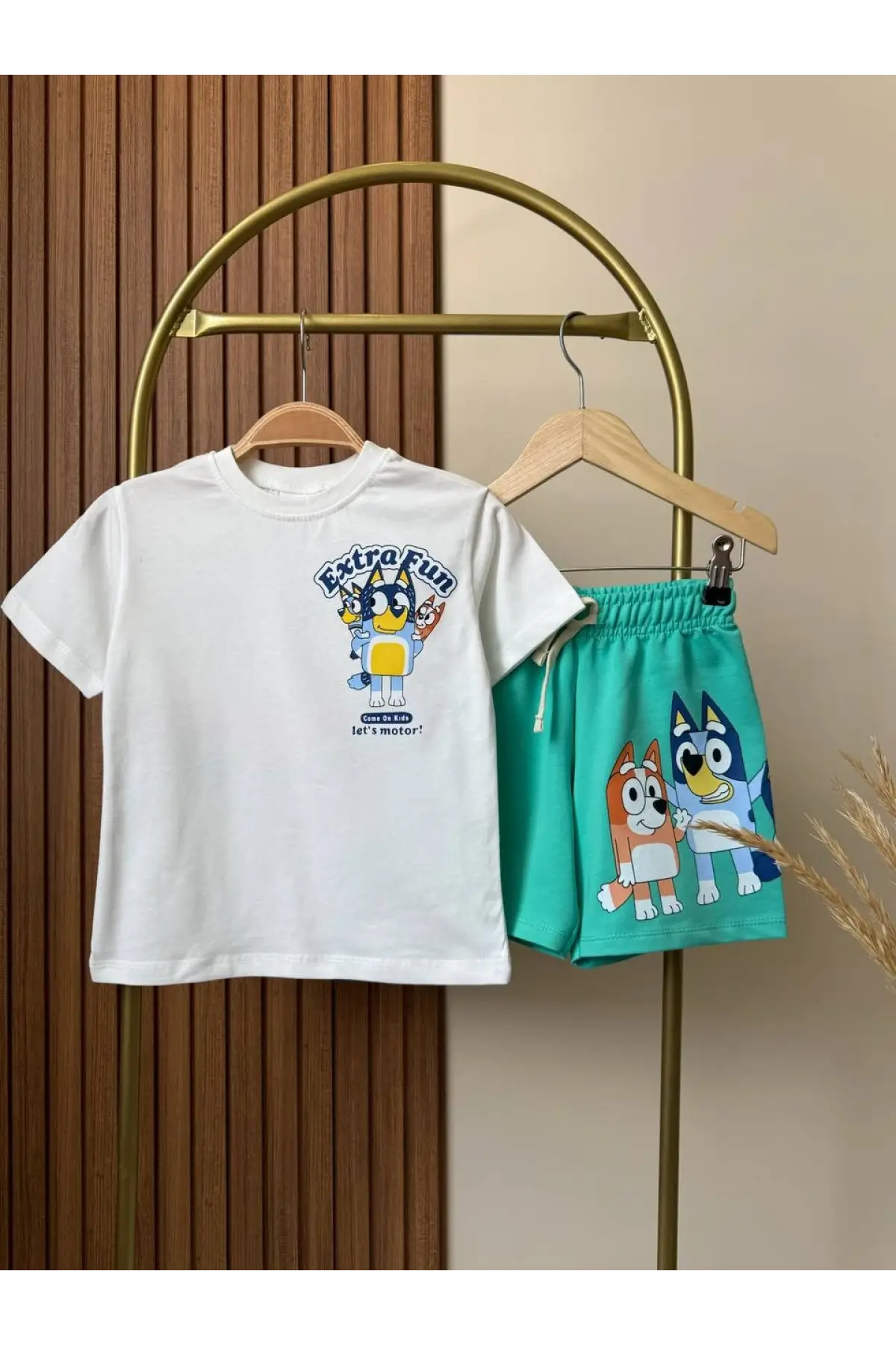 Çocuk Bluey Baskılı %100 Pamuk Yazlık Takım