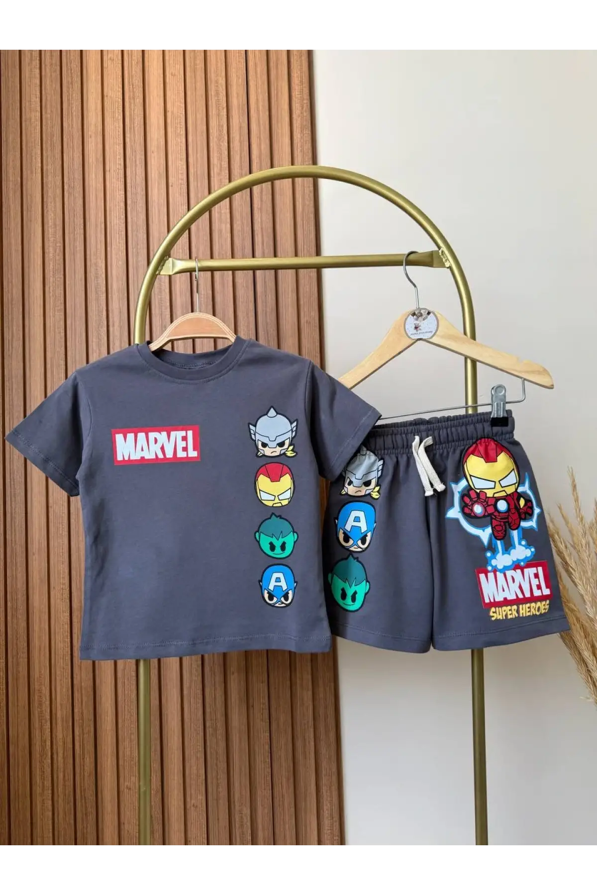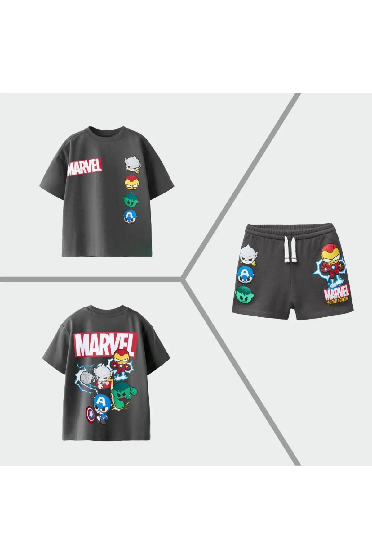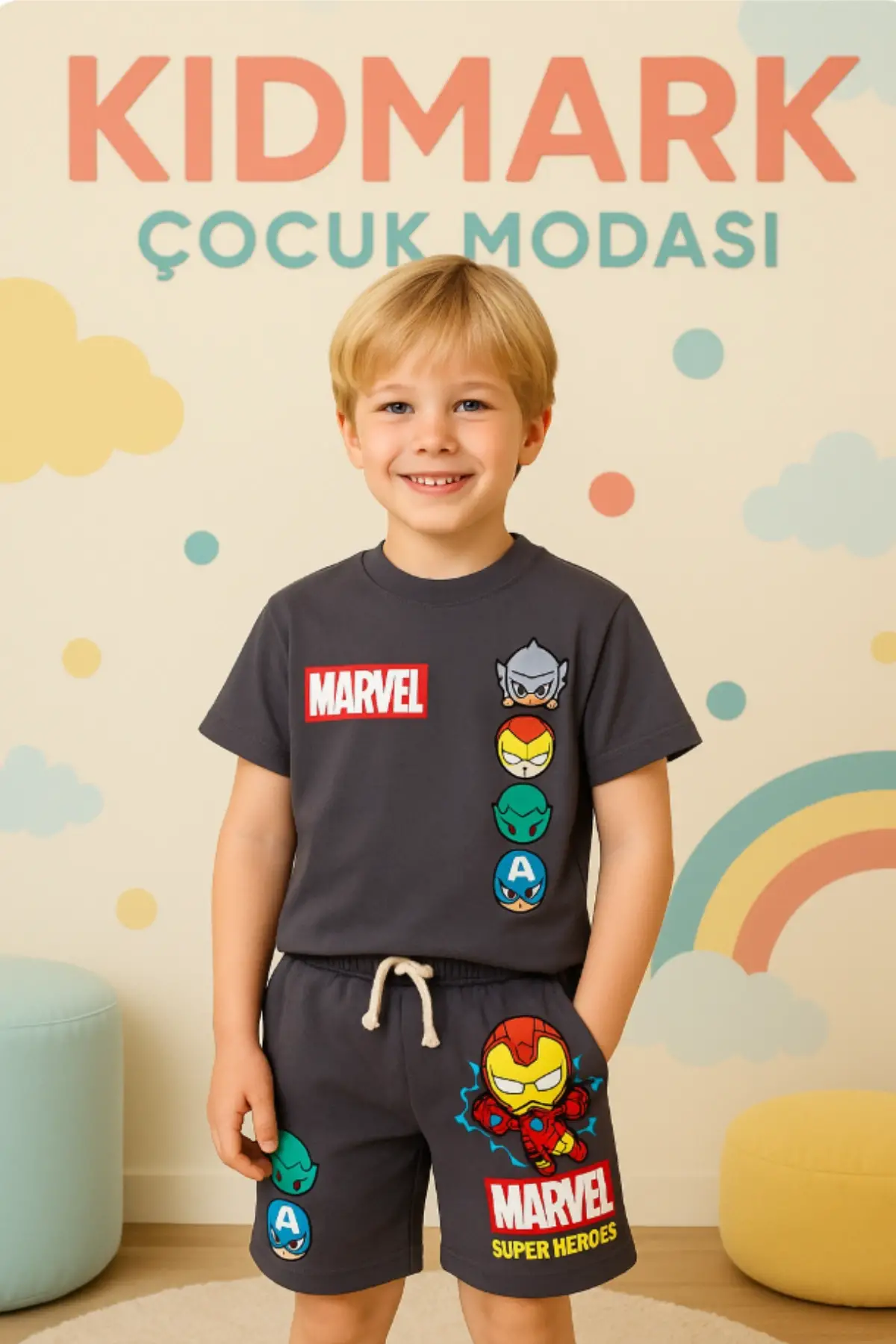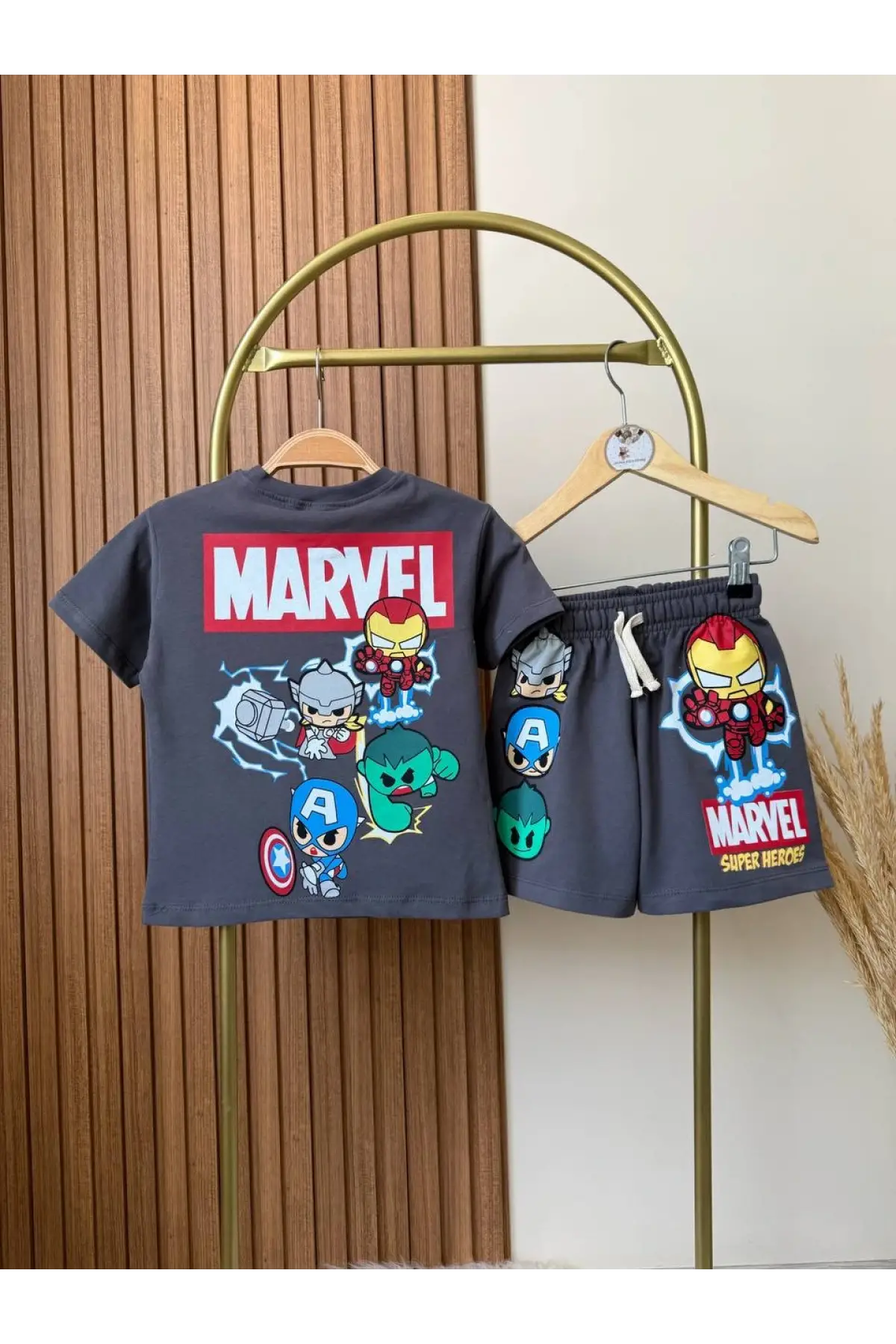 Erkek Çocuk Marvel Baskılı %100 Pamuk Yazlık Takım