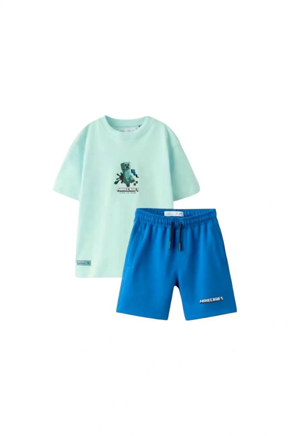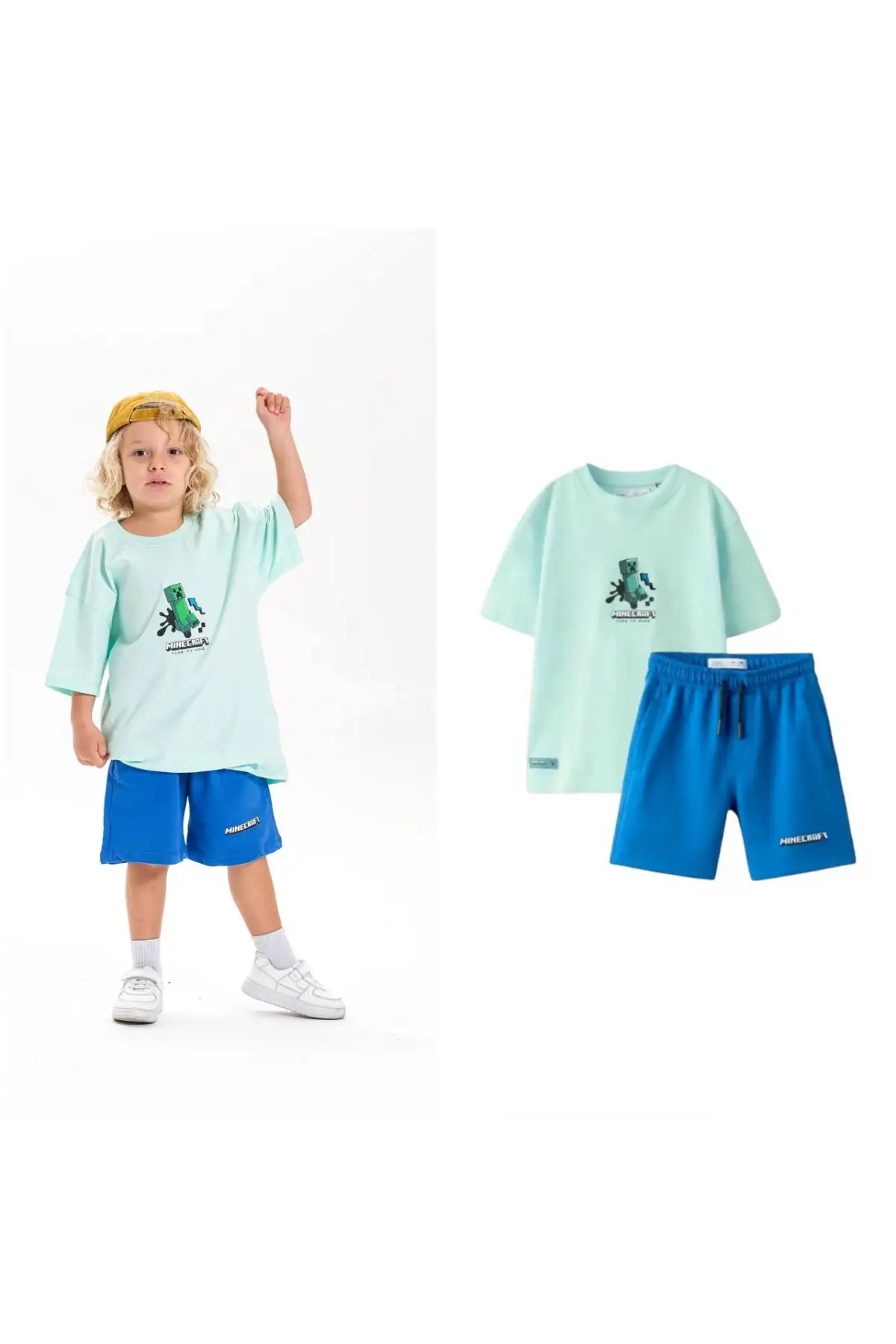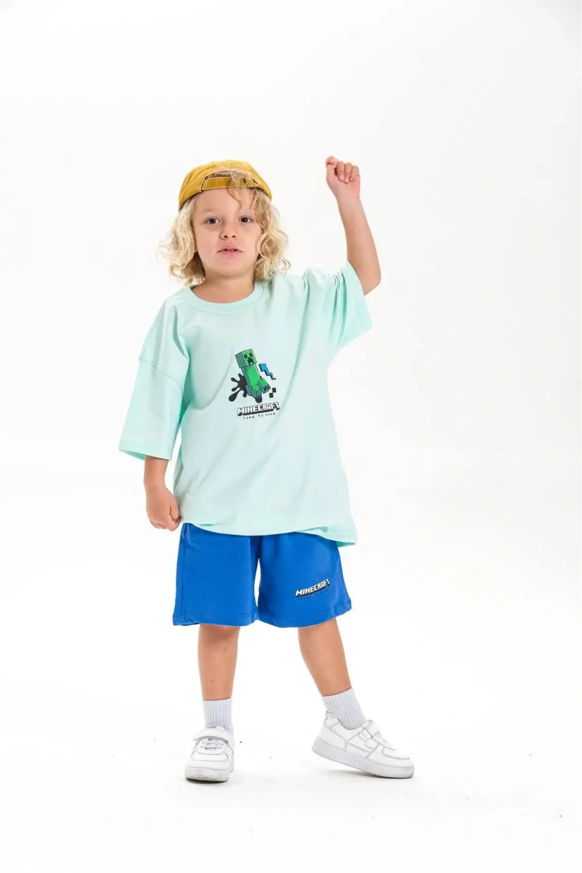 Erkek Çocuk Minecraft Baskılı %100 Pamuk Yazlık Takım