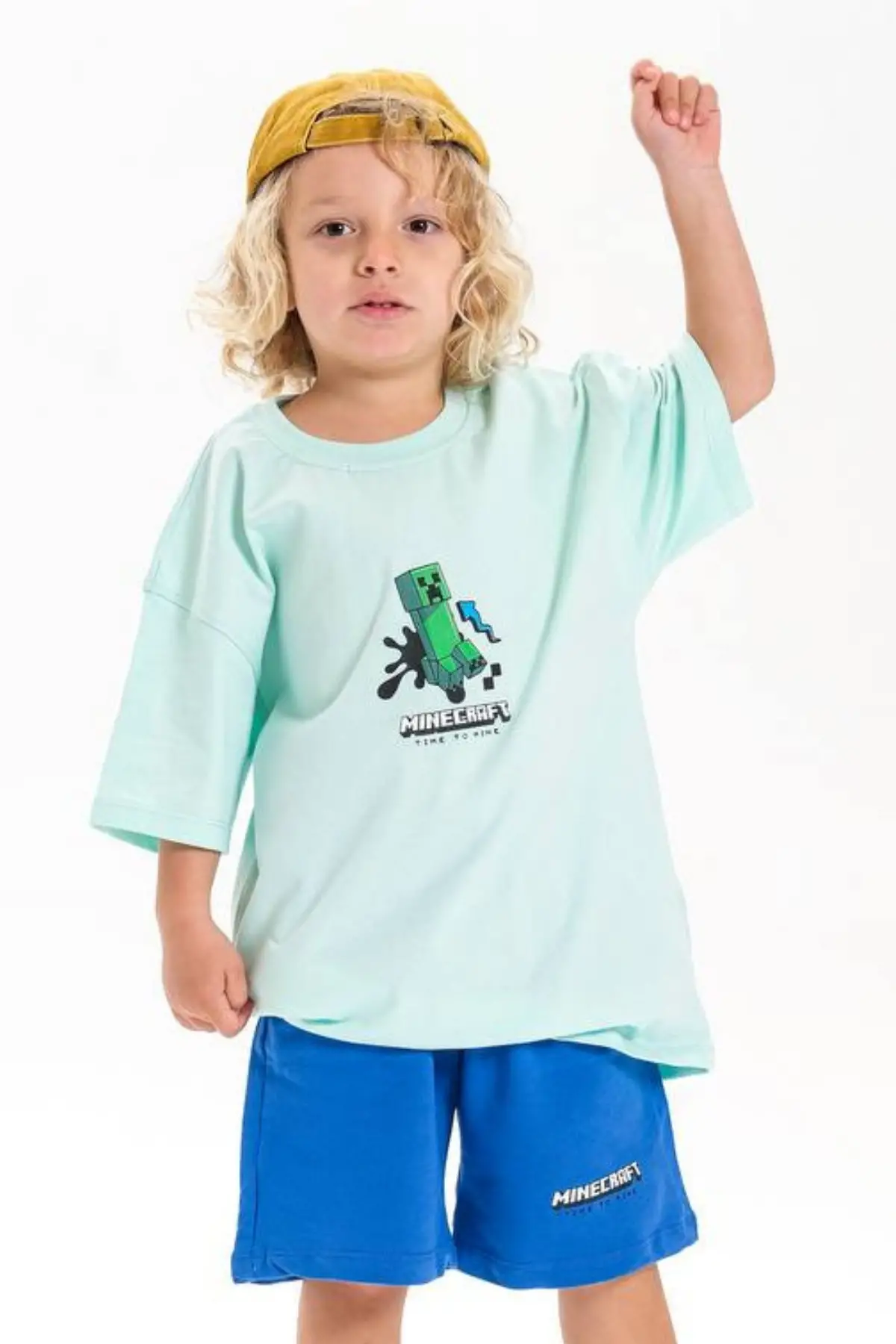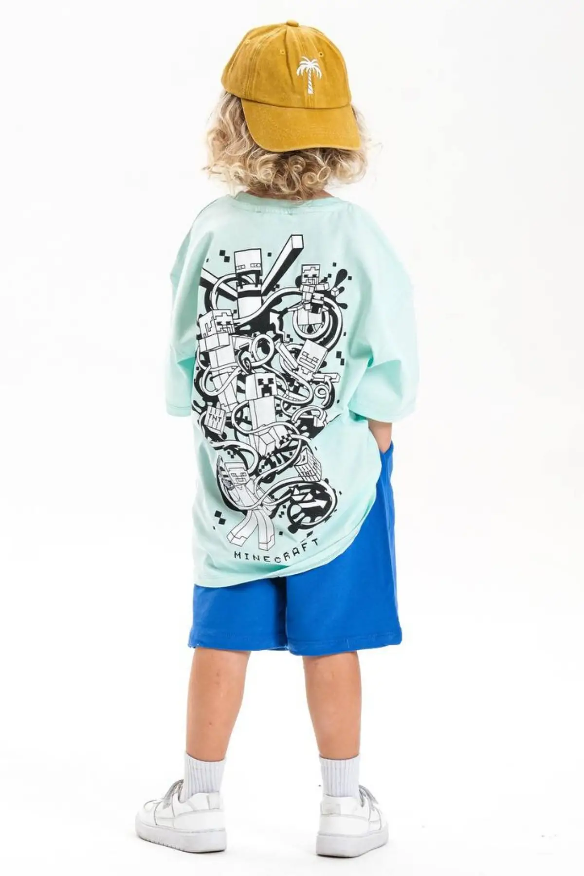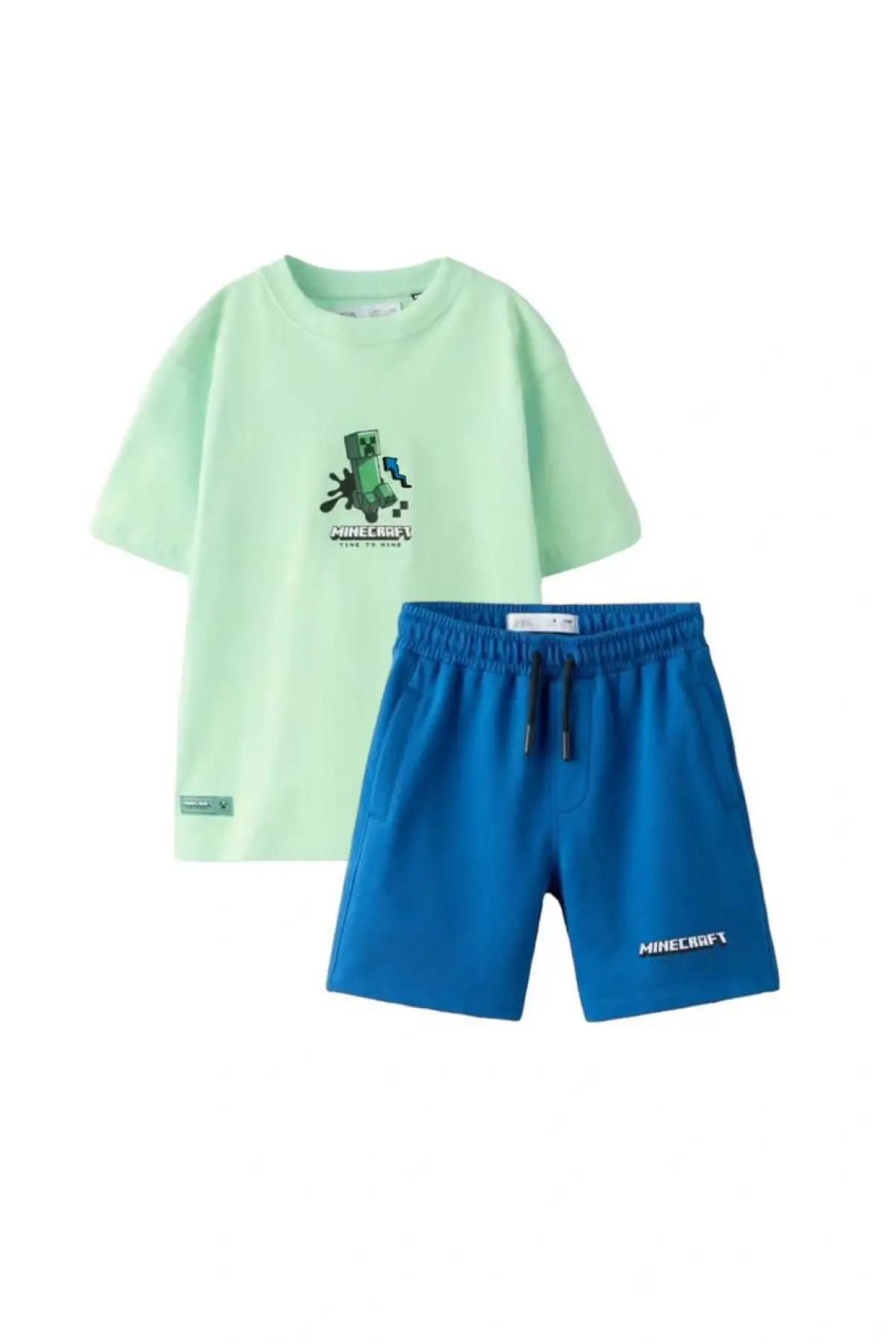 Erkek Çocuk Minecraft Baskılı %100 Pamuk Yazlık Takım