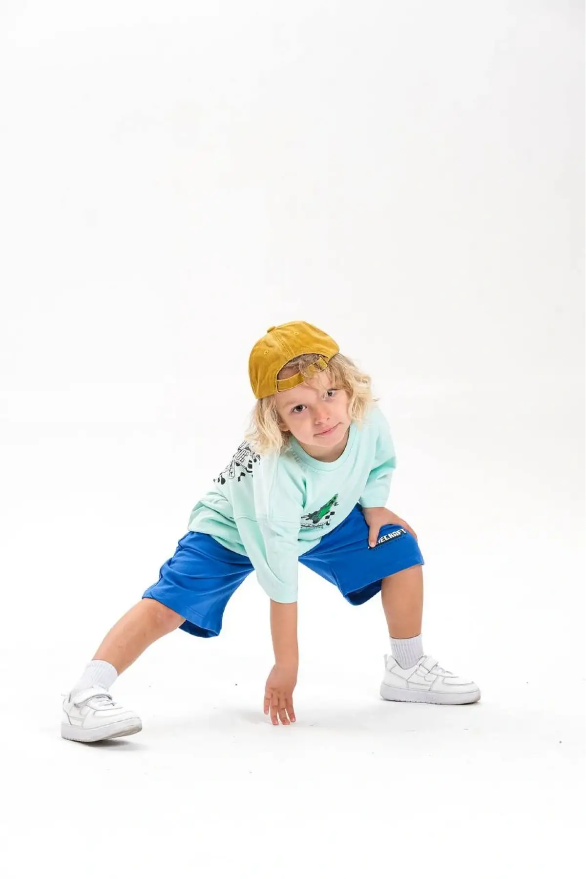 Erkek Çocuk Oversize %100 Pamuk Yazlık Yeşil Takım