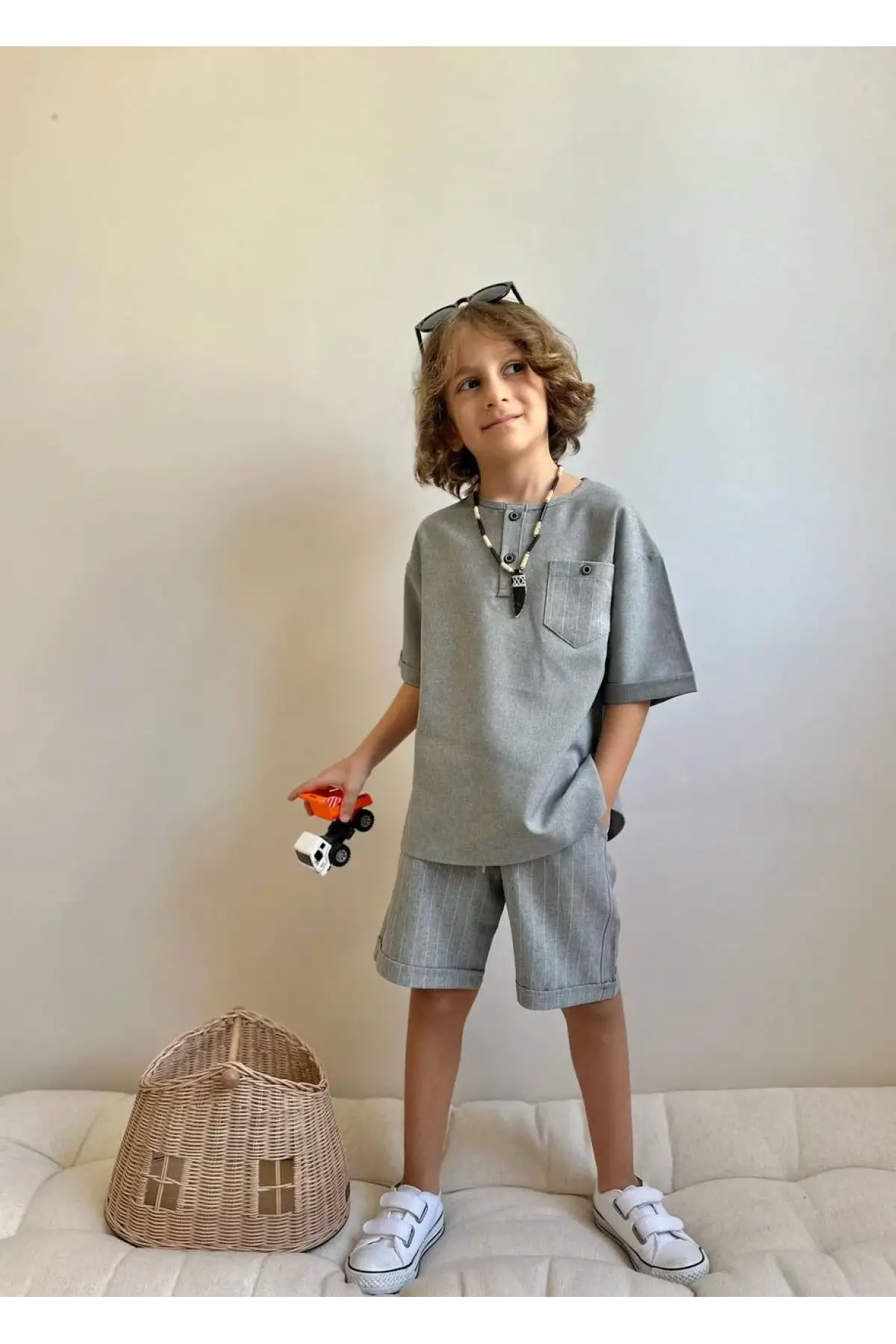 Erkek Çocuk Kargo Cepli 3'lü Yazlık Gri Takım