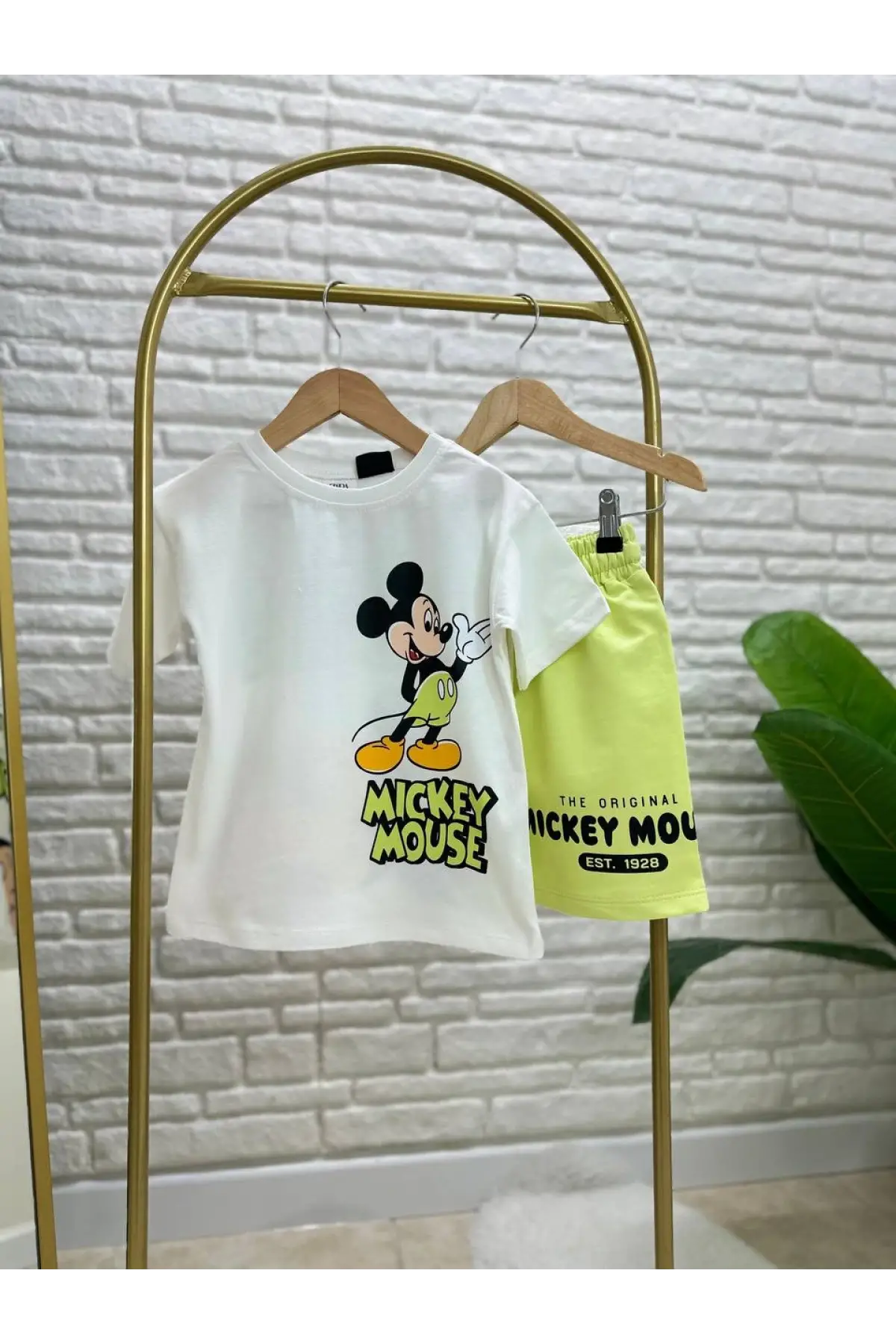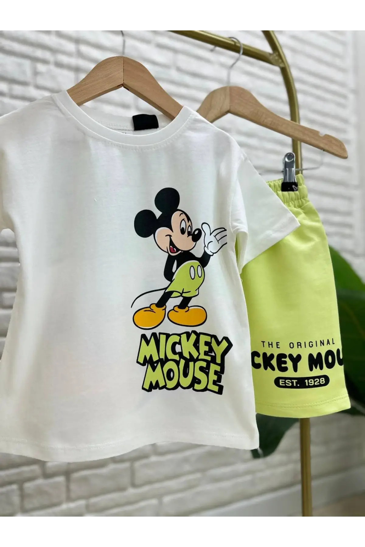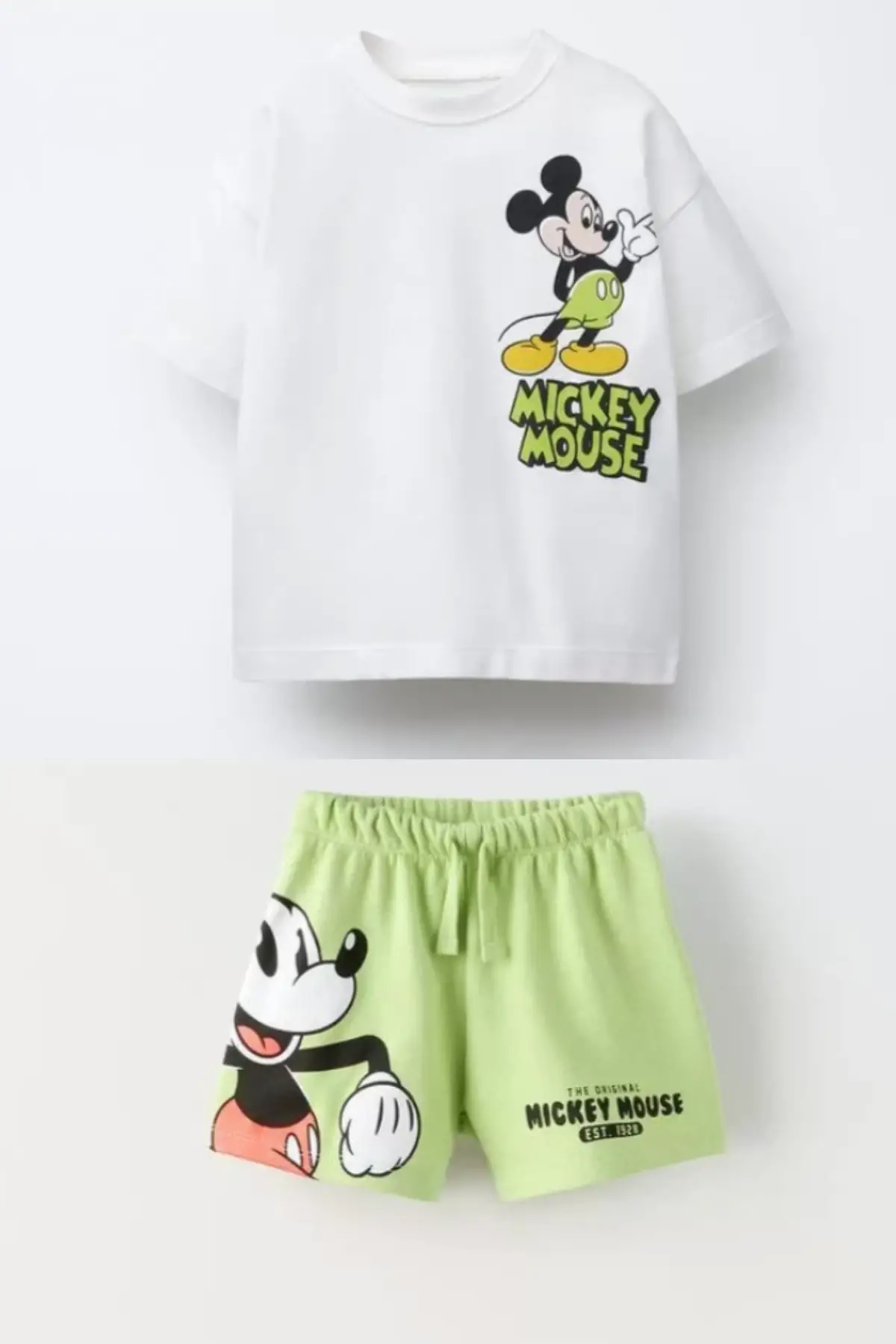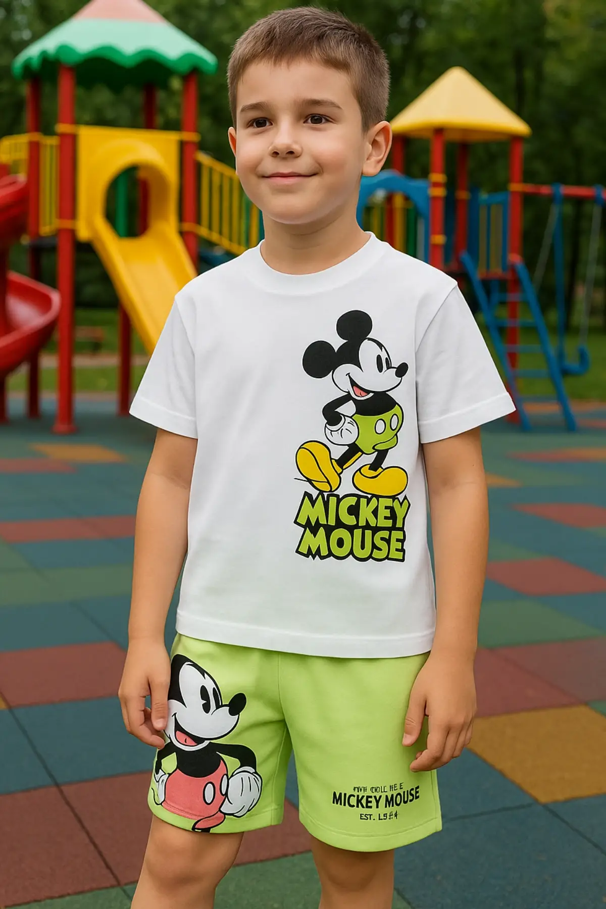 Çocuk Unisex Mickey Mouse Yeşil Şortlu Yazlık Takım