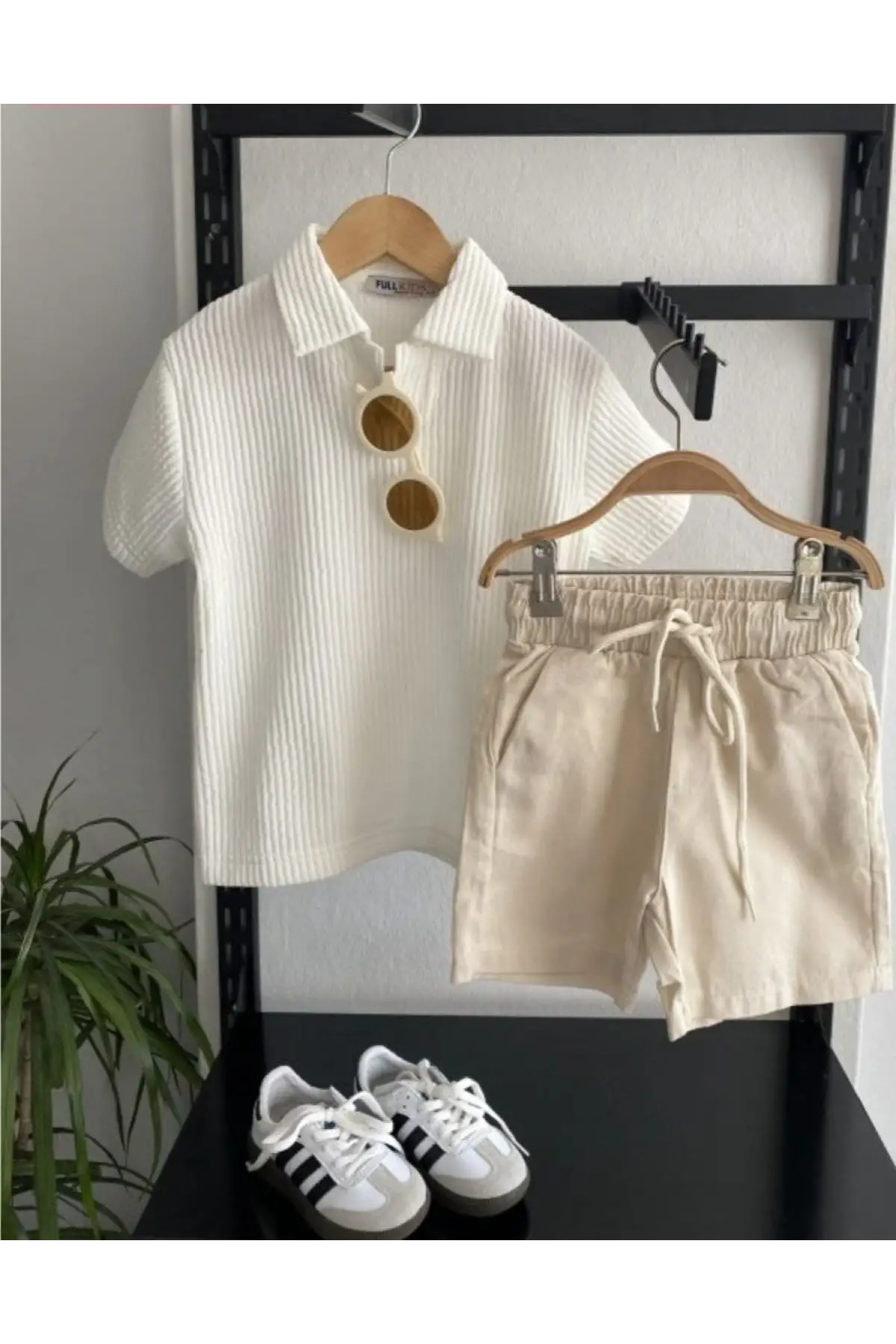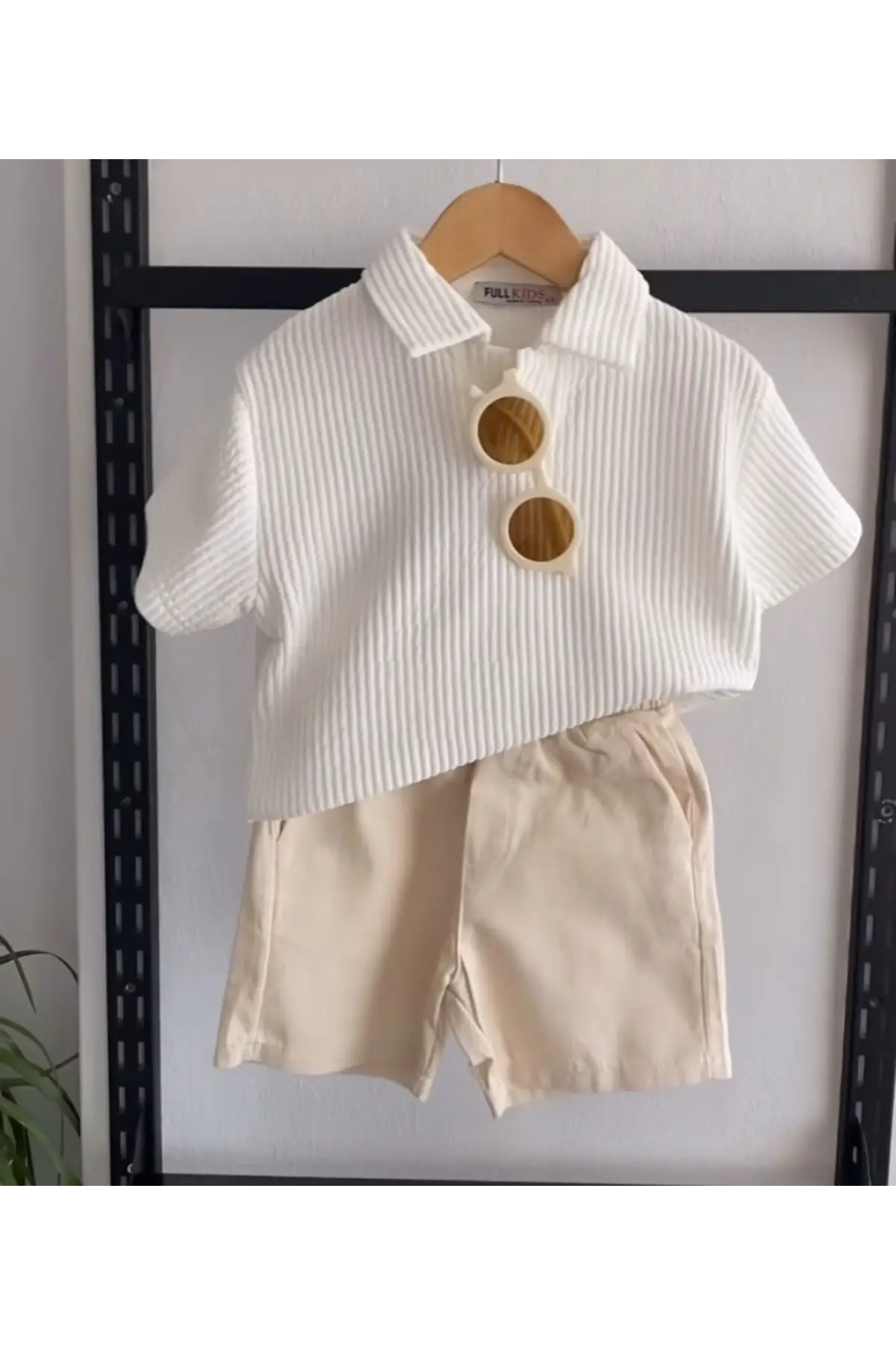 Erkek Çocuk Fitilli Polo Yaka Krem Şortlu Takım