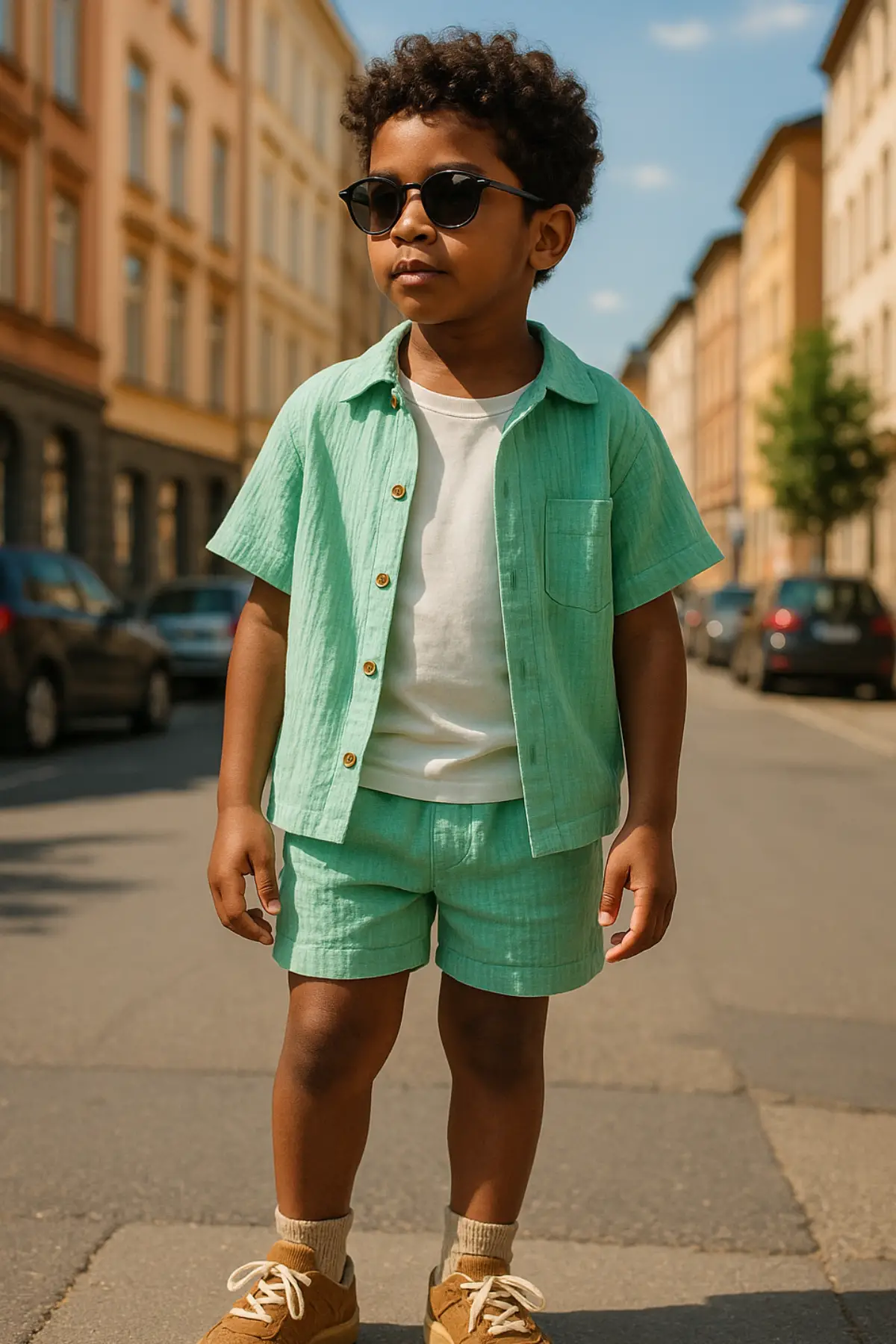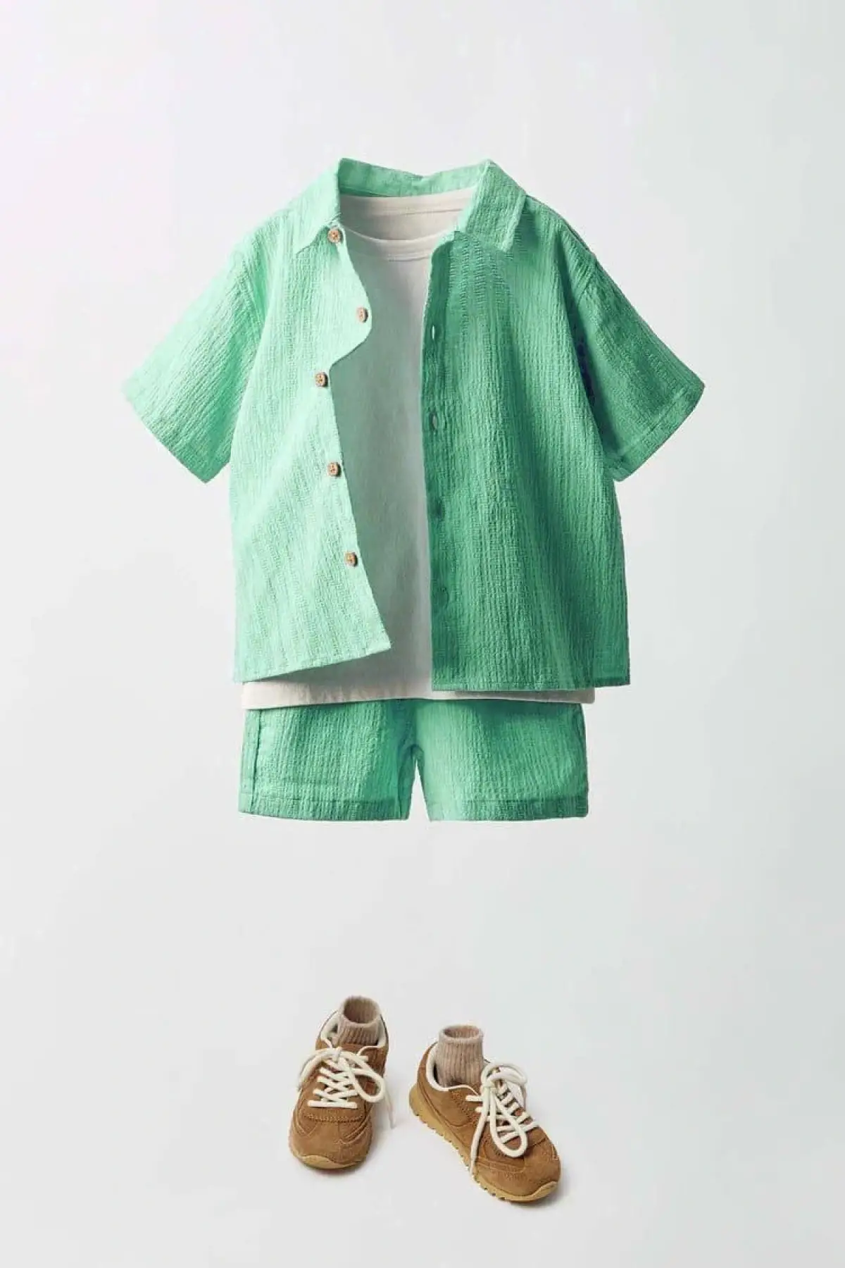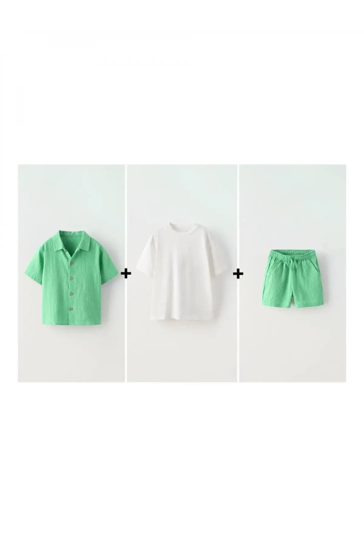 Erkek Çocuk Mint Yeşili Gömlek Şortlu Üçlü Takım
