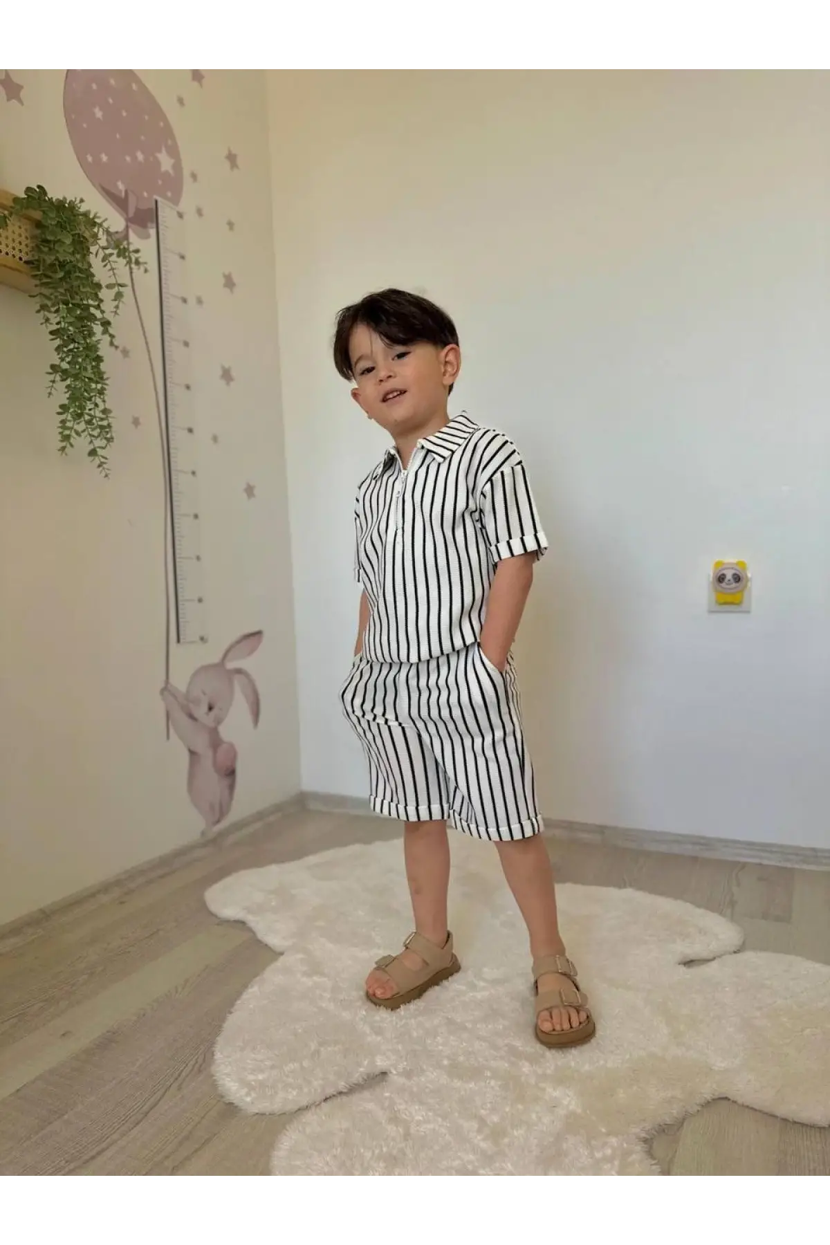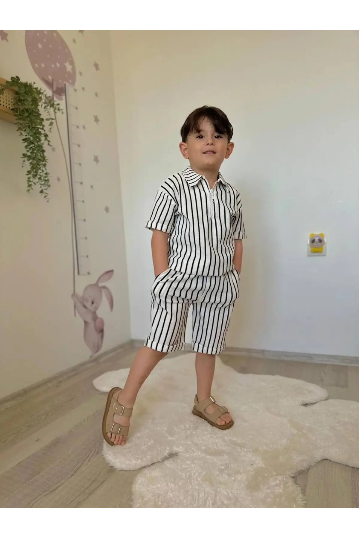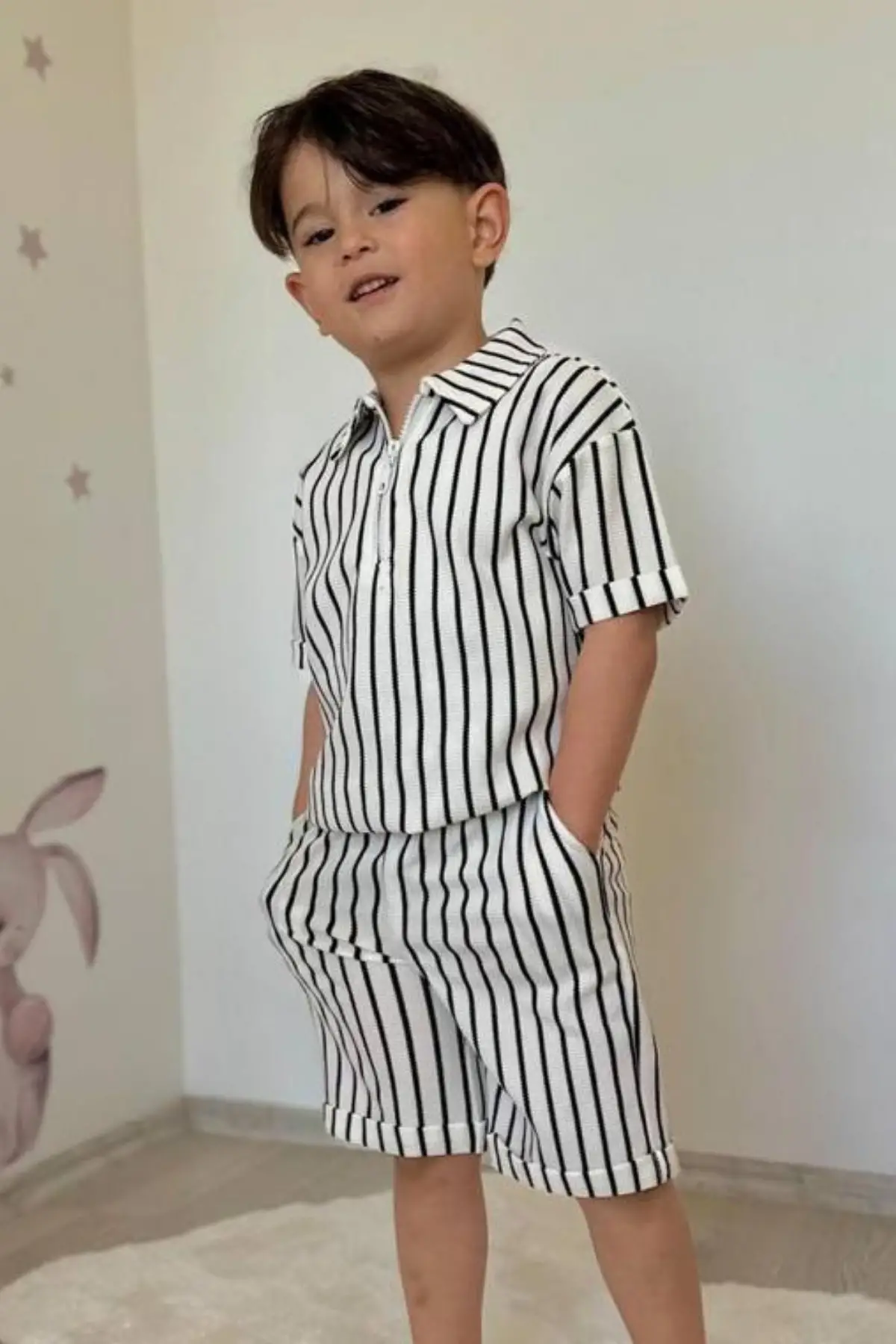 Erkek Çocuk Çizgili Fermuarlı Yaka Yazlık Takım