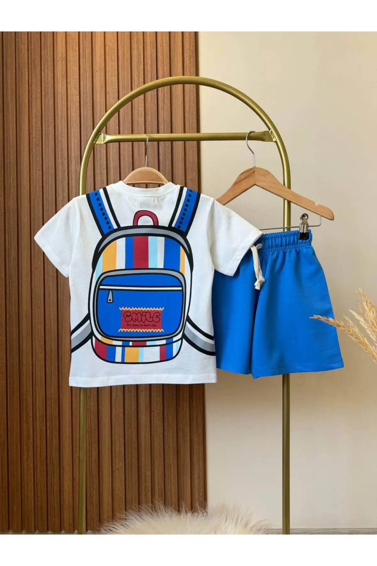 Çocuk Sırt Çantası Baskılı %100 Pamuk Yazlık Takım