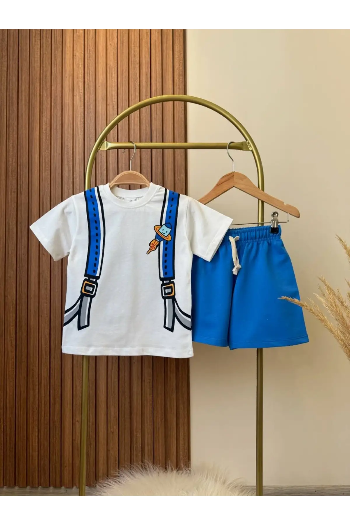 Erkek Çocuk Palmiye Desenli Şortlu Takım