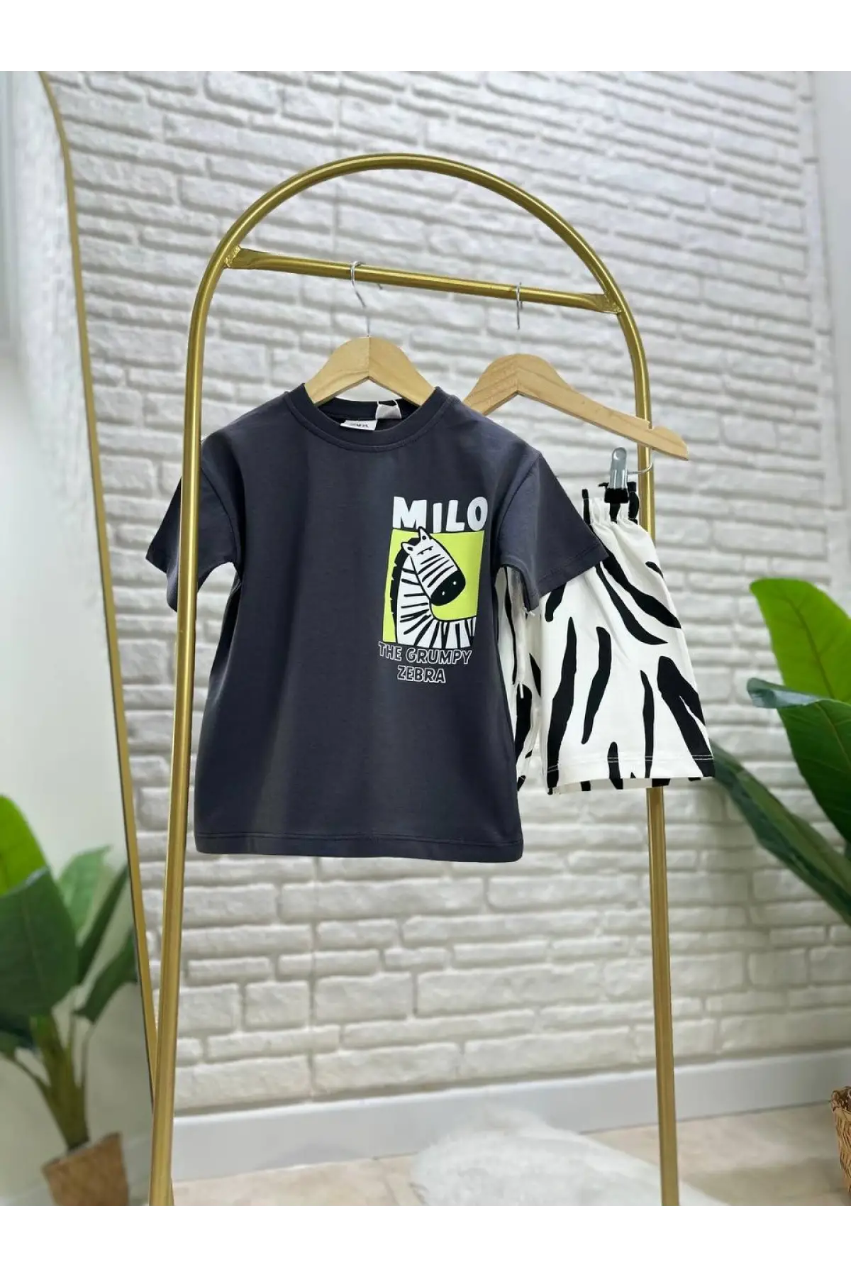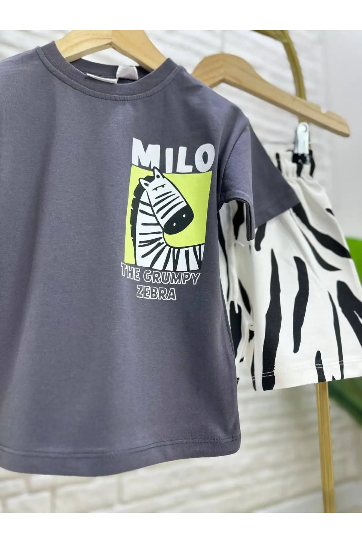 Çocuk Milo Zebra Baskılı %100 Pamuk Yazlık Takım