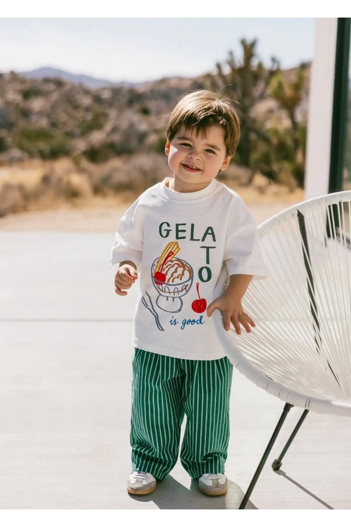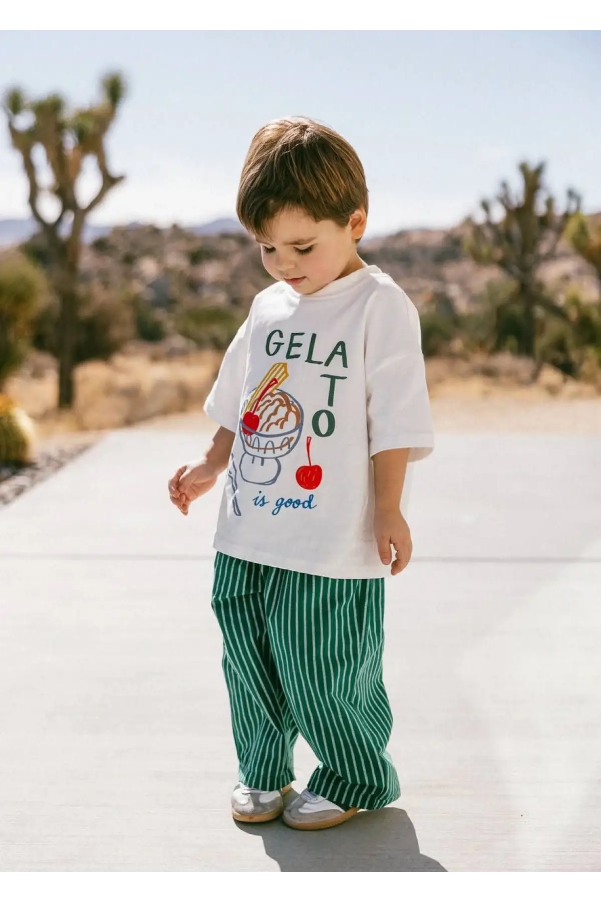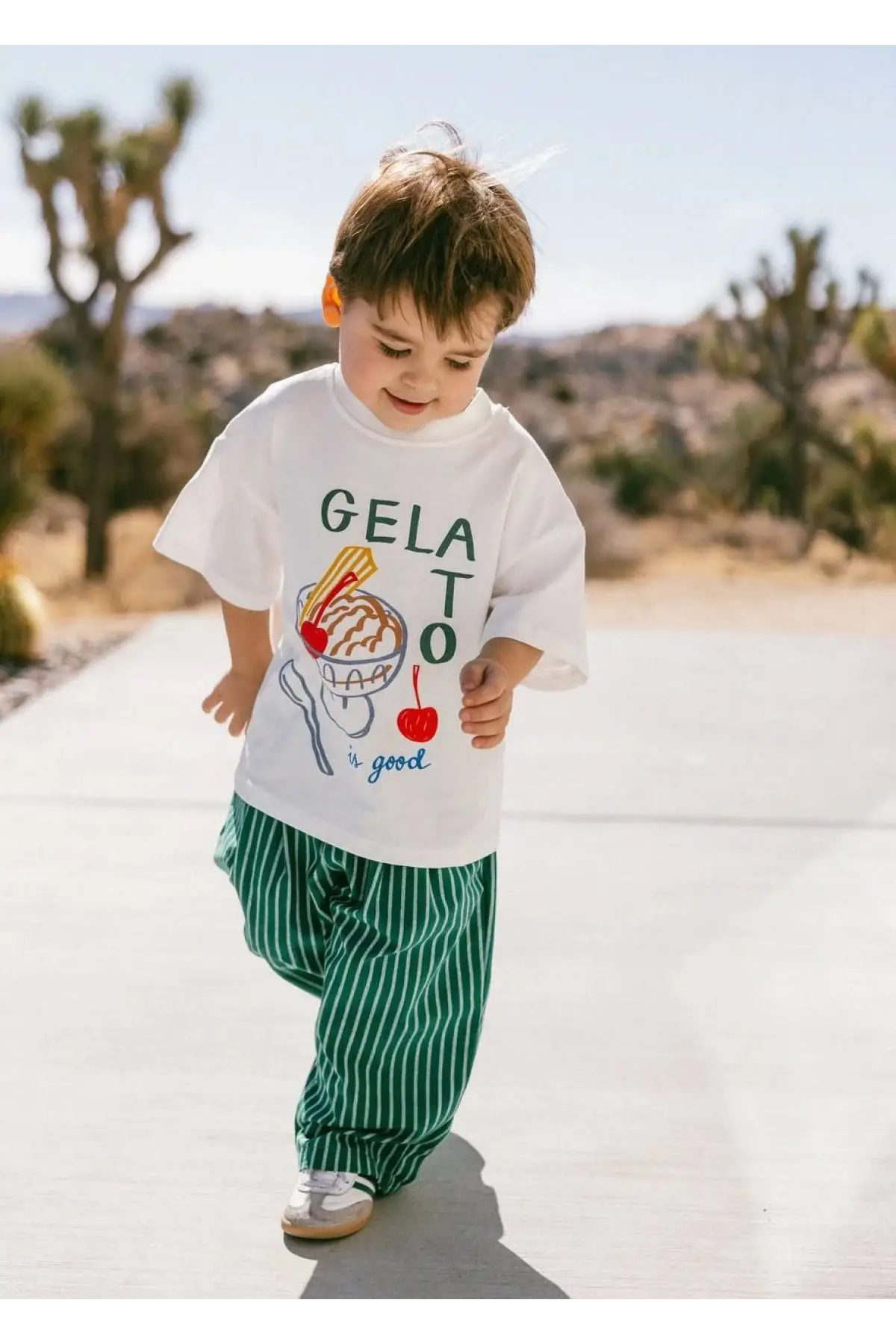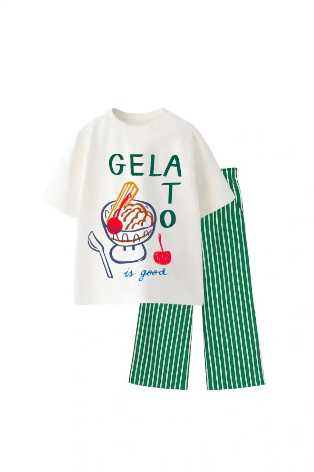 Erkek Çocuk Gelato Baskılı Yeşil Çizgili Pamuklu Takım