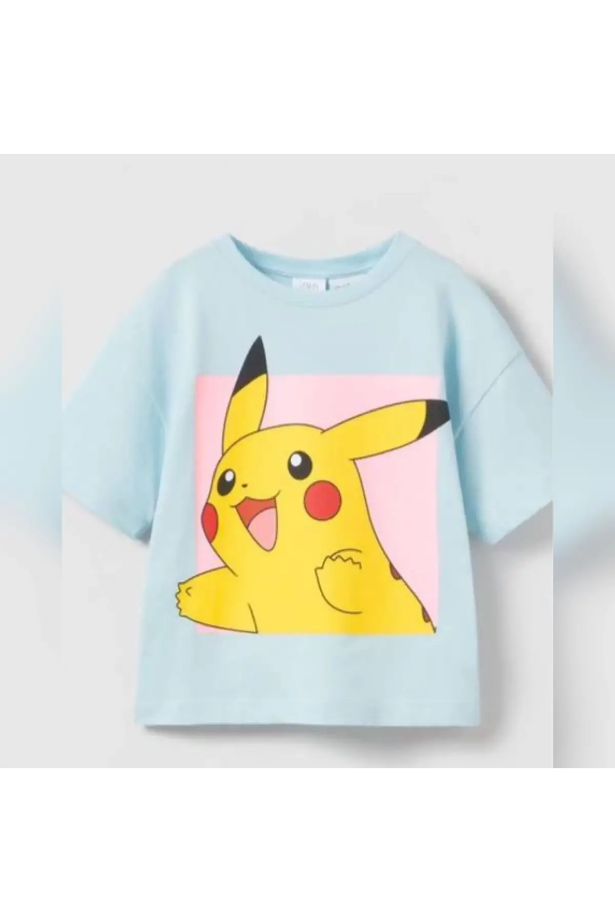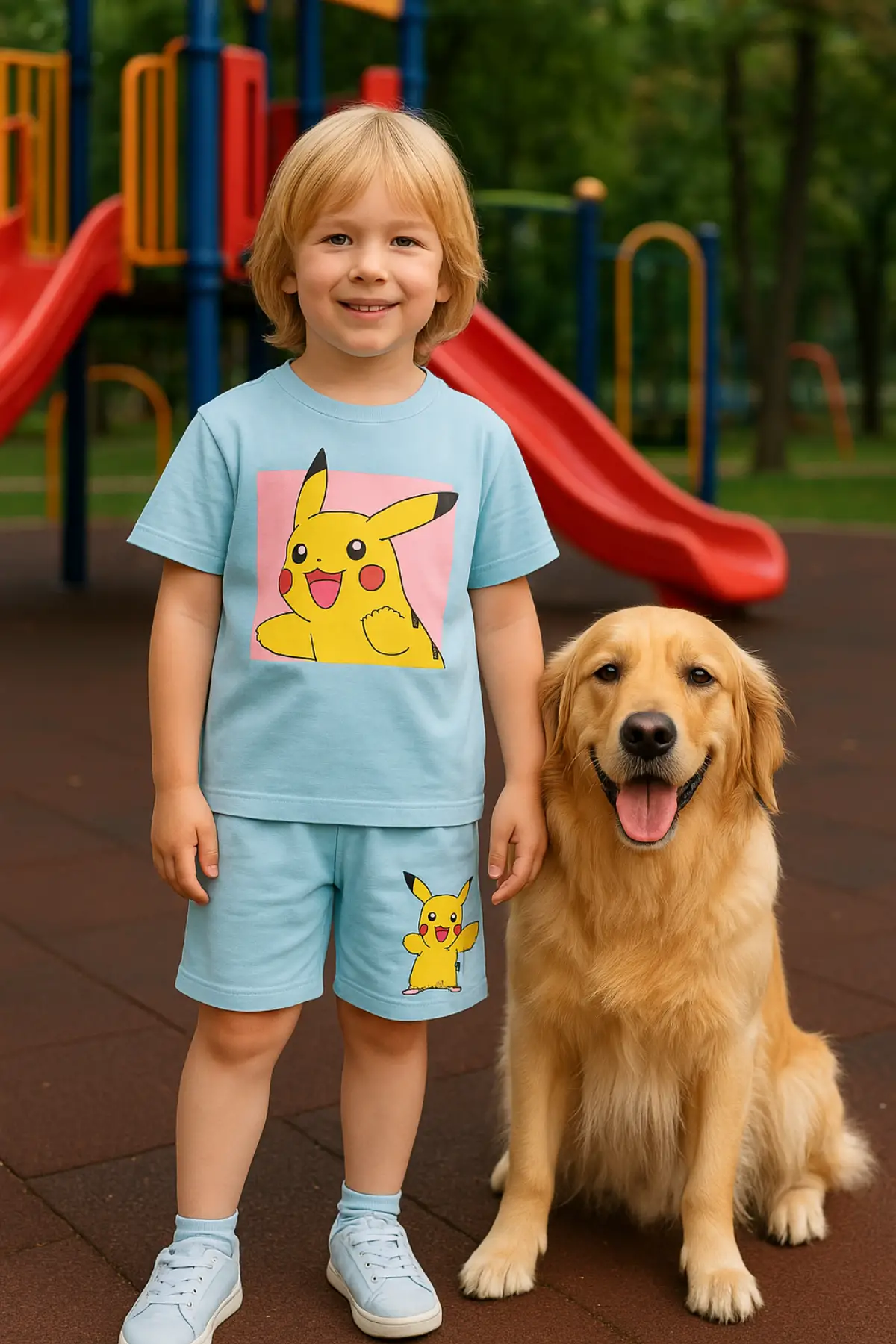 Çocuk Pikaçu Baskılı %100 Pamuk Yazlık İkili Takım