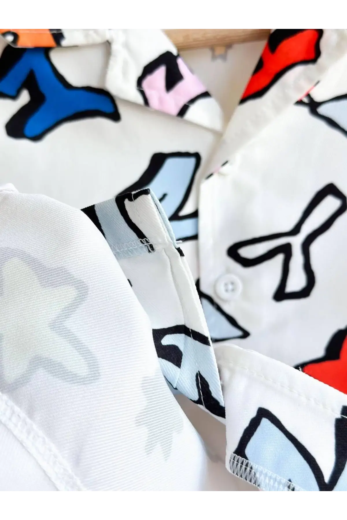 Erkek Çocuk Renkli Harf Baskılı Gömlekli Takım