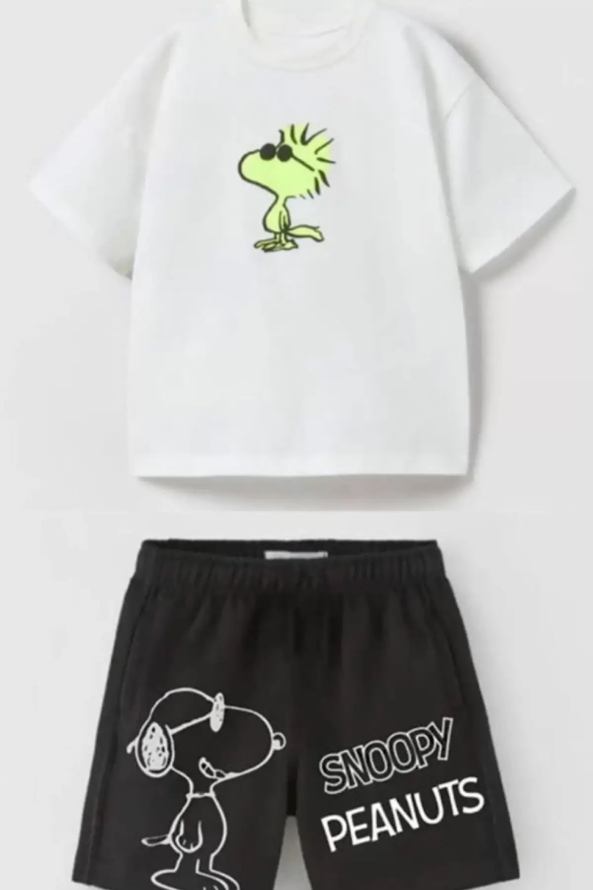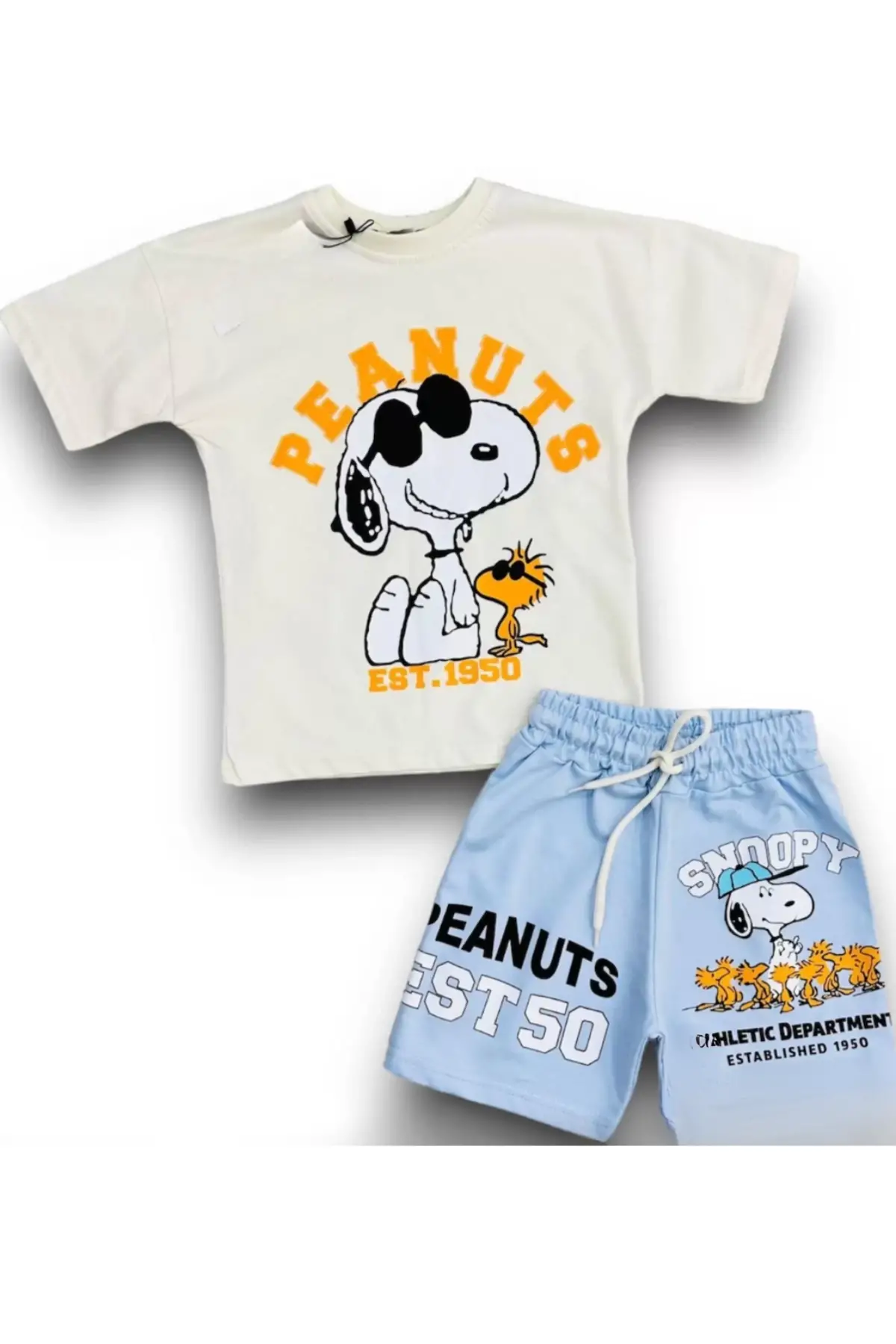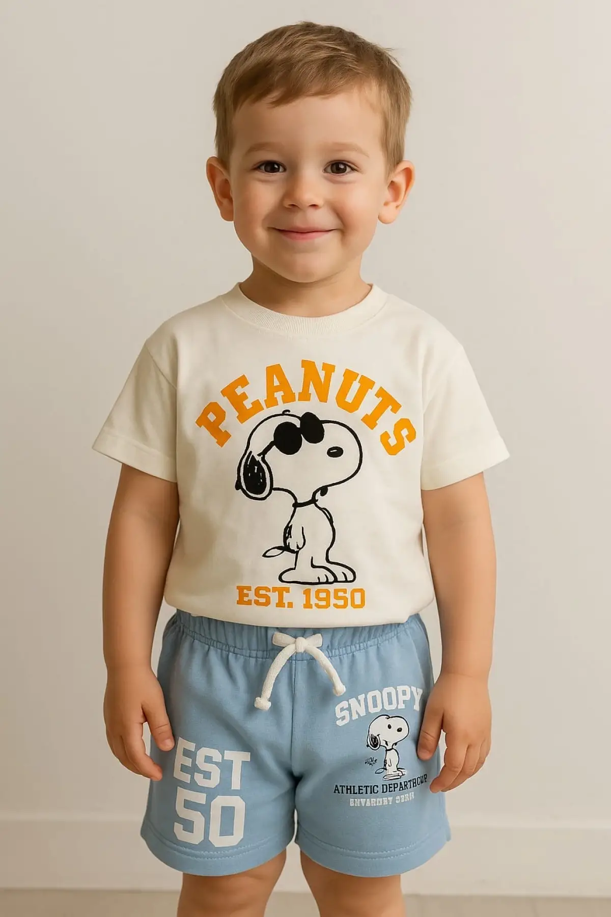 Erkek Çocuk Peanuts Şortlu %100 Pamuk İkili Takım