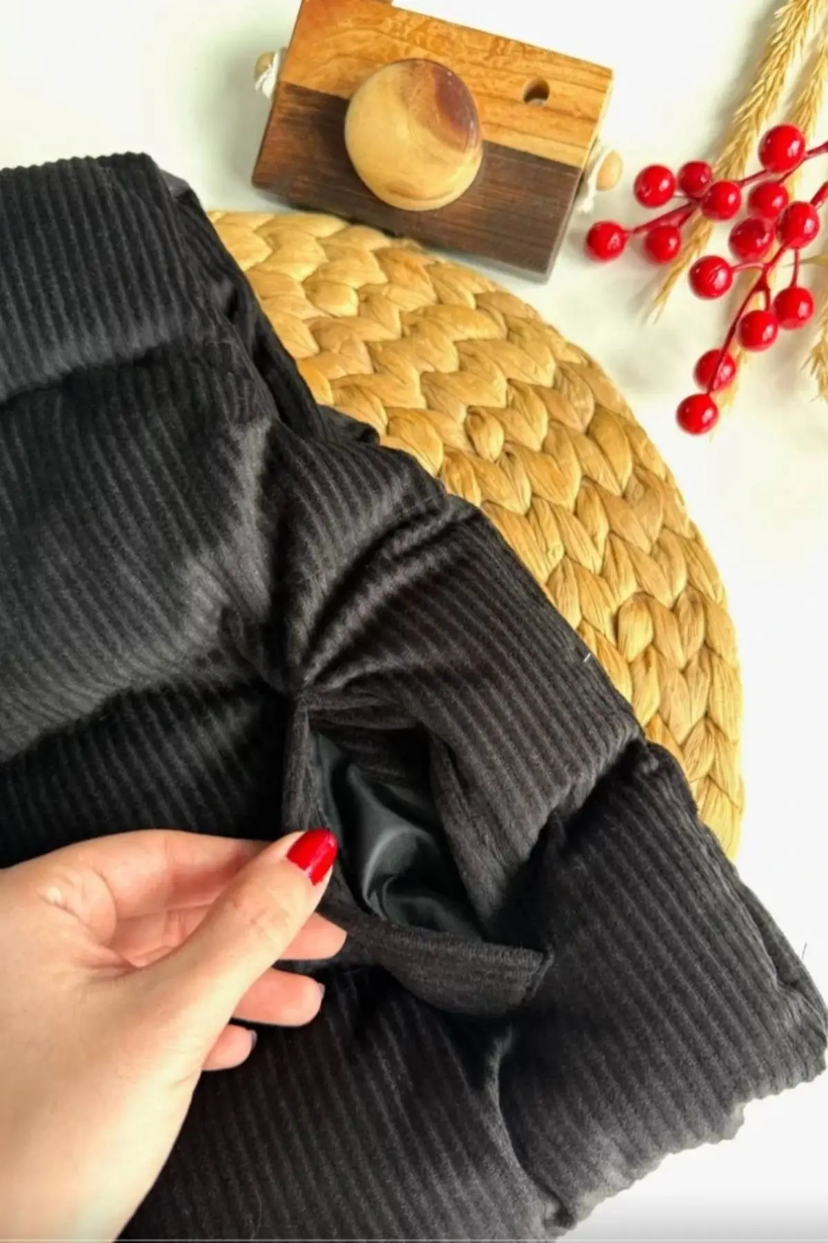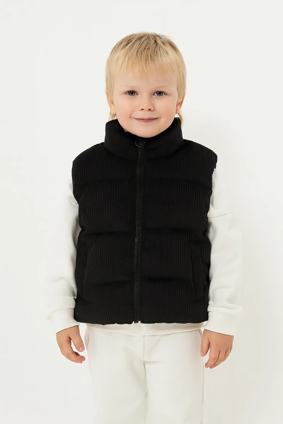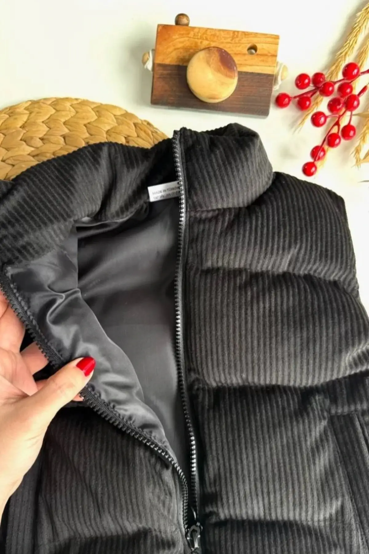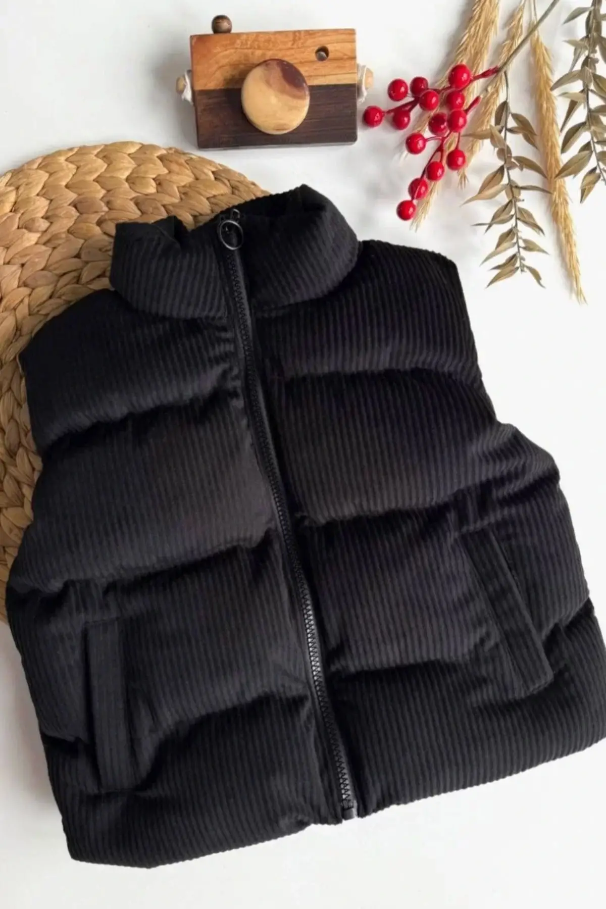 Çocuk Unisex Fermuarlı Kadife Siyah Şişme Yelek