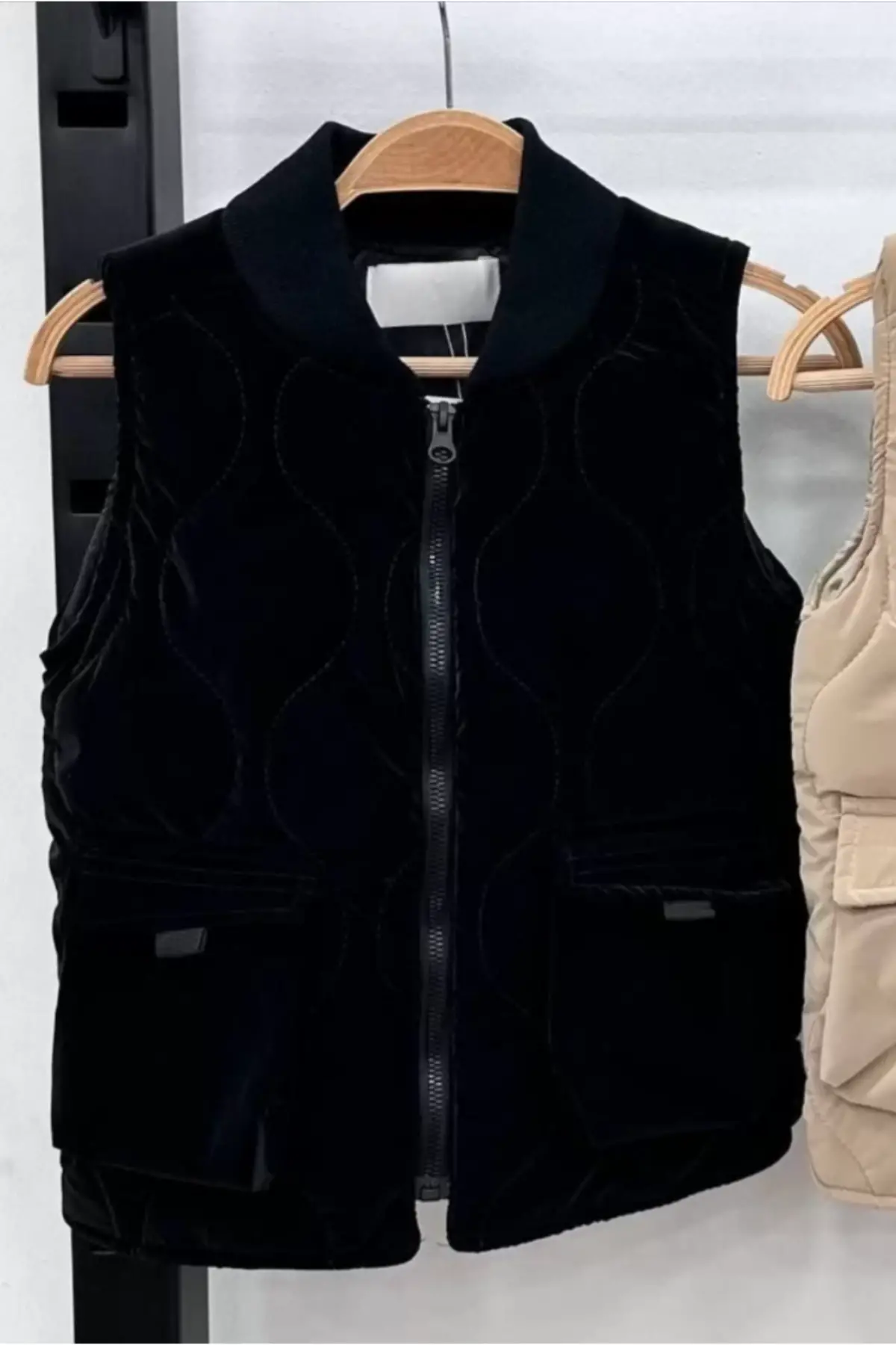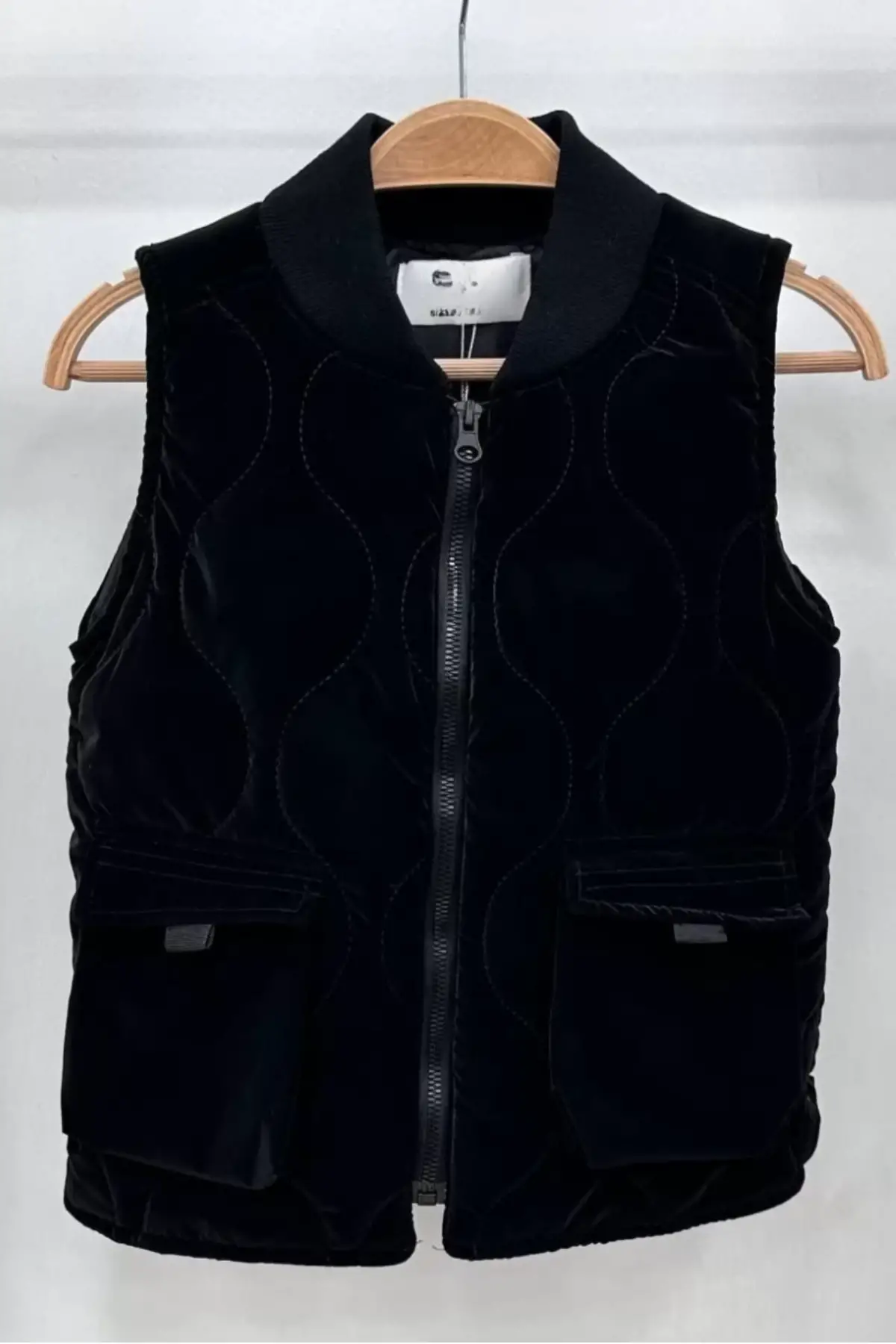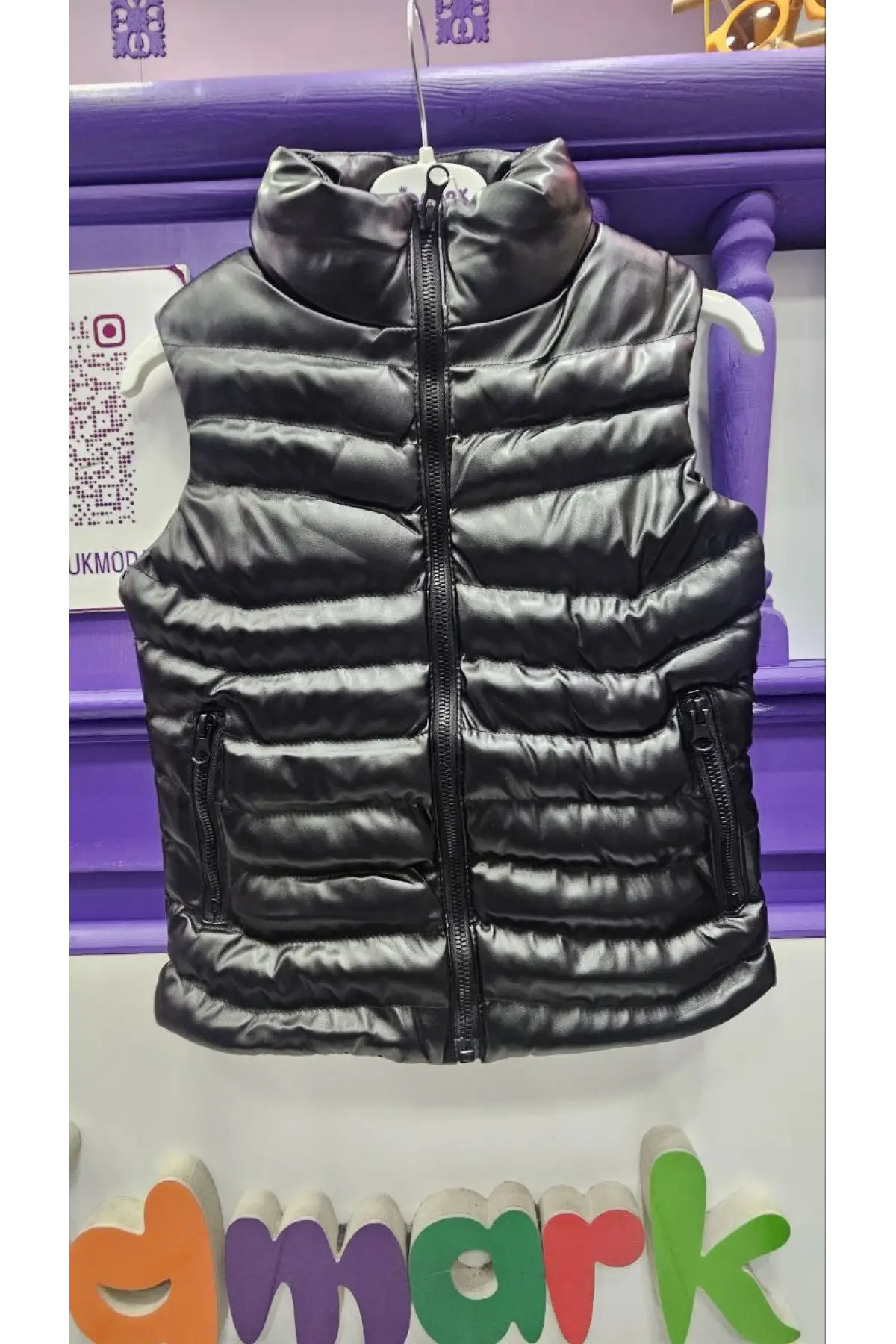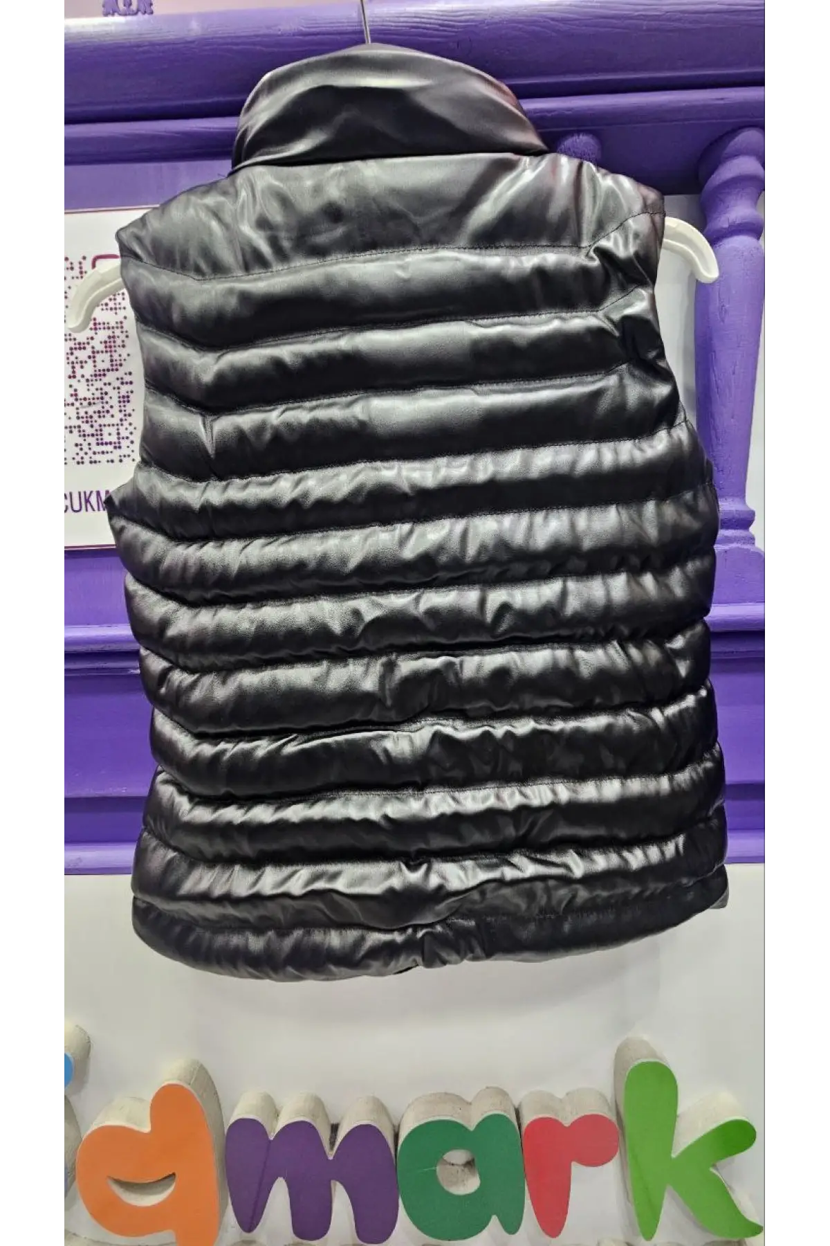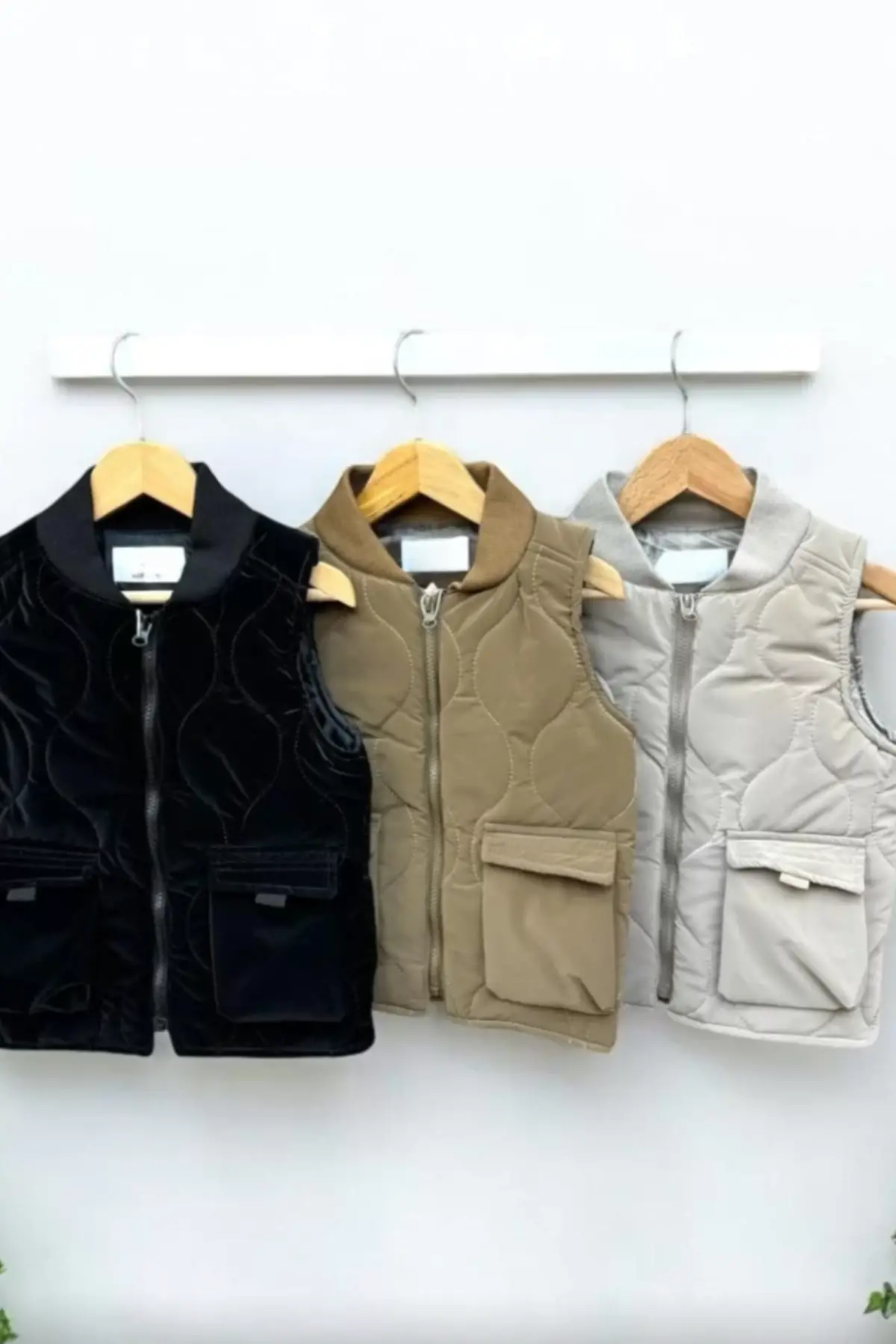 Çocuk Unisex Fermuarlı Kadife Siyah Şişme Yelek