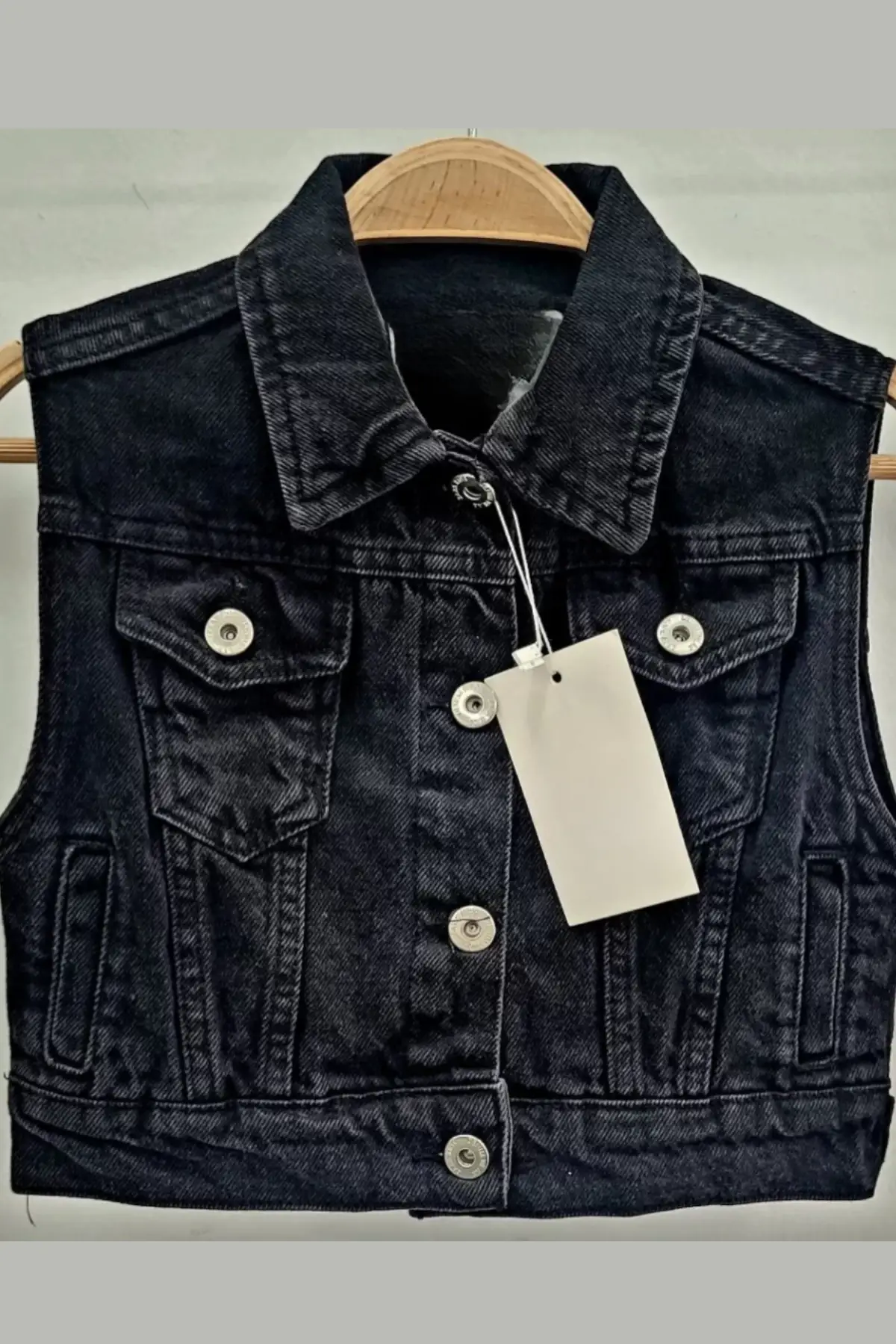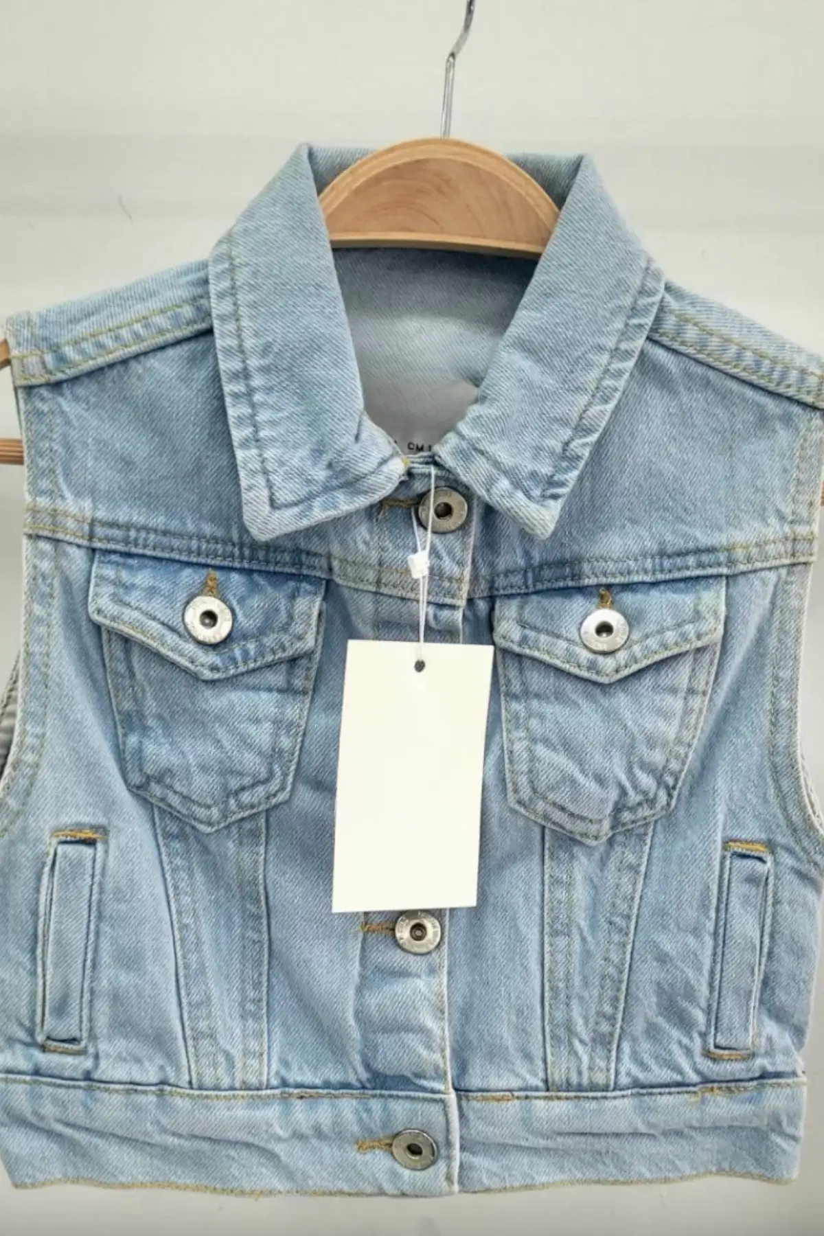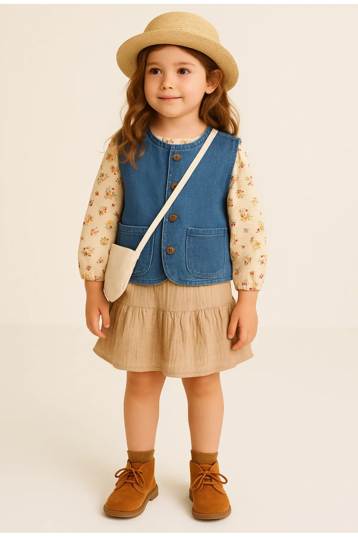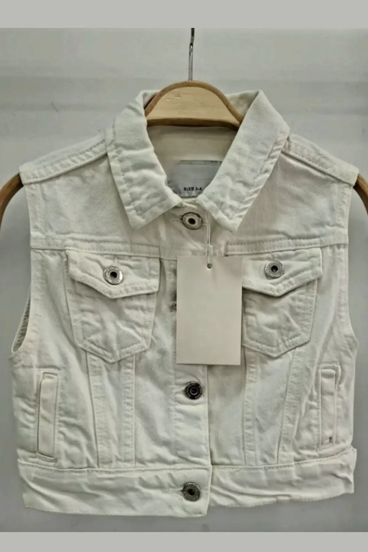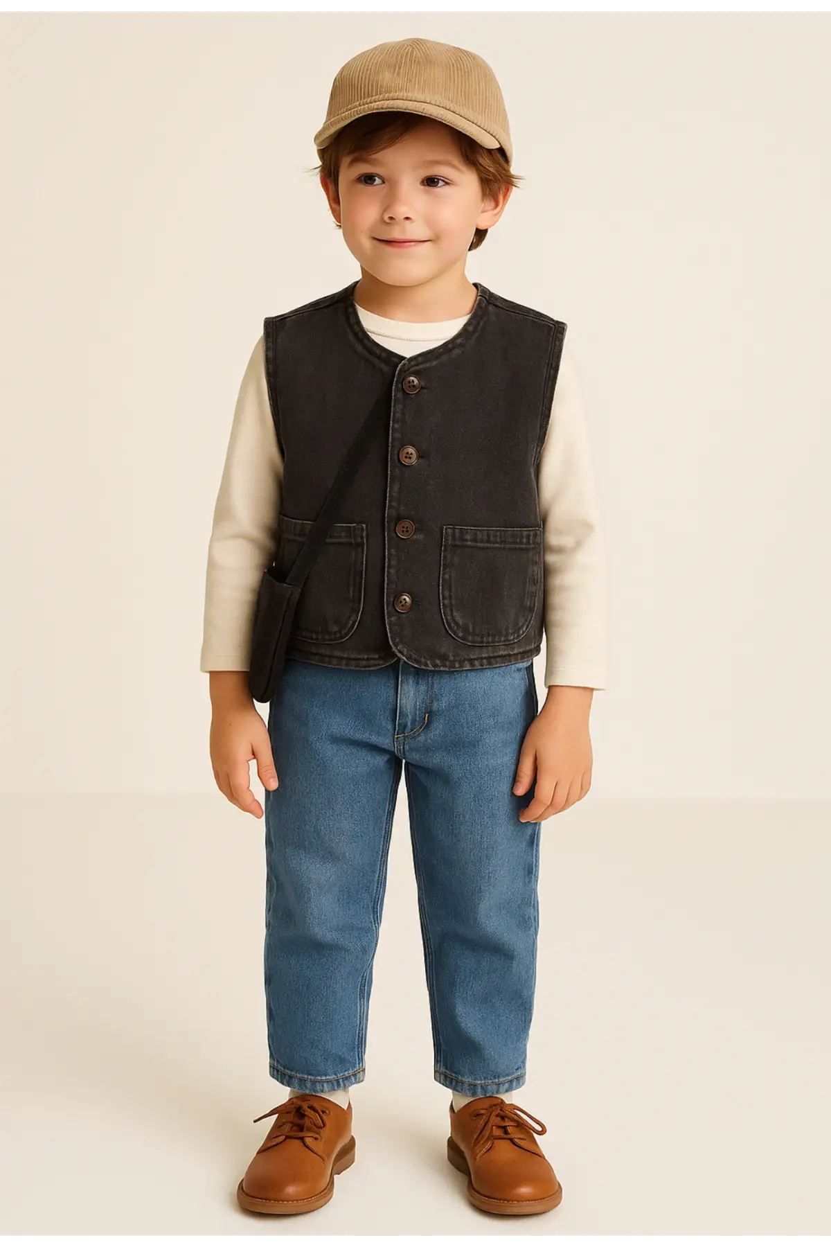 Çocuk Unisex Kot Yelek (Mavi-Beyaz-Siyah)
