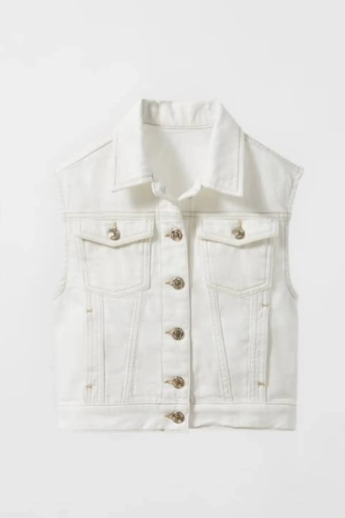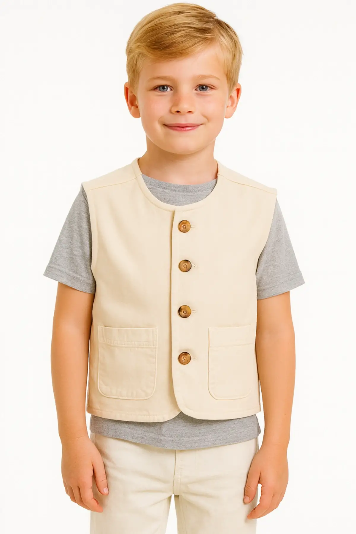 Çocuk Unisex Bej Düğmeli Kot yelek